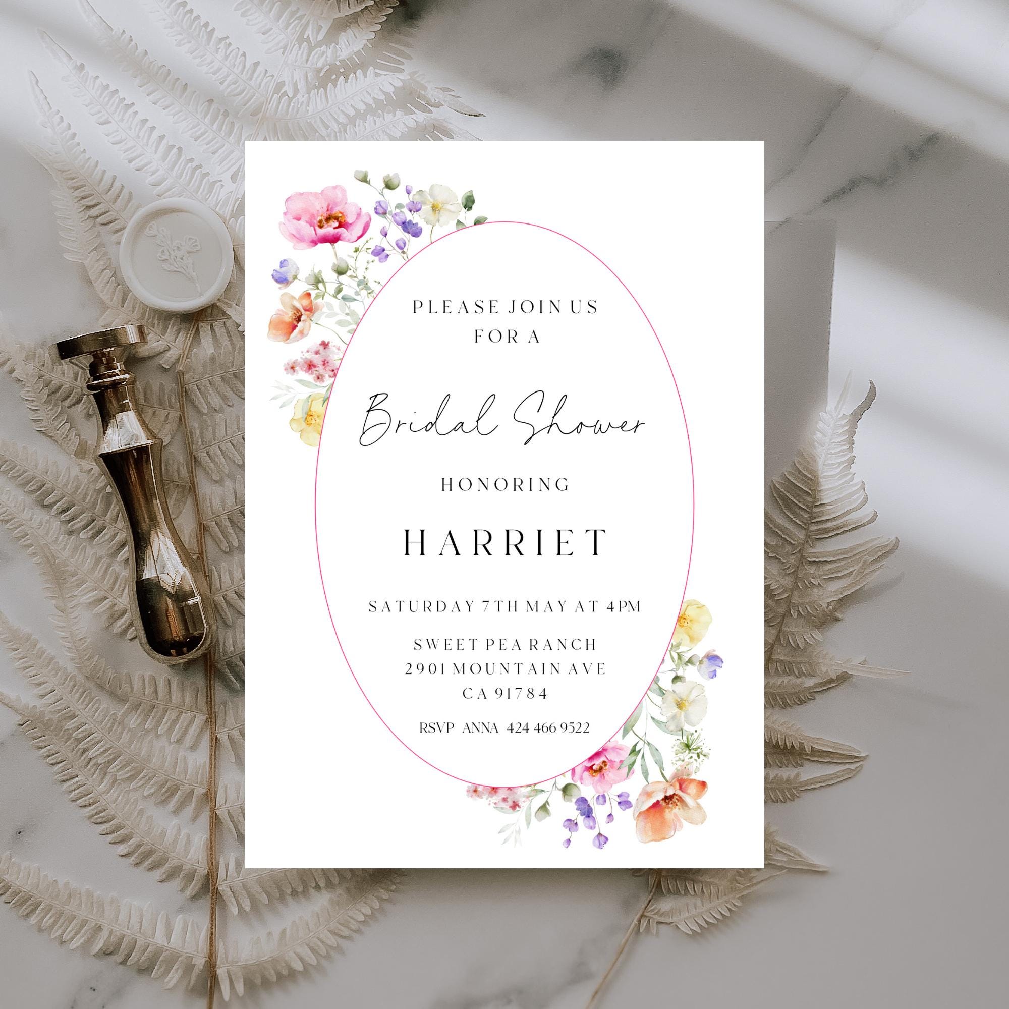 Delicate Wildflower Bridal Shower Invitation Template. An Instant download digital file for you to edit in your web browser with Templett straight after your purchase. Once personalized you are ready to print.