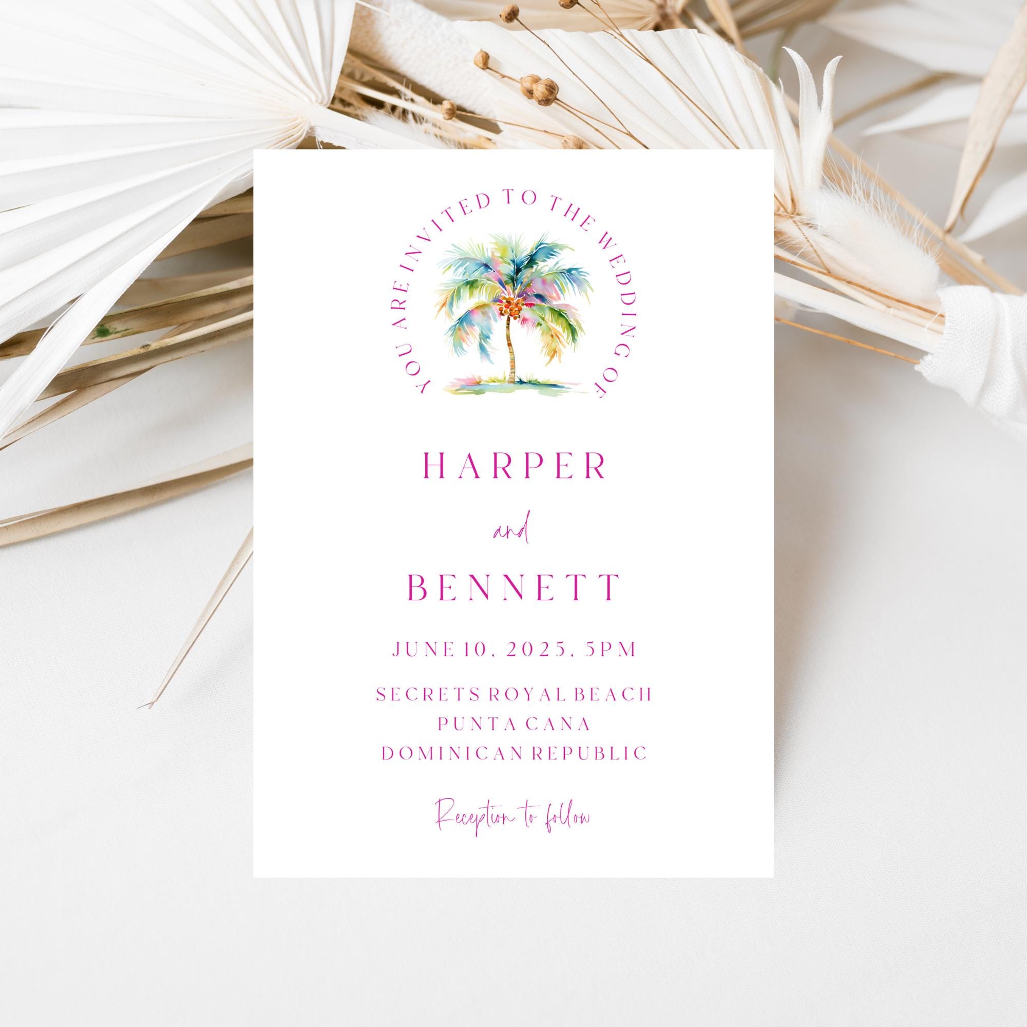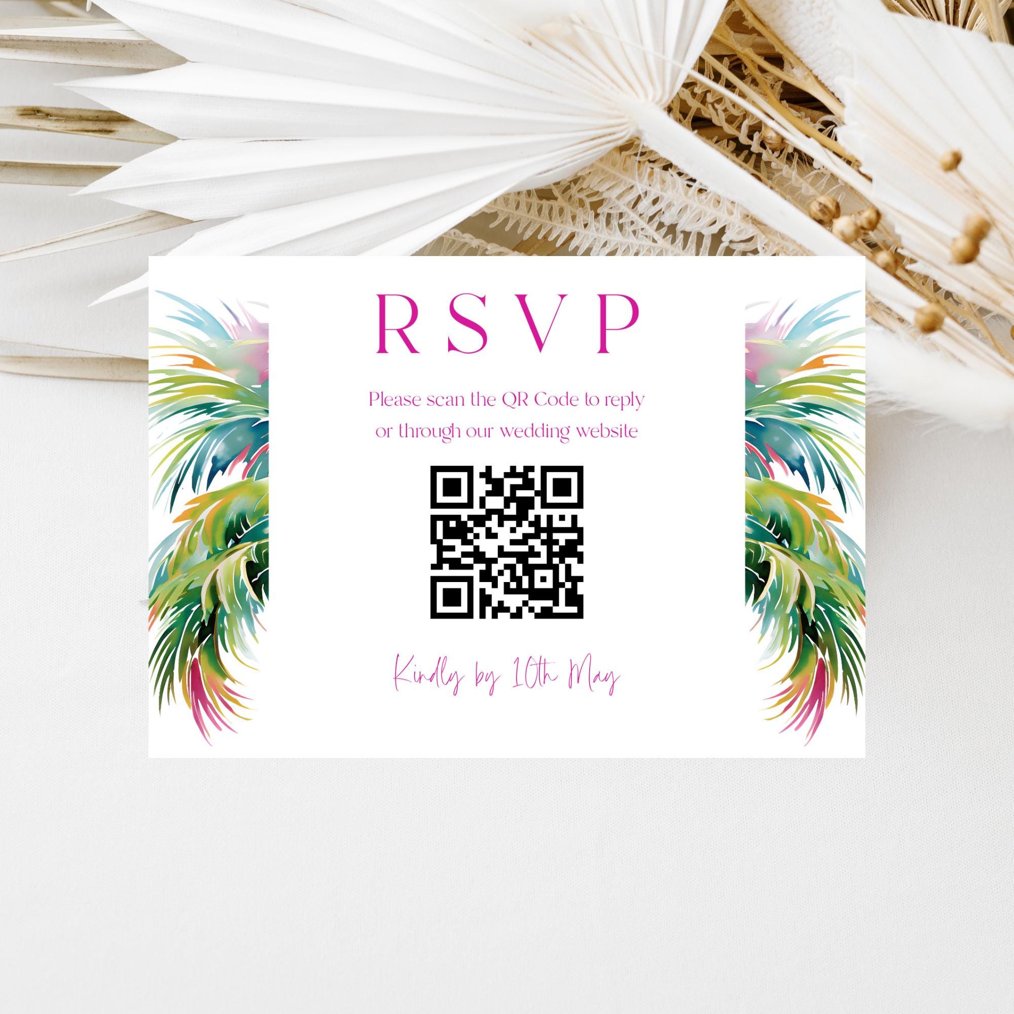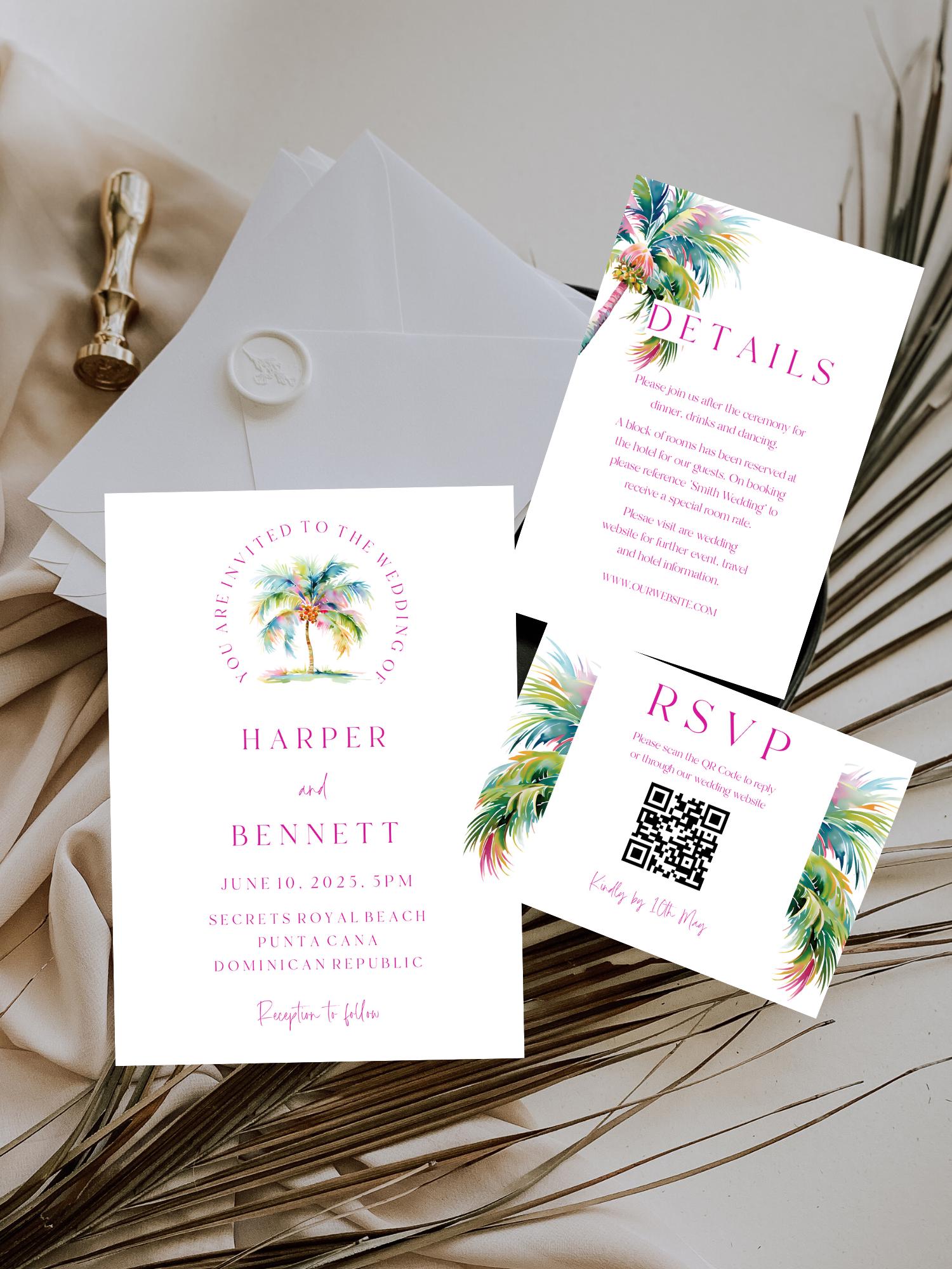 Tropical Wedding Invitation Suite Template. An Instant download digital file for you to edit in your web browser with Templett straight after your purchase. Once personalized you are ready to print.