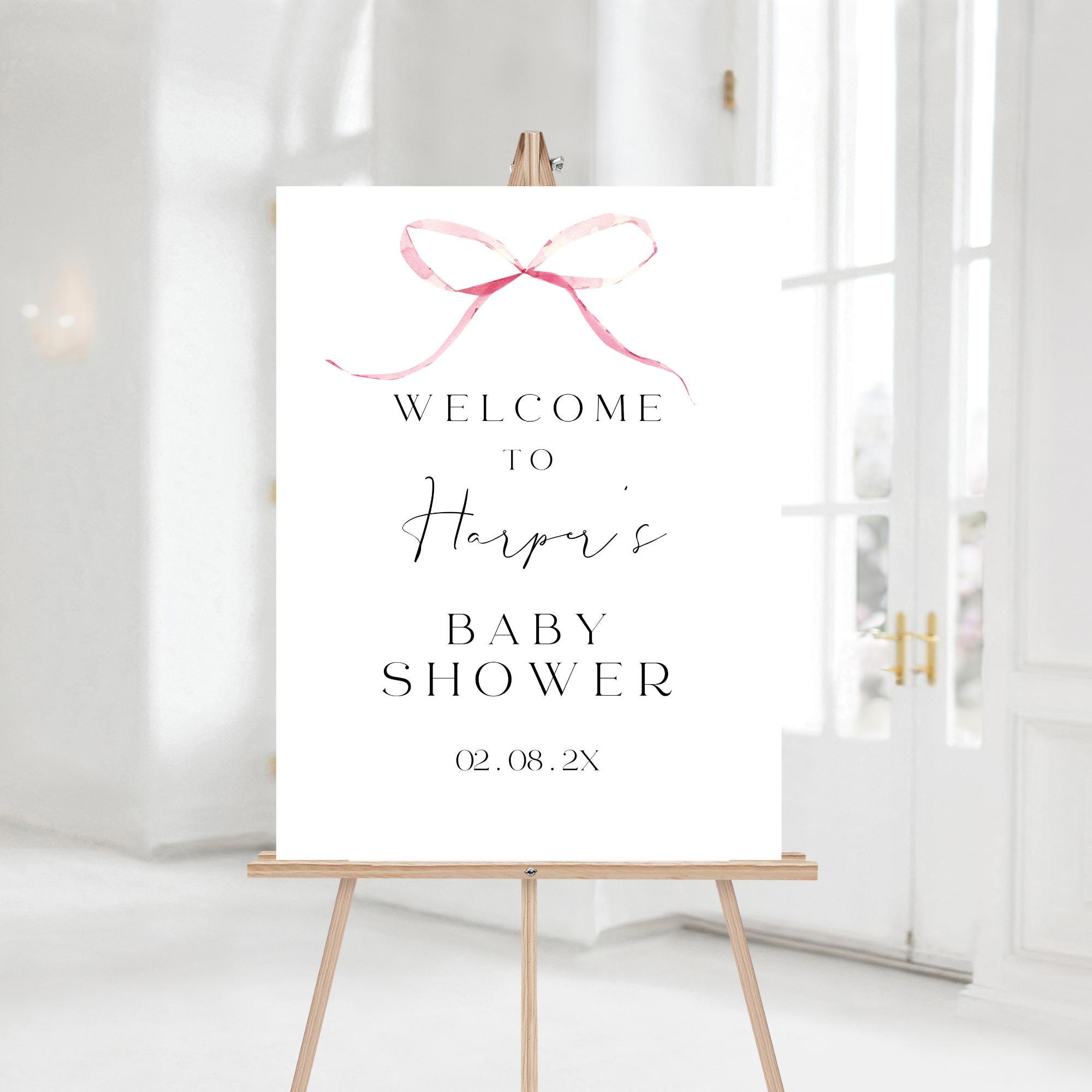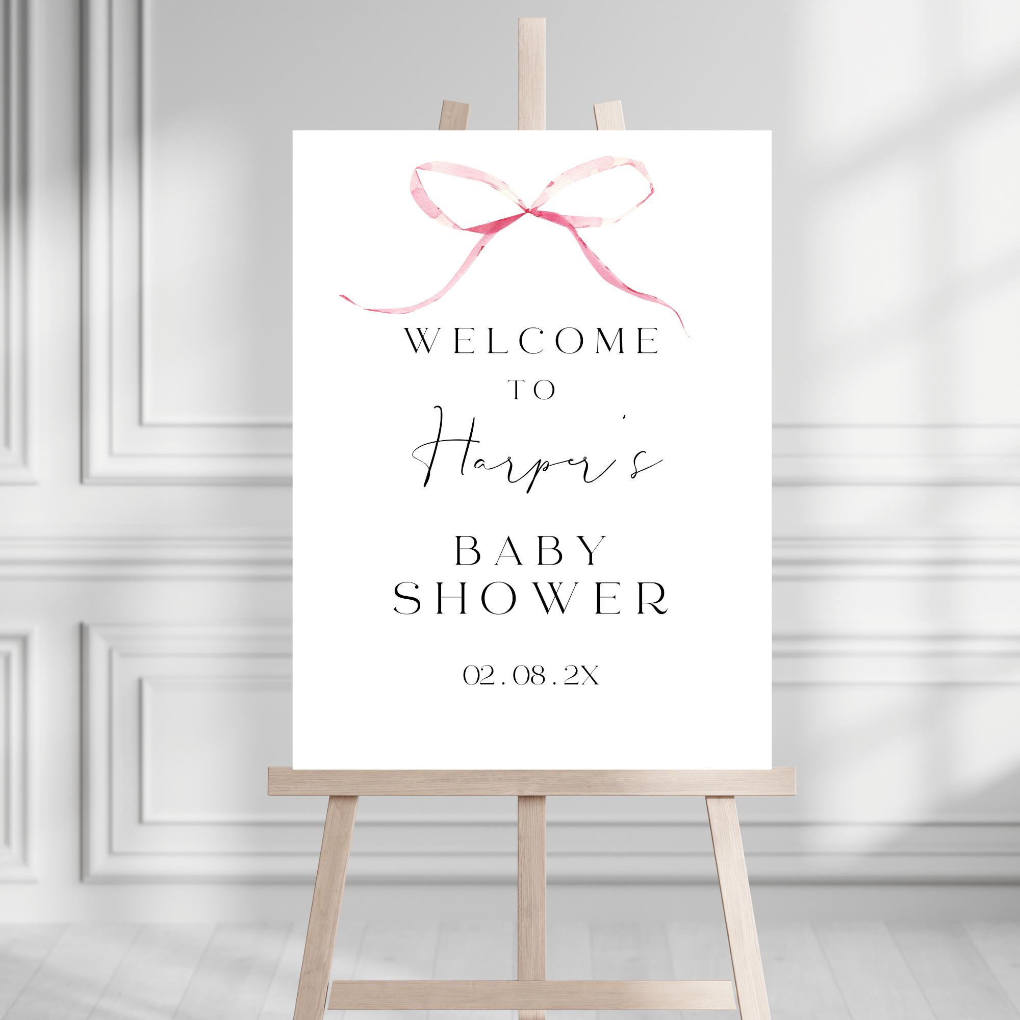 Modern Bow Baby Shower Welcome Sign Template. An Instant download digital file for you to edit in your web browser with Templett straight after your purchase. Once personalized you are ready to print.