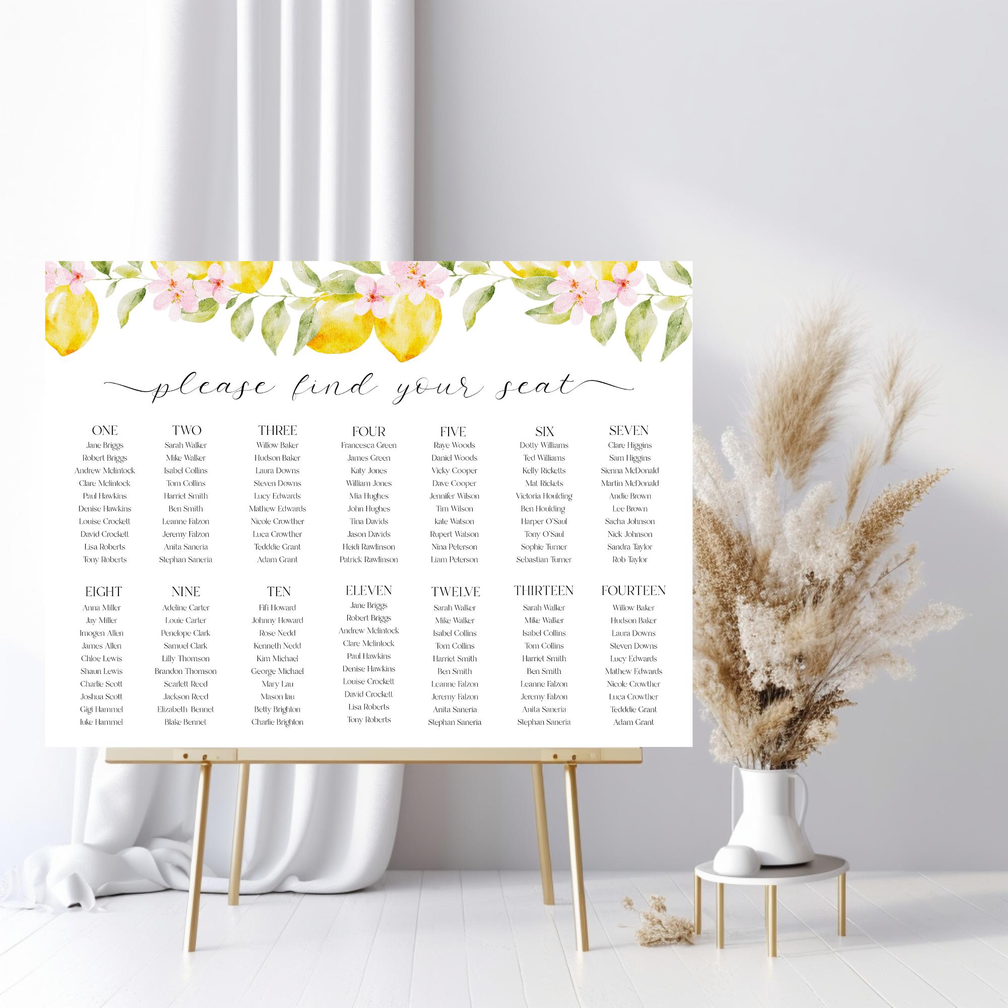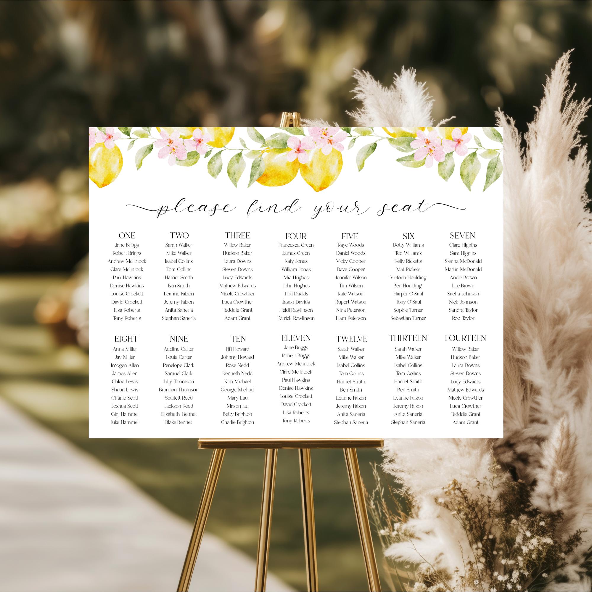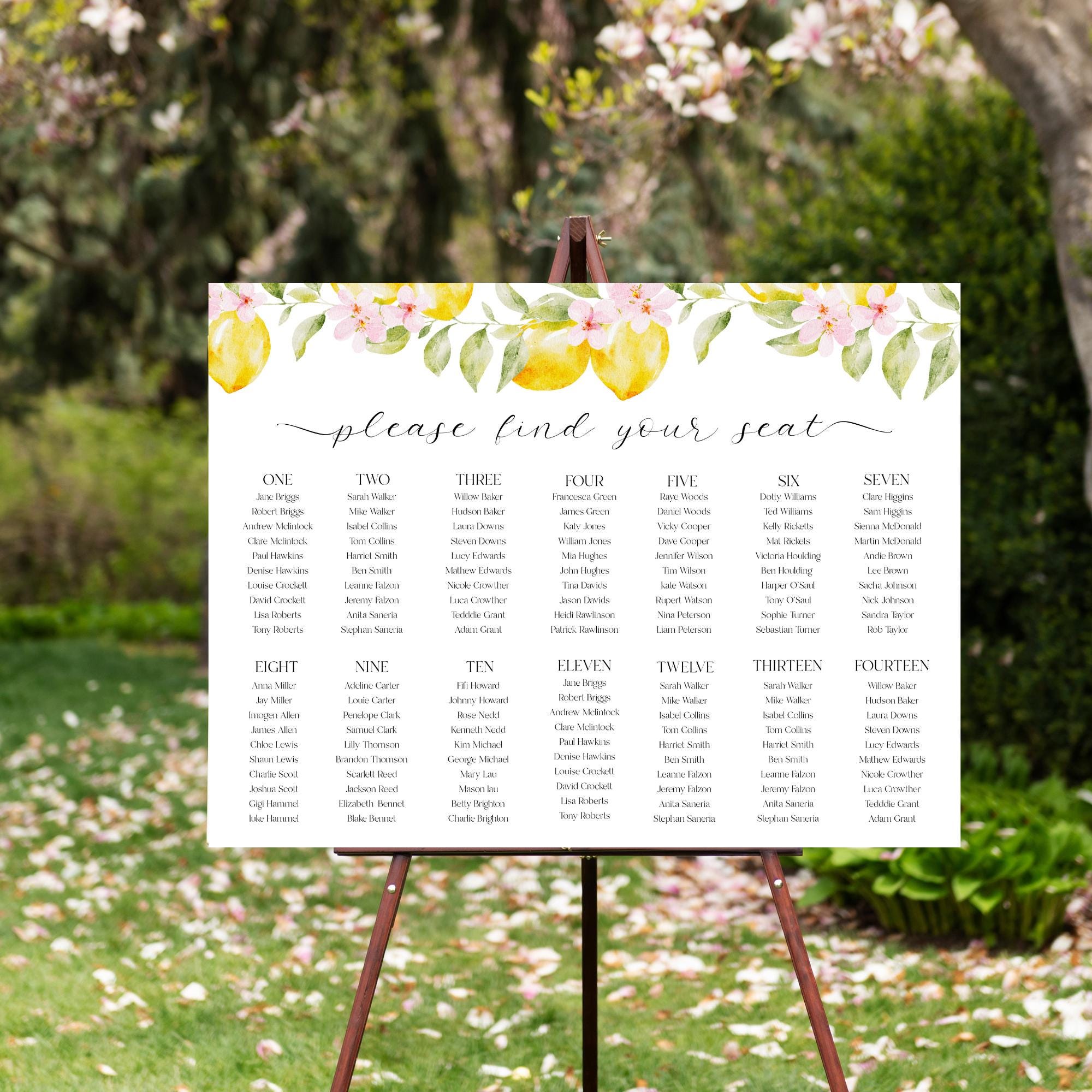 Lemons Wedding Seating Chart Sign Template. An Instant download digital file for you to edit in your web browser with Templett straight after your purchase. Once personalized you are ready to print.