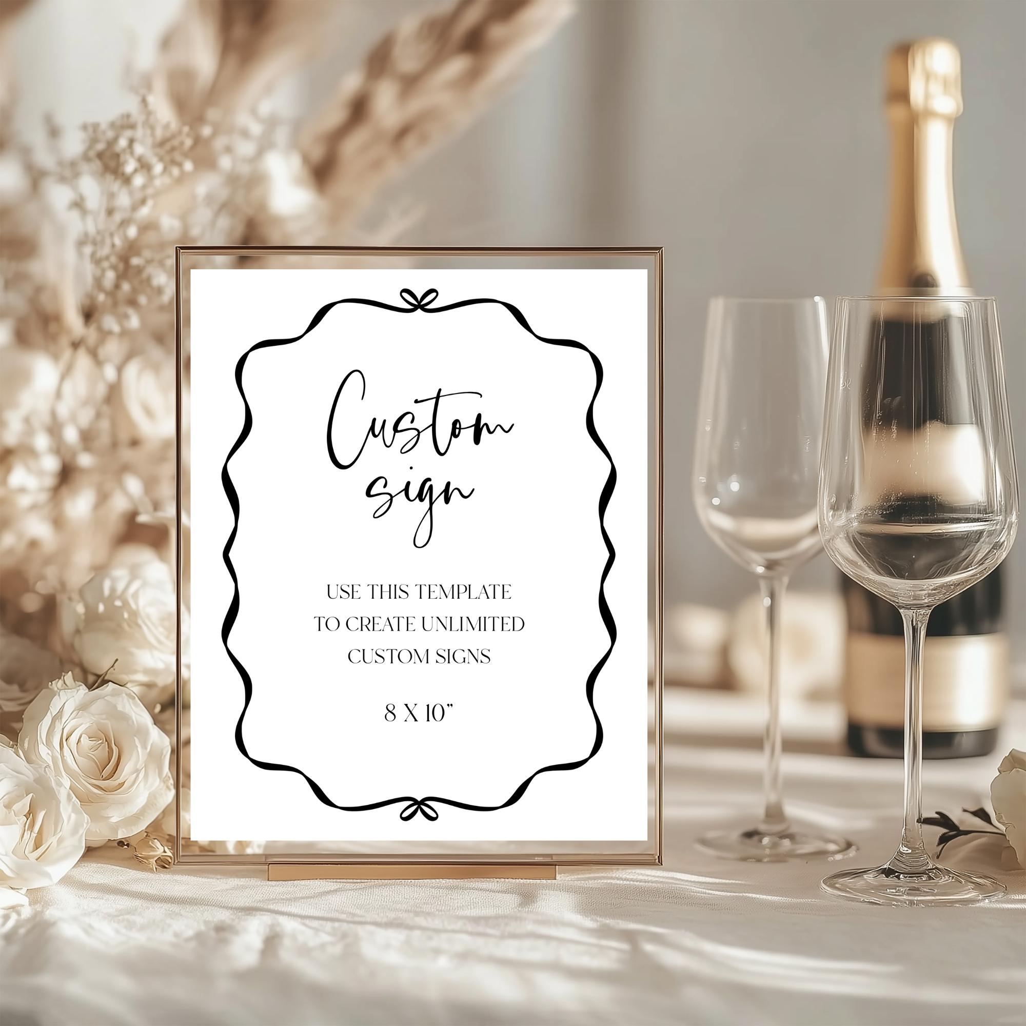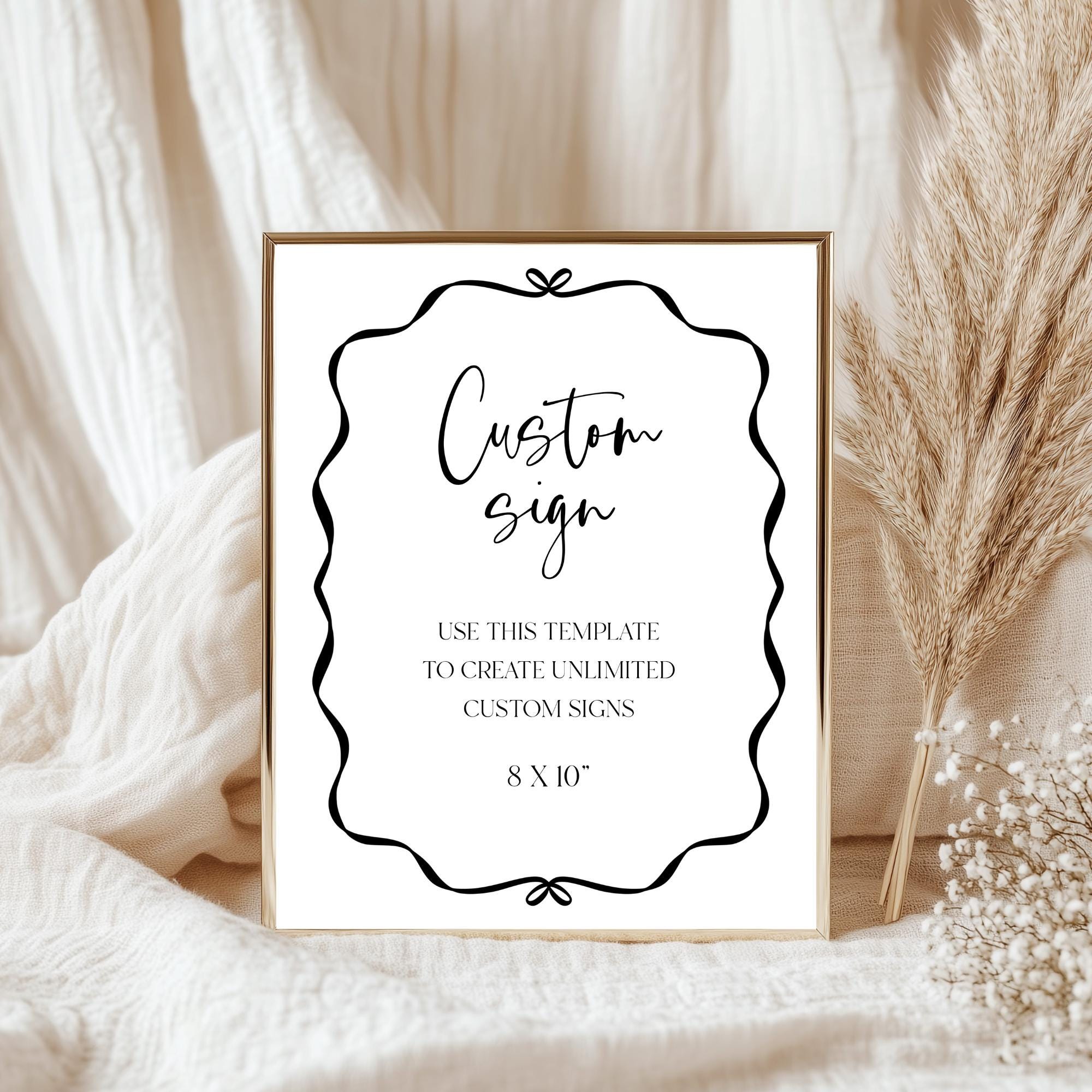 Modern Black and white Custom Sign Template. An Instant download digital file for you to edit in your web browser with Templett straight after your purchase. Once personalized you are ready to print.