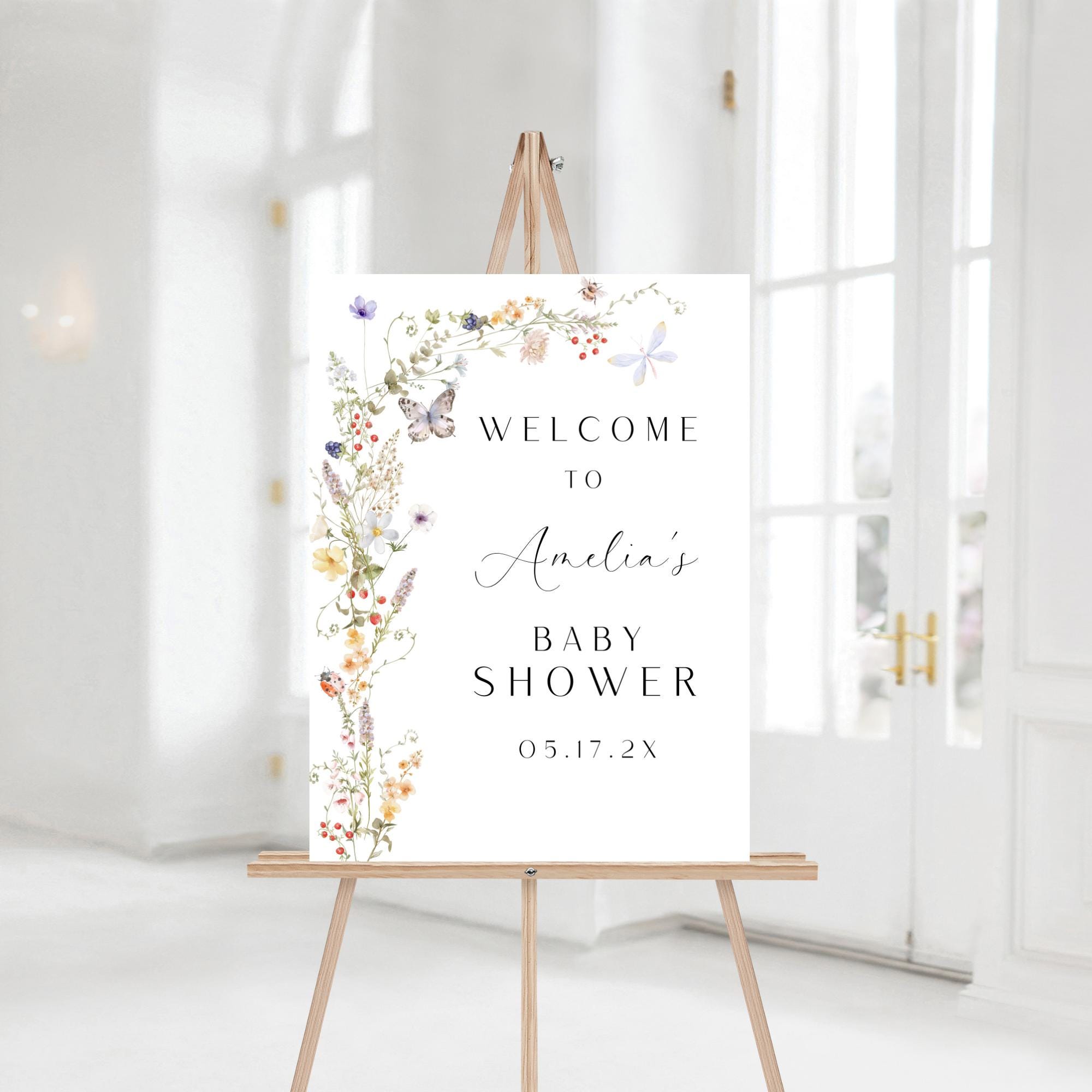 Dainty Wildflower Baby Shower Welcome Sign Template. An Instant download digital file for you to edit in your web browser with Templett straight after your purchase. Once personalized you are ready to print.