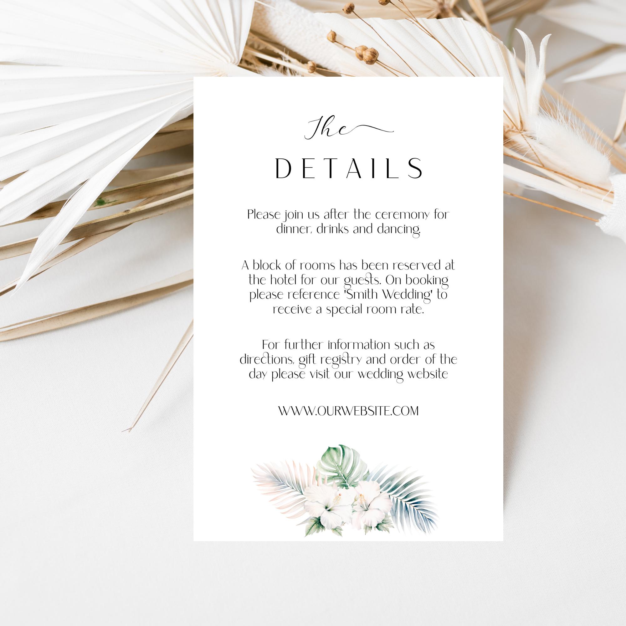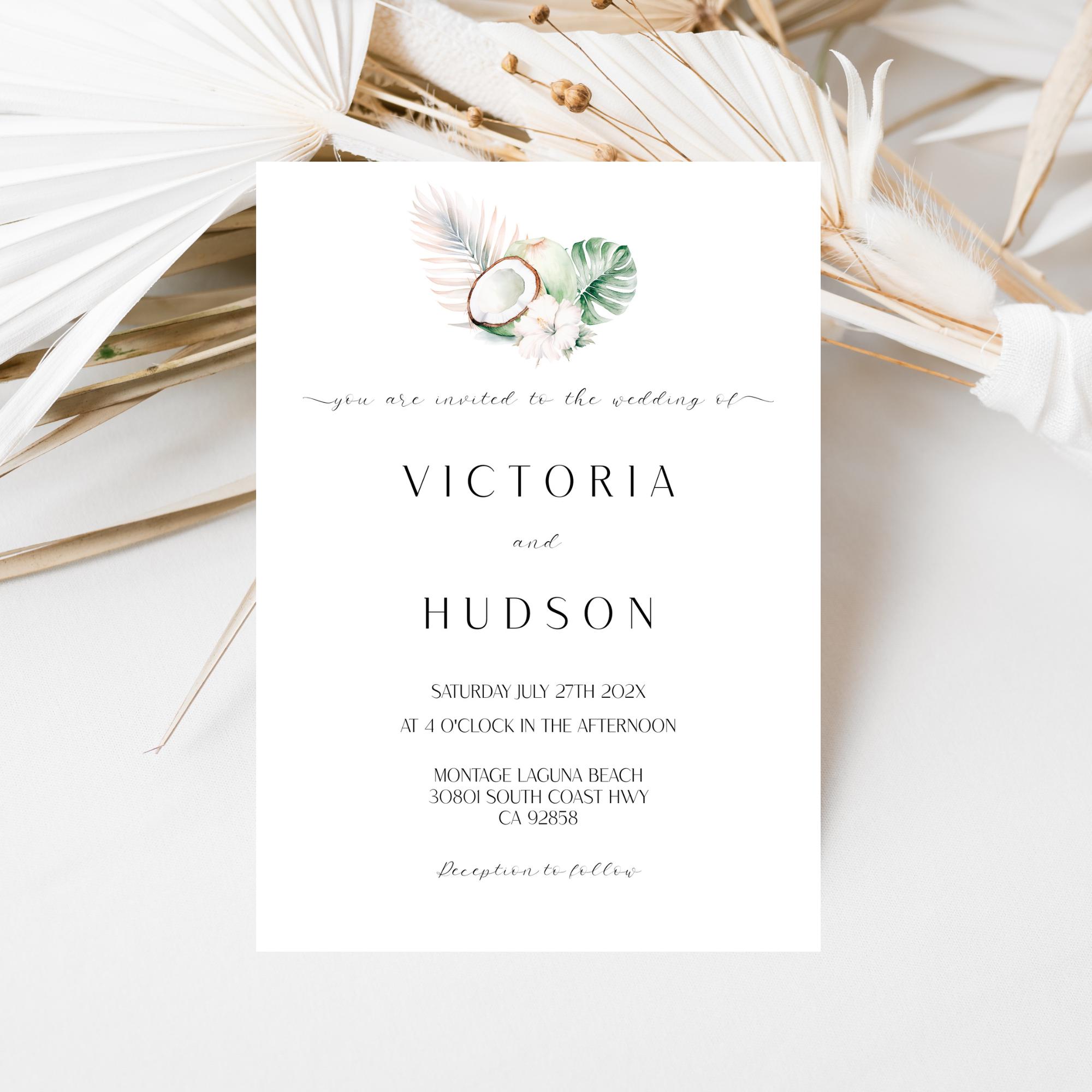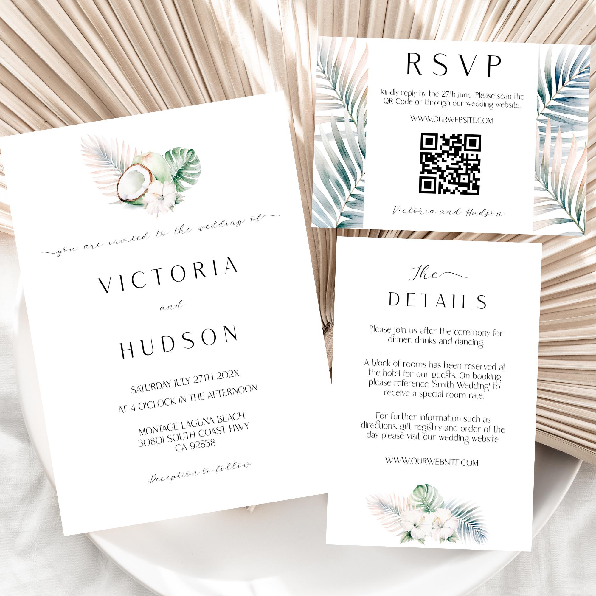 Modern Tropical Wedding Invitation Template Suite. An Instant download digital file for you to edit in your web browser with Templett straight after your purchase. Once personalized you are ready to print.