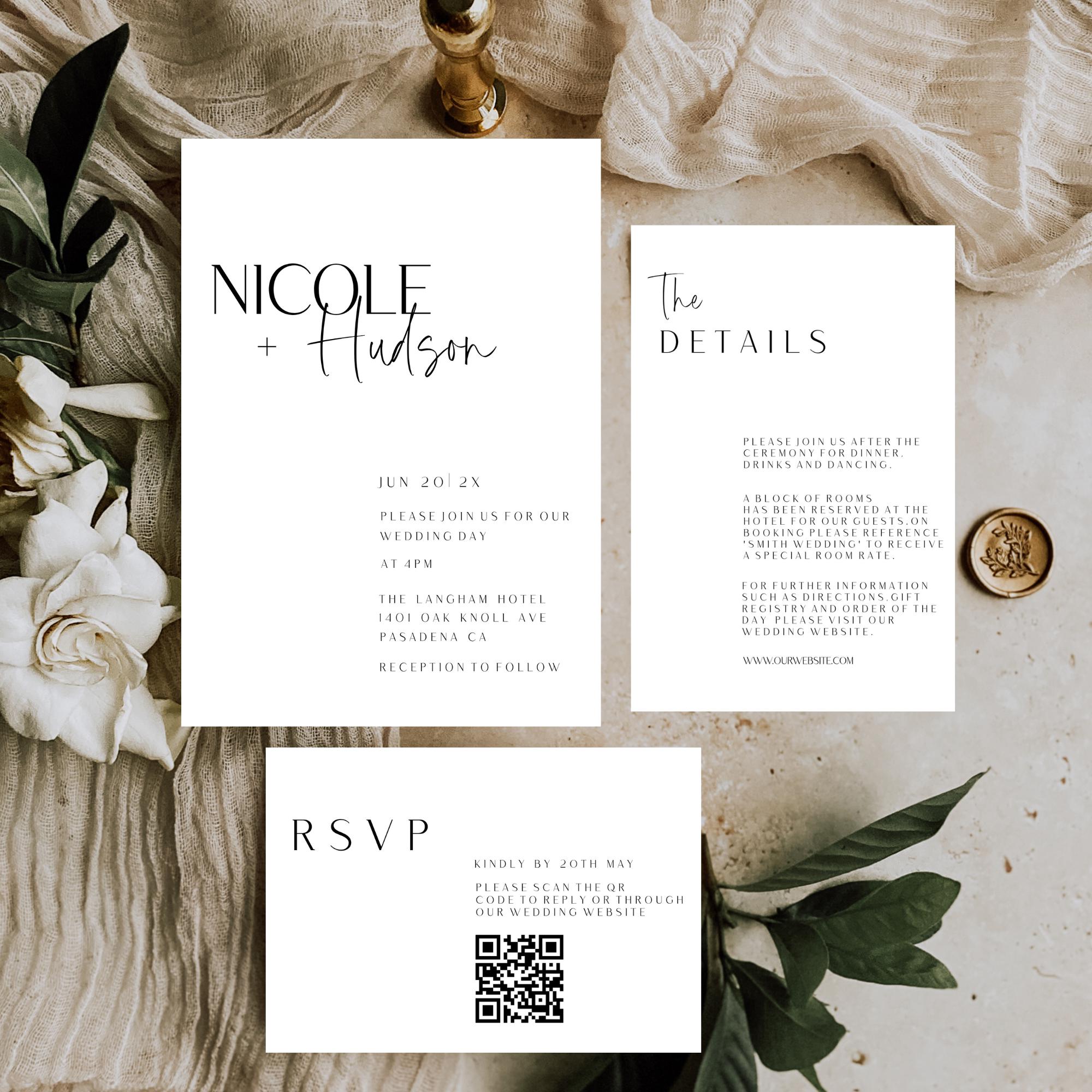 Modern Wedding Invitation Suite Template. An Instant download digital file for you to edit in your web browser with Templett straight after your purchase. Once personalized you are ready to print.