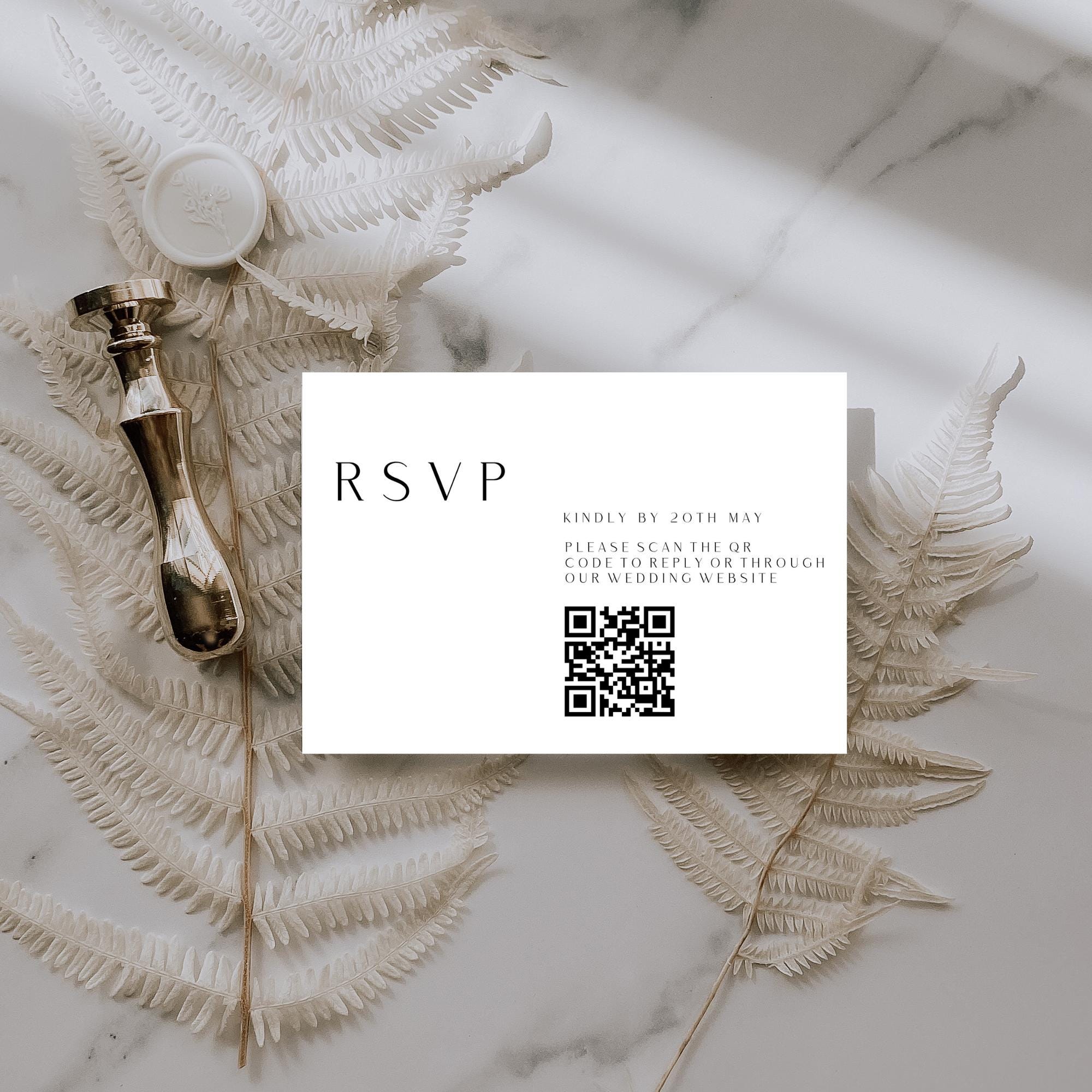 You will need to replace the QR Code by creating your own and uploading the new one that links to your wedding website. There are many websites that you can create a free custom QR code. If you don't want to use a QR Code you can easily delete this from the invitation.