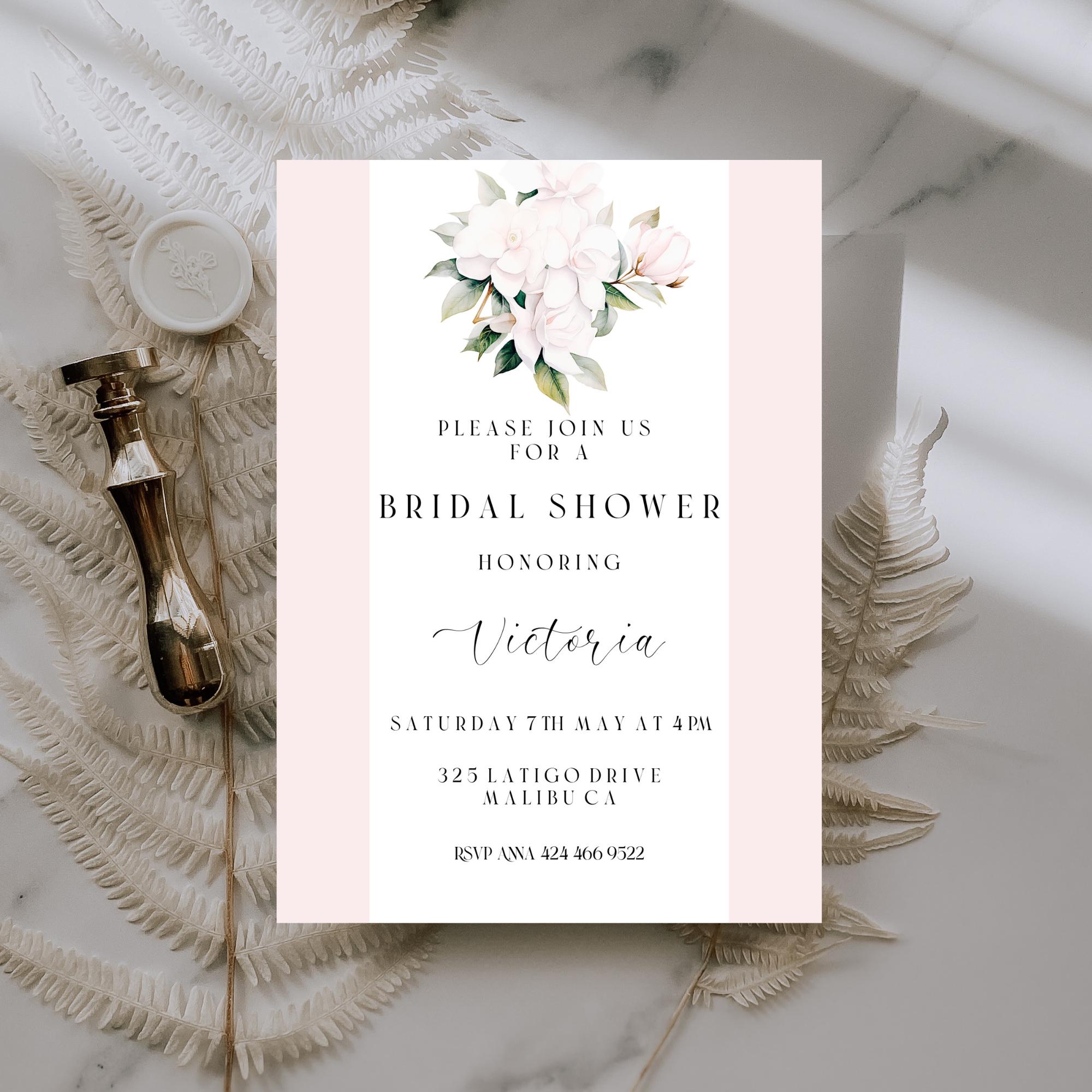 Modern Floral Bridal Shower Invitation Template. An Instant download digital file for you to edit in your web browser with Templett straight after your purchase. Once personalized you are ready to print.
