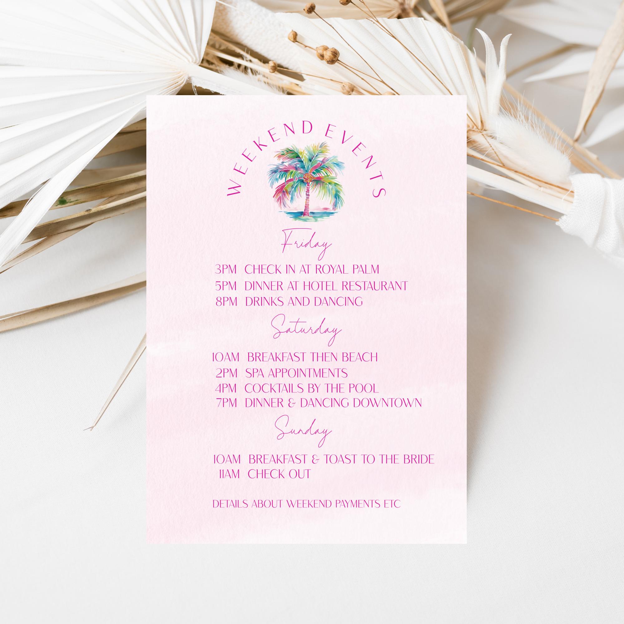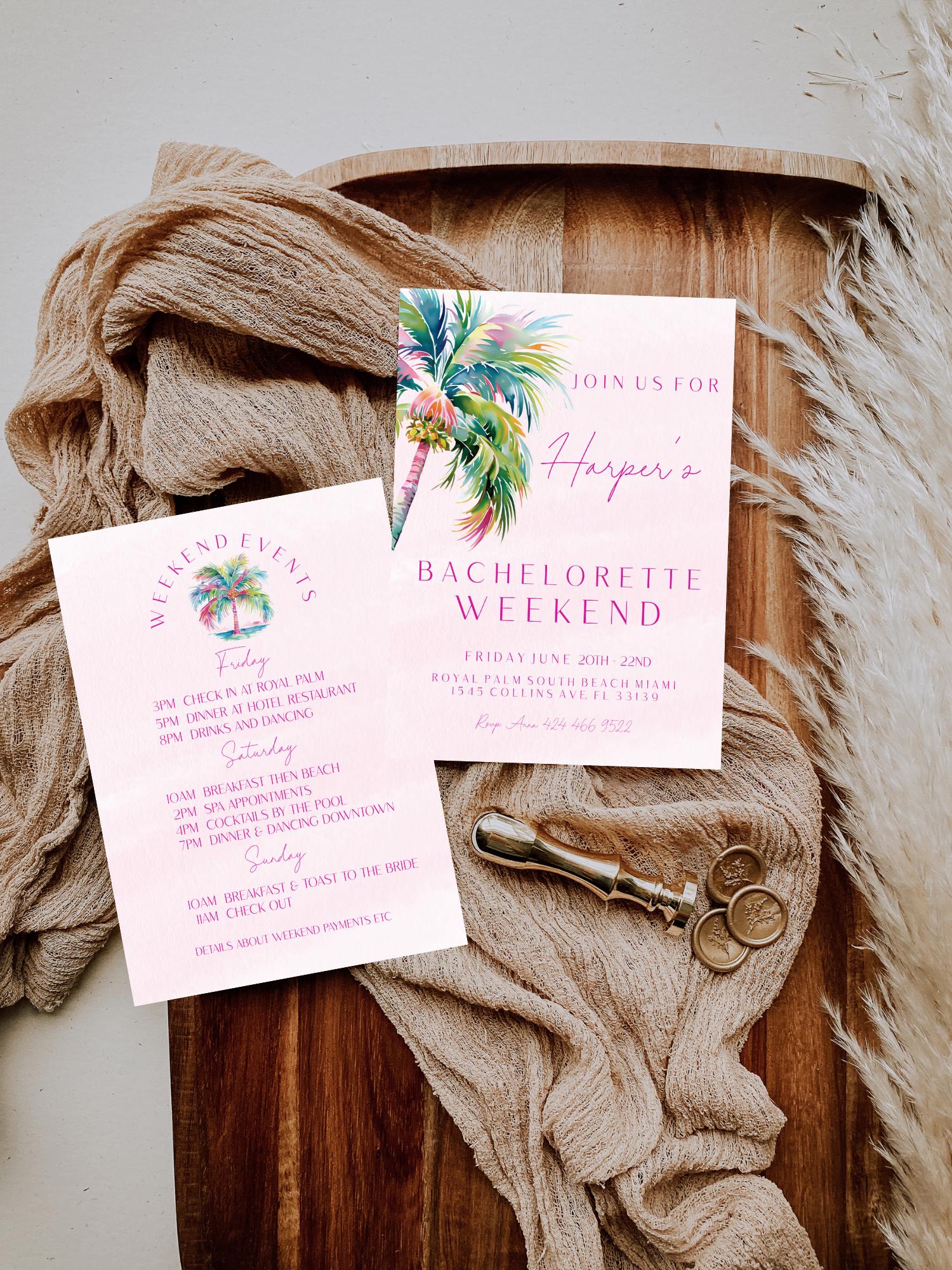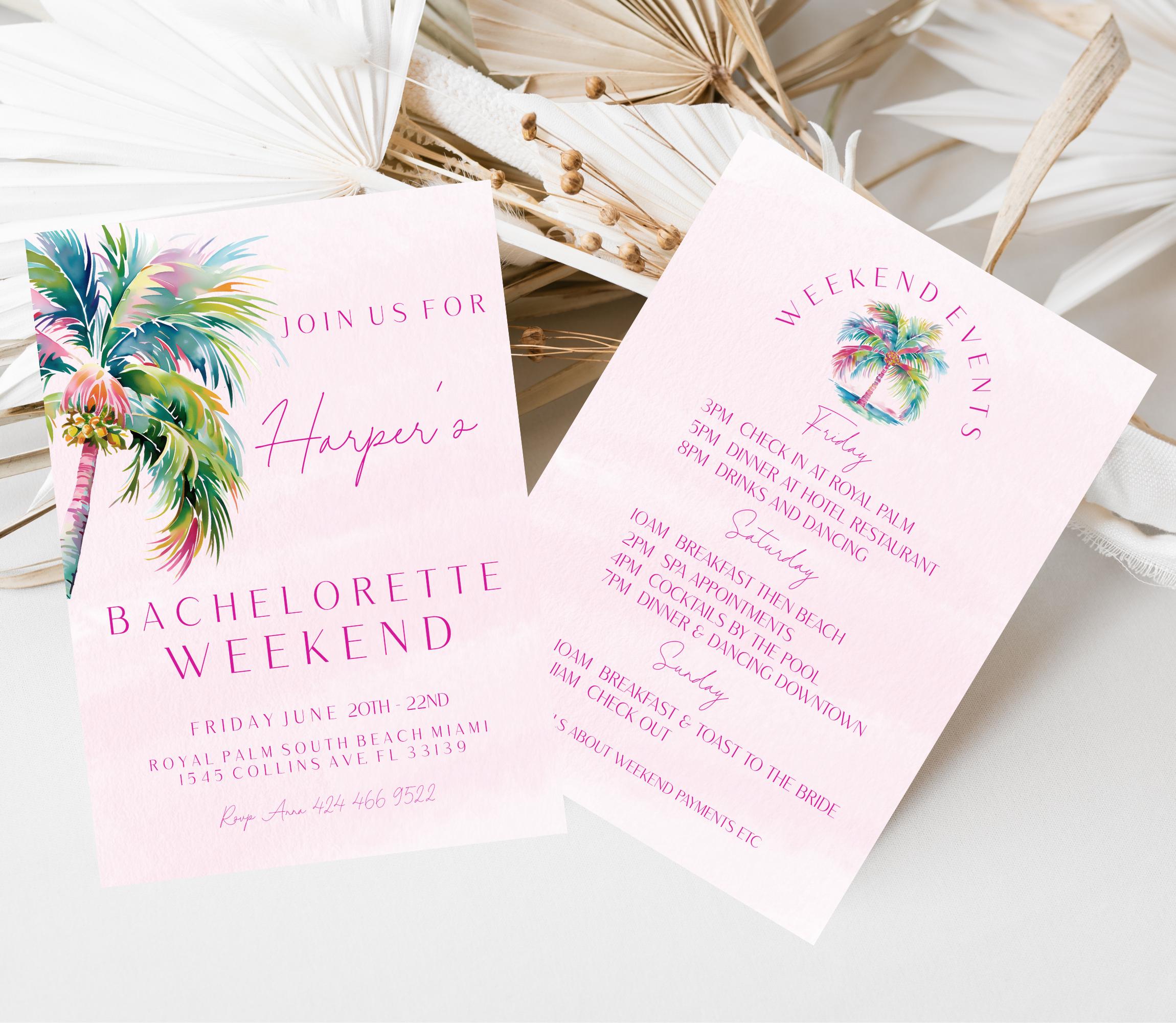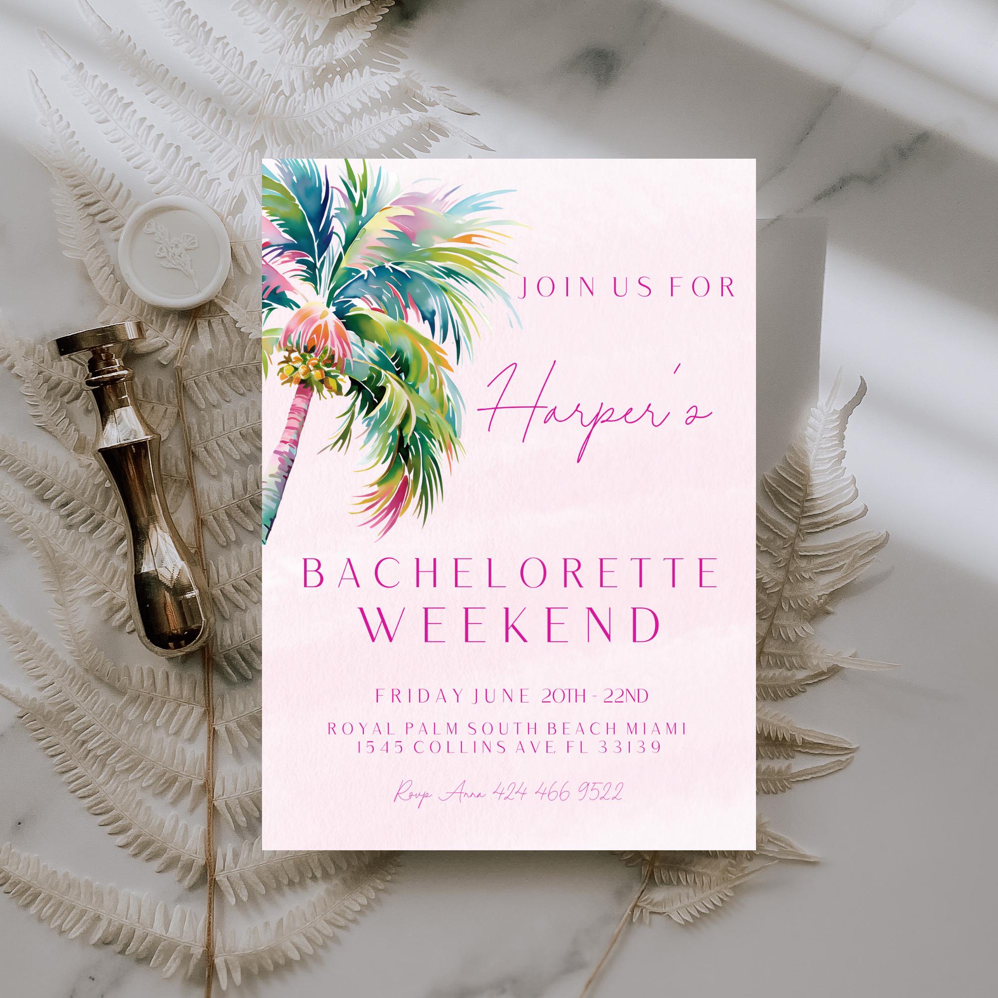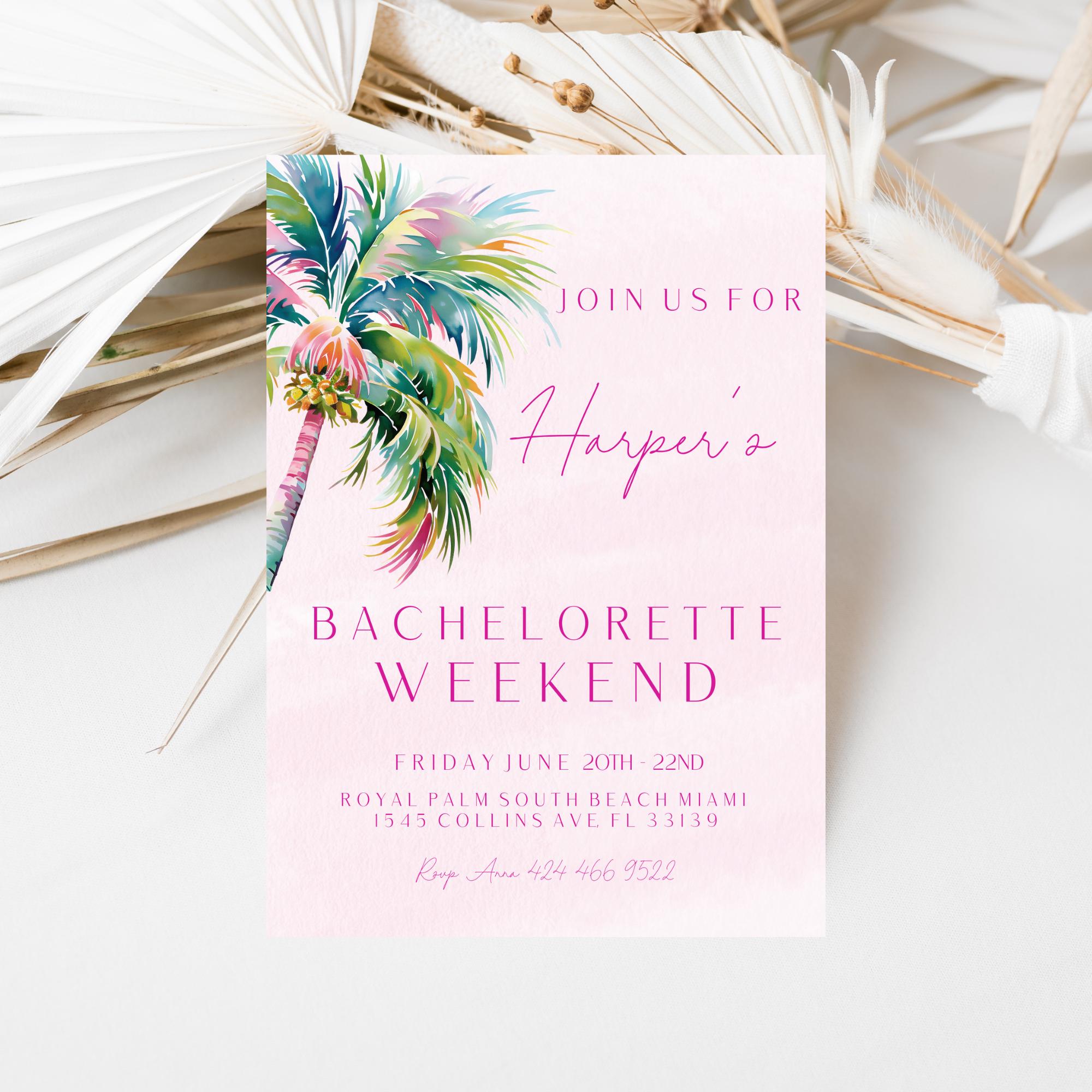 Tropical Bachelorette Weekend Invitation Template. An Instant download digital file for you to edit in your web browser with Templett straight after your purchase. Once personalized you are ready to print.