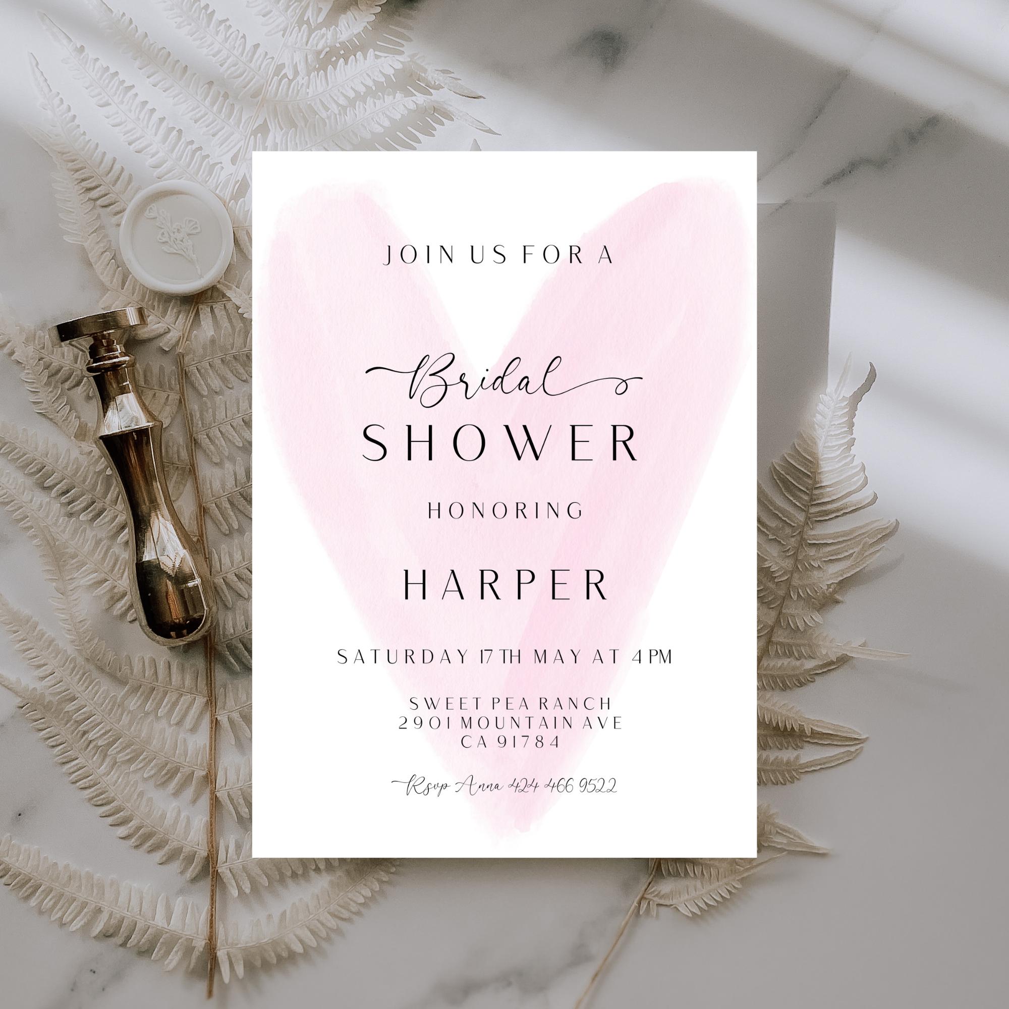Modern Bridal Shower Invitation Template Template. An Instant download digital file for you to edit in your web browser with Templett straight after your purchase. Once personalized you are ready to print.