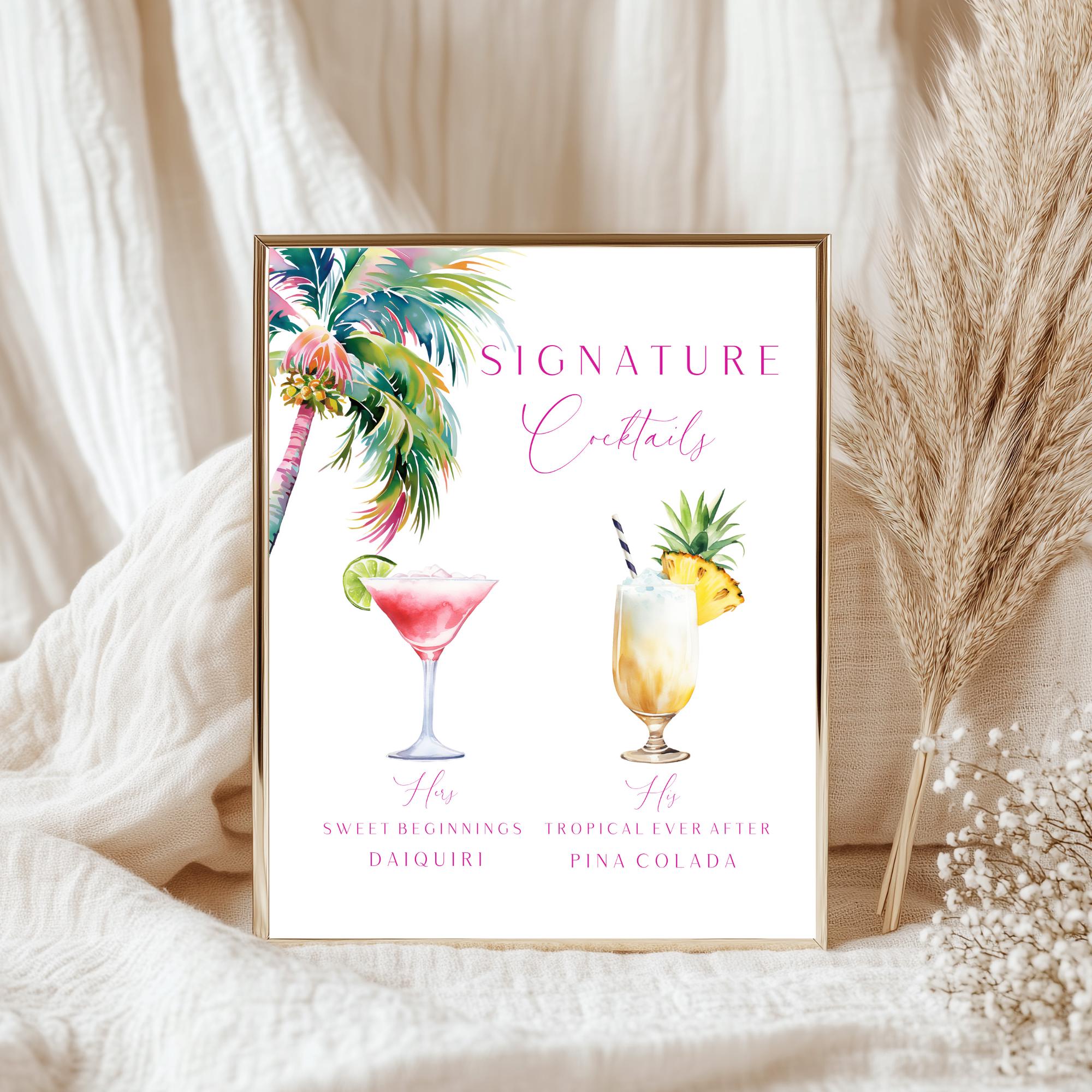 Tropical Signature Drinks Sign Template. An Instant download digital file for you to edit in your web browser with Templett straight after your purchase. Once personalized you are ready to print.