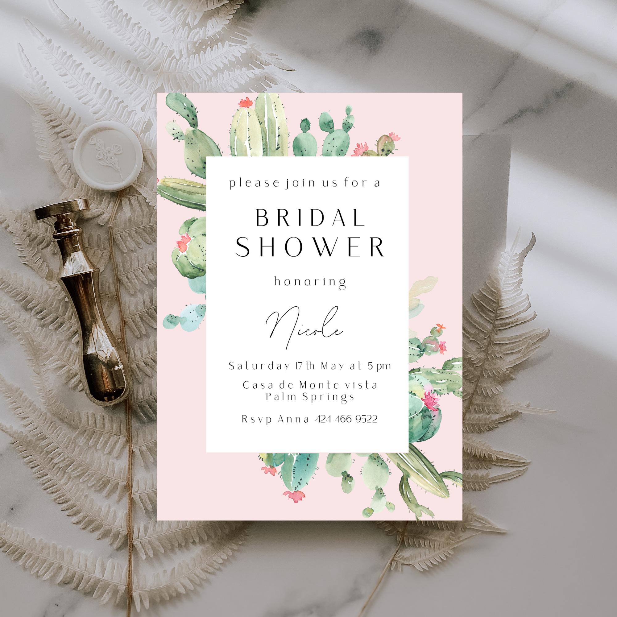 Desert Bridal Shower Invitation Template. An Instant download digital file for you to edit in your web browser with Templett straight after your purchase. Once personalized you are ready to print.