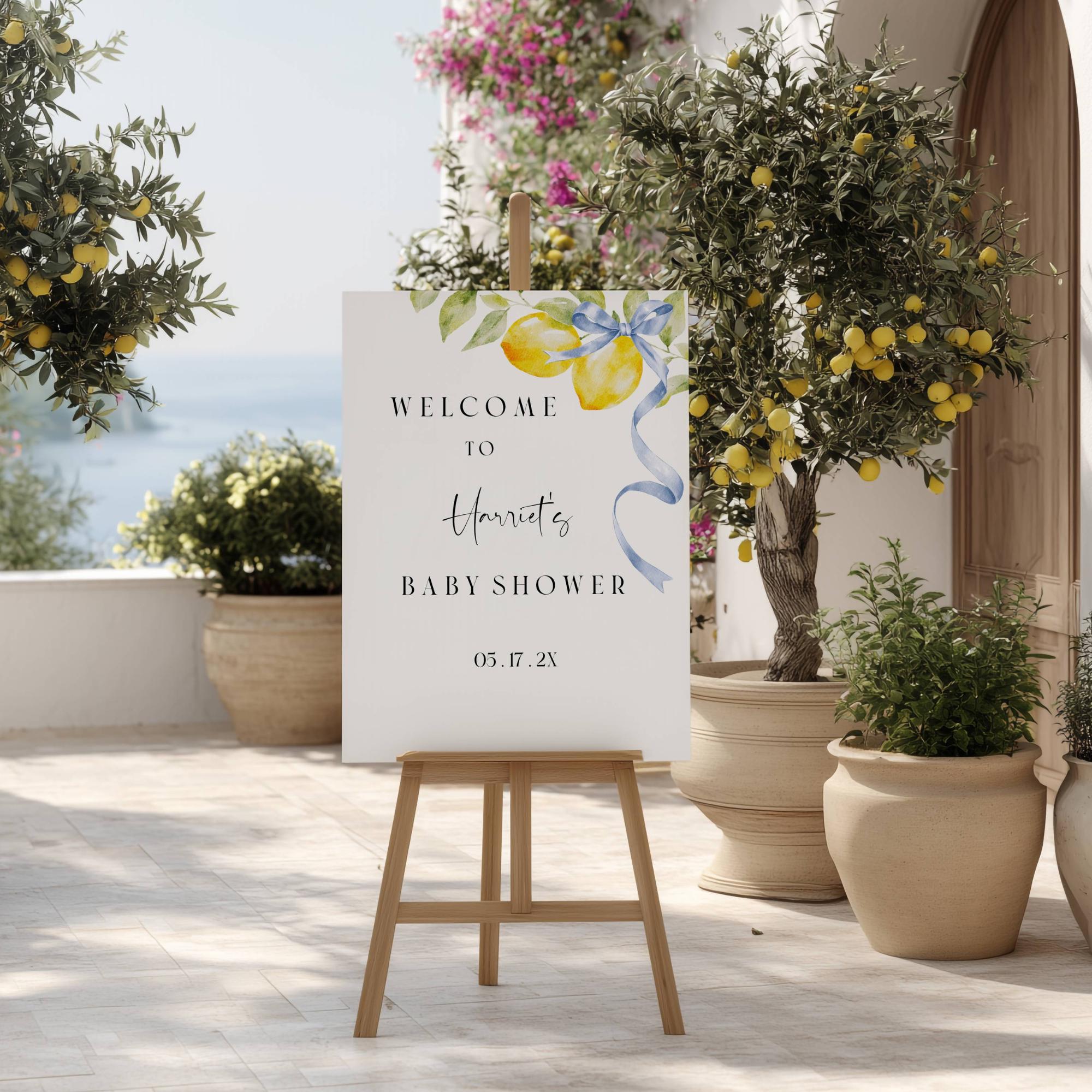 Lemon Baby Shower Welcome Sign Template. An Instant download digital file for you to edit in your web browser with Templett straight after your purchase. Once personalized you are ready to print.