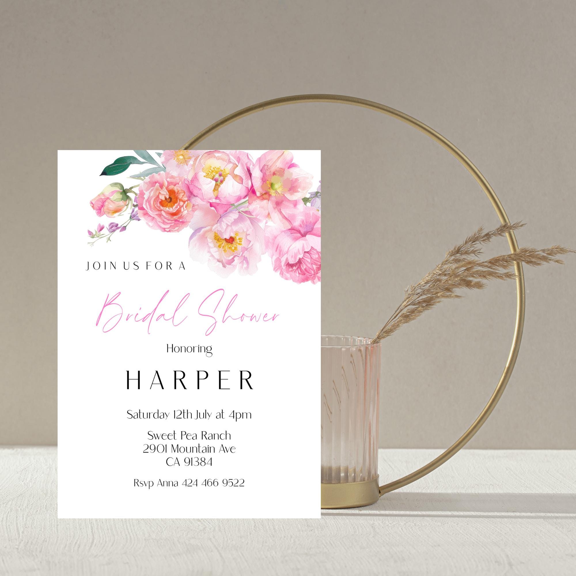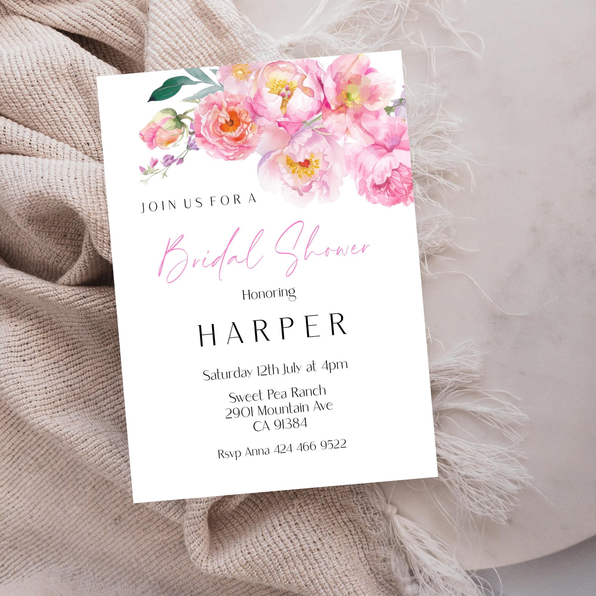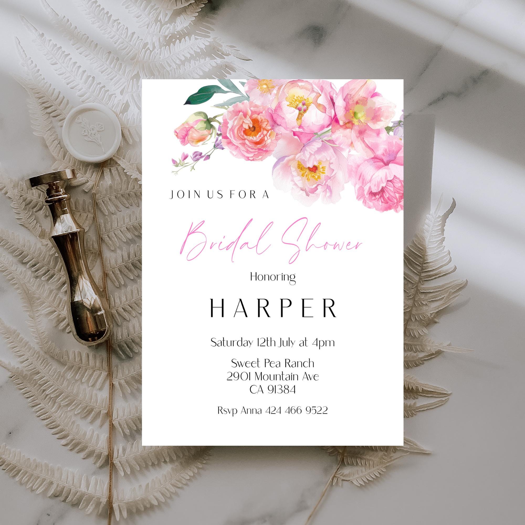 Modern Floral Bridal Shower Invitation Template. An Instant download digital file for you to edit in your web browser with Templett straight after your purchase. Once personalized you are ready to print.