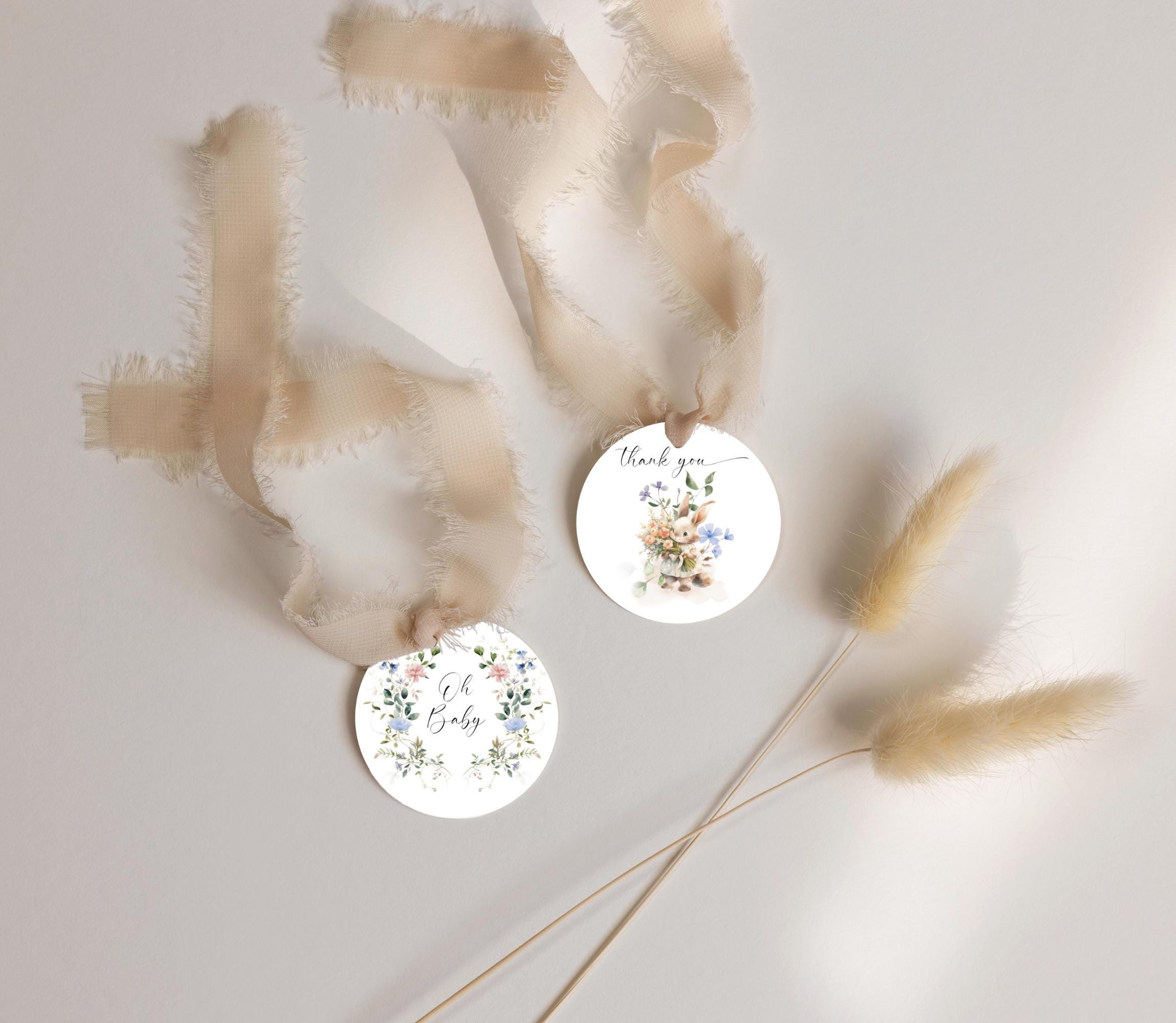 Baby Shower Bunny Round Sticker, Tags & Toppers Template. An Instant download digital file for you to edit in your web browser with Templett straight after your purchase. Once personalized you are ready to print.