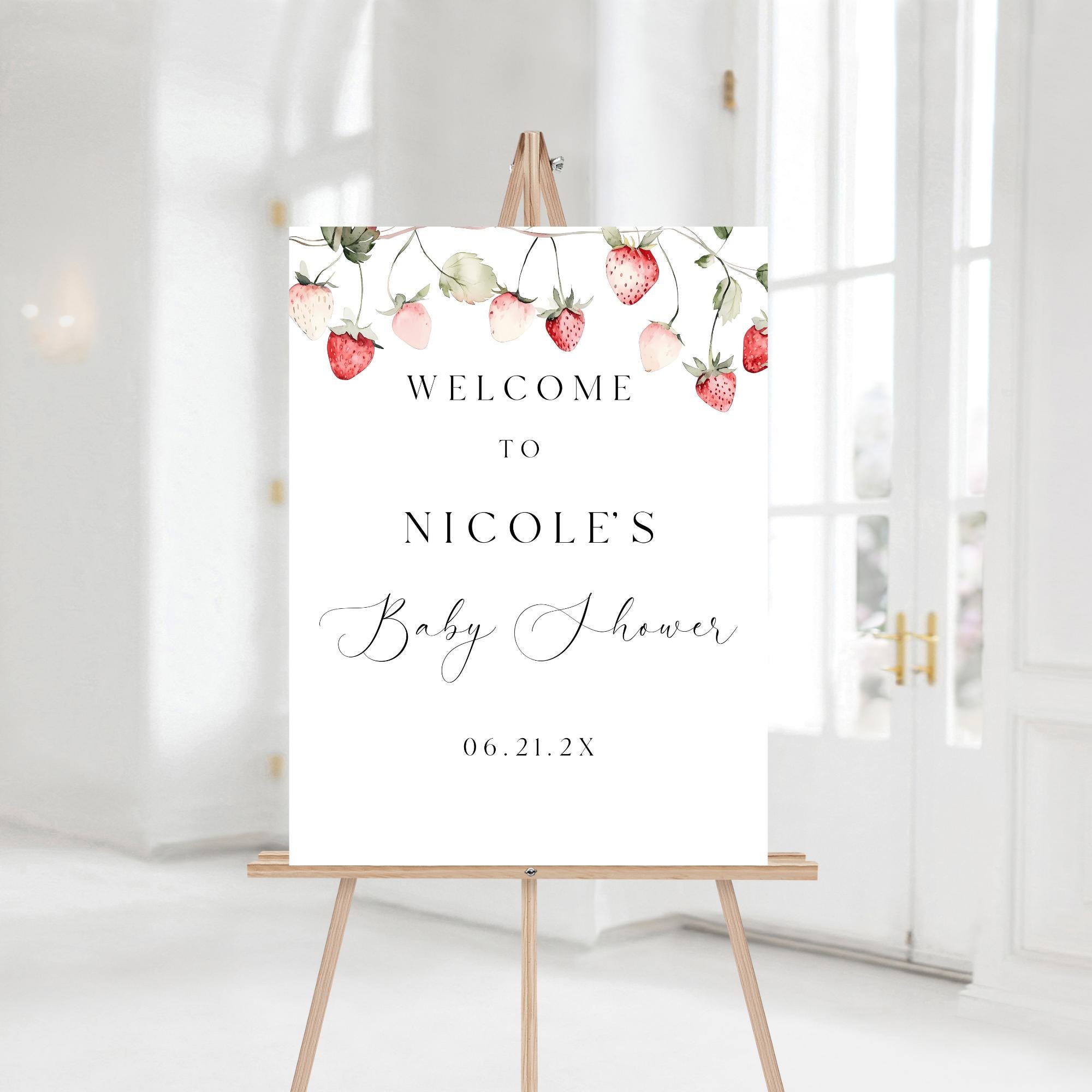 Wild Strawberry Baby Shower Welcome Sign Template. An Instant download digital file for you to edit in your web browser with Templett straight after your purchase. Once personalized you are ready to print.