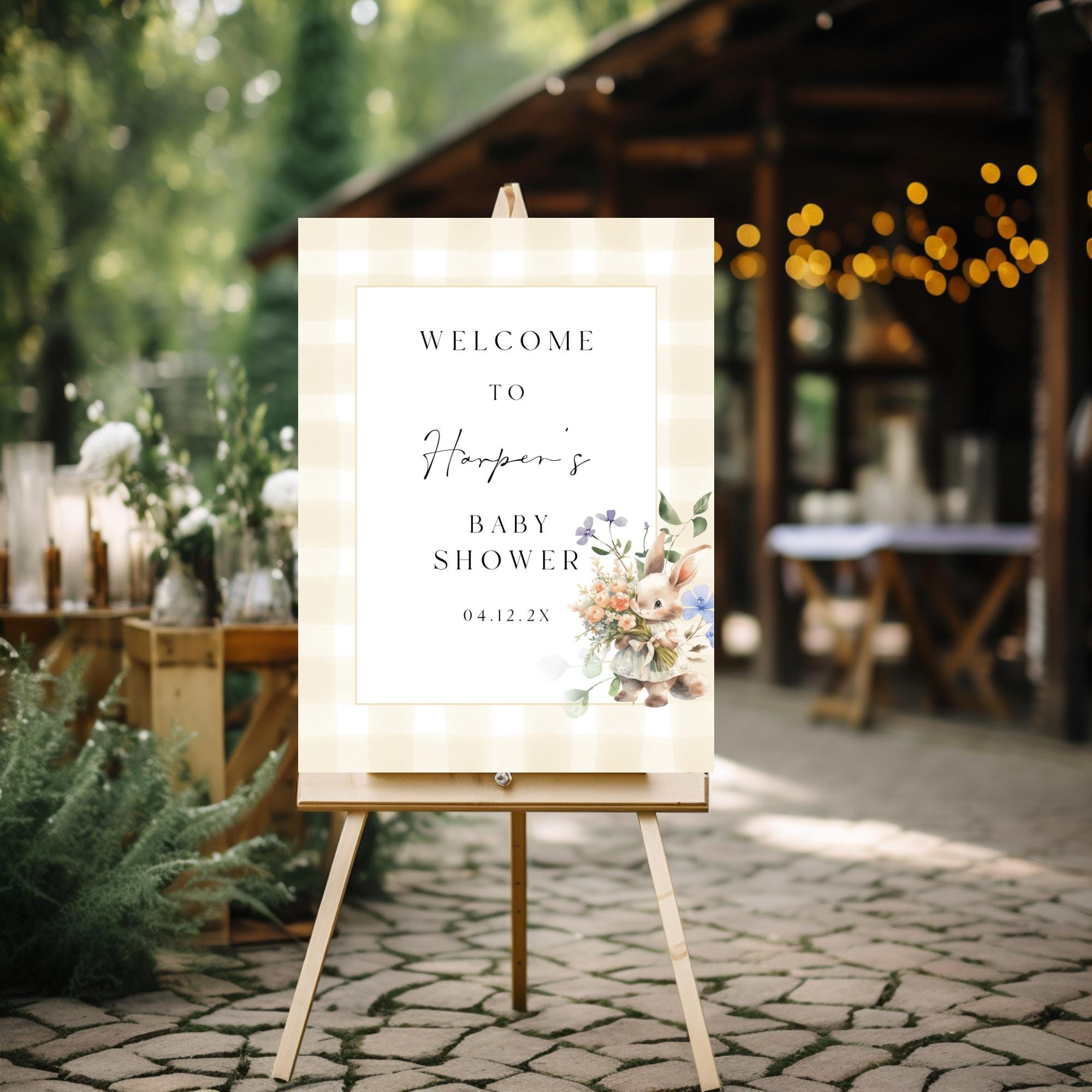 Gender Neutral Gingham Baby Shower Welcome Sign Template. An Instant download digital file for you to edit in your web browser with Templett straight after your purchase. Once personalized you are ready to print.