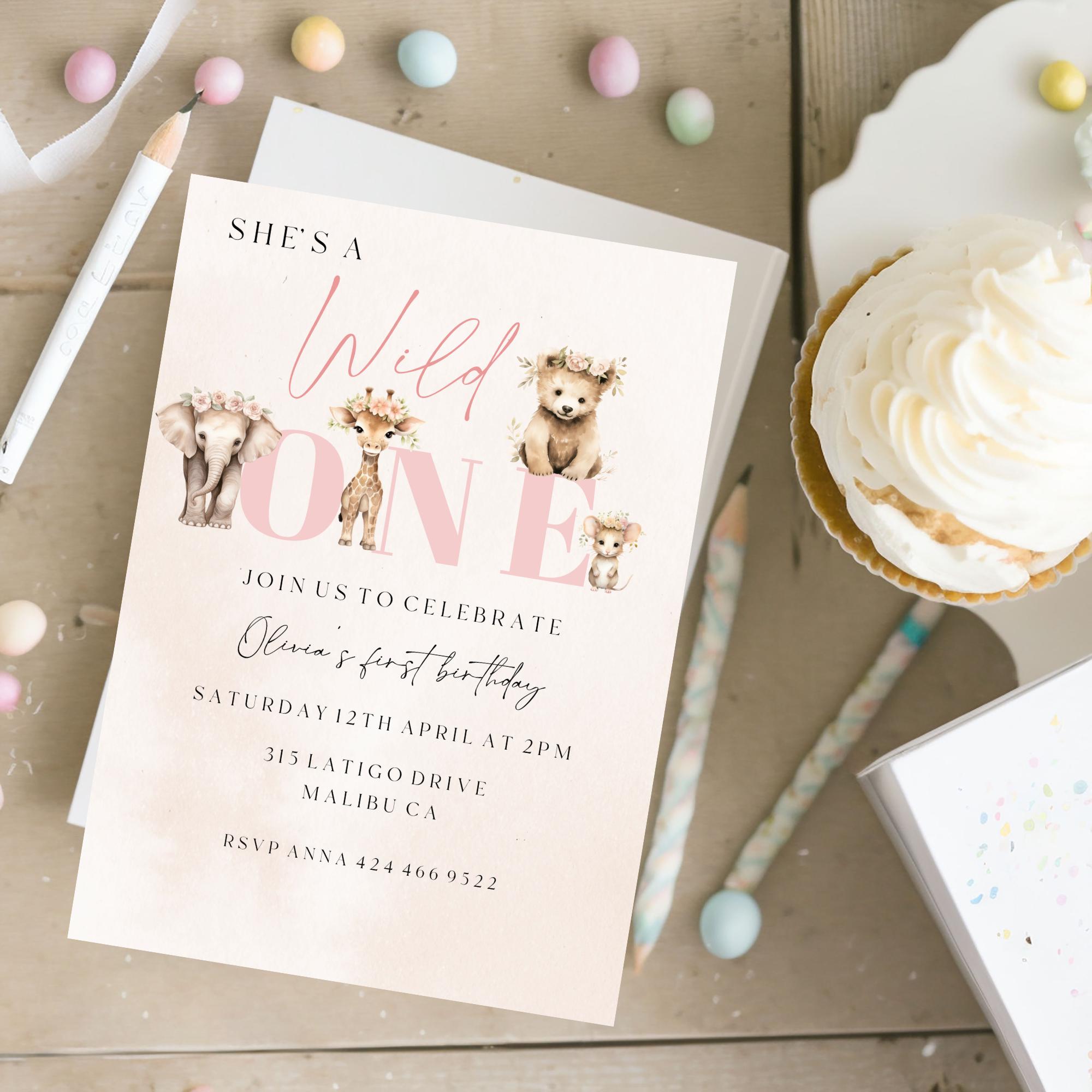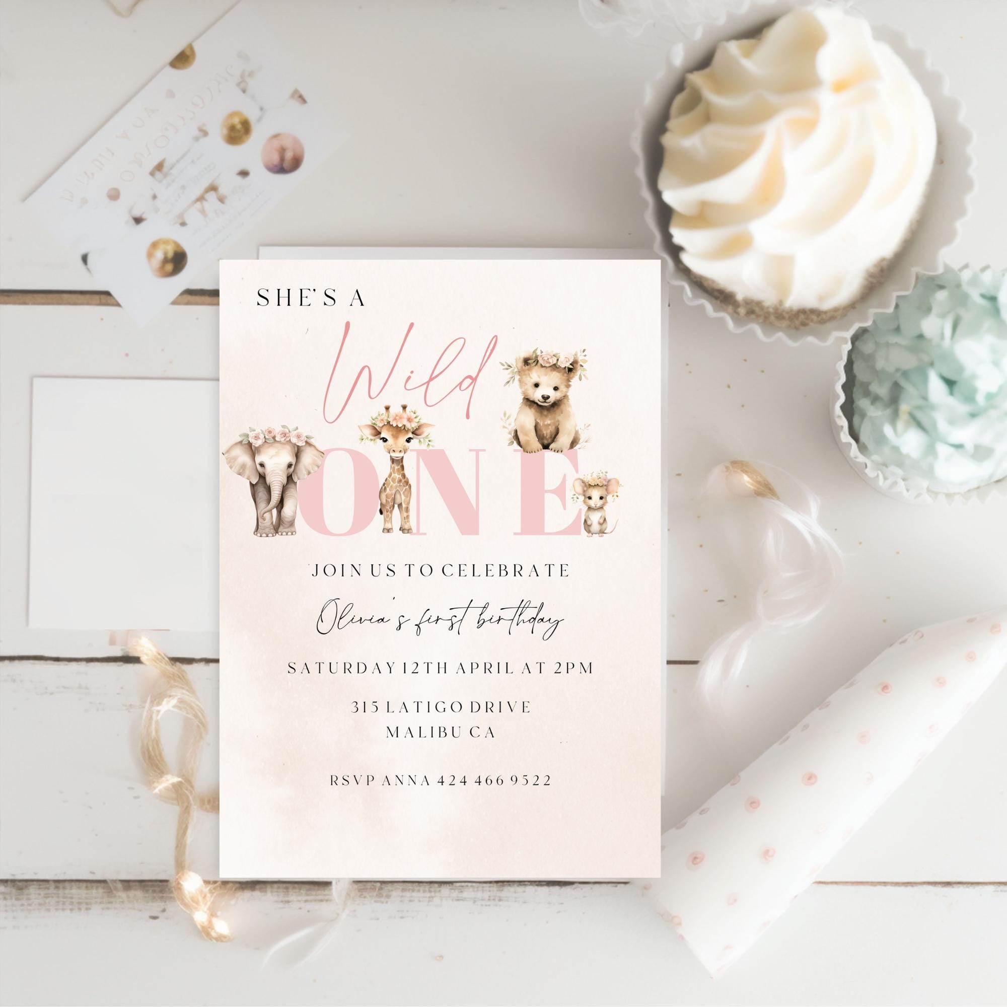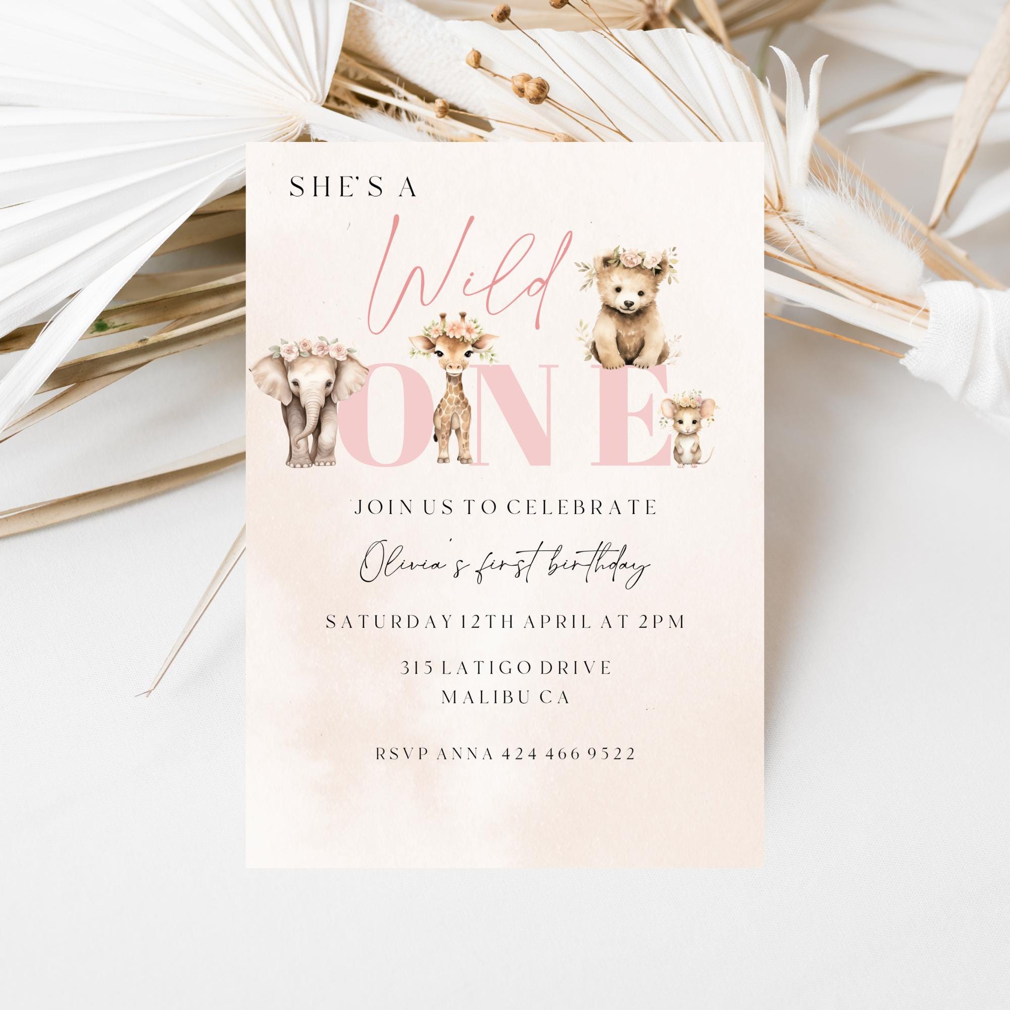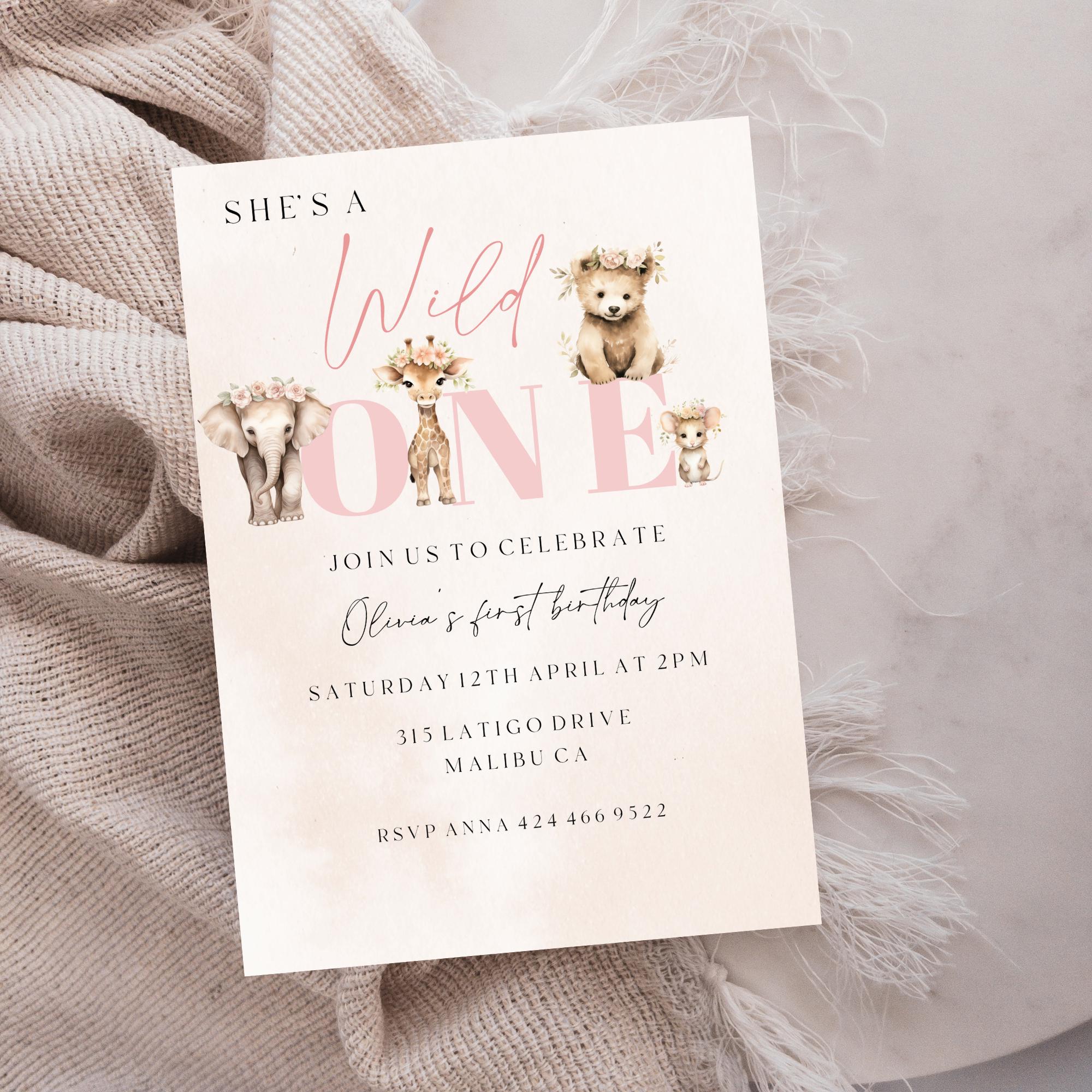 Safari First Birthday Invitation Template. An Instant download digital file for you to edit in your web browser with Templett straight after your purchase. Once personalized you are ready to print.
