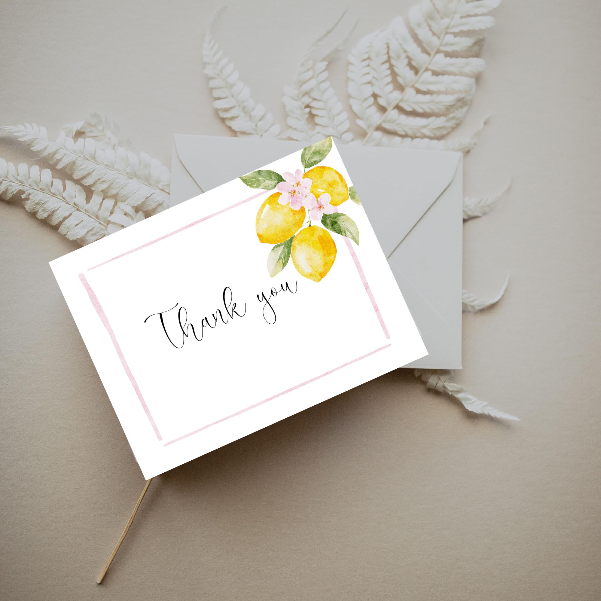 Lemons Thank You Card Template. An Instant download digital file for you to edit in your web browser with Templett straight after your purchase. Once personalized you are ready to print.