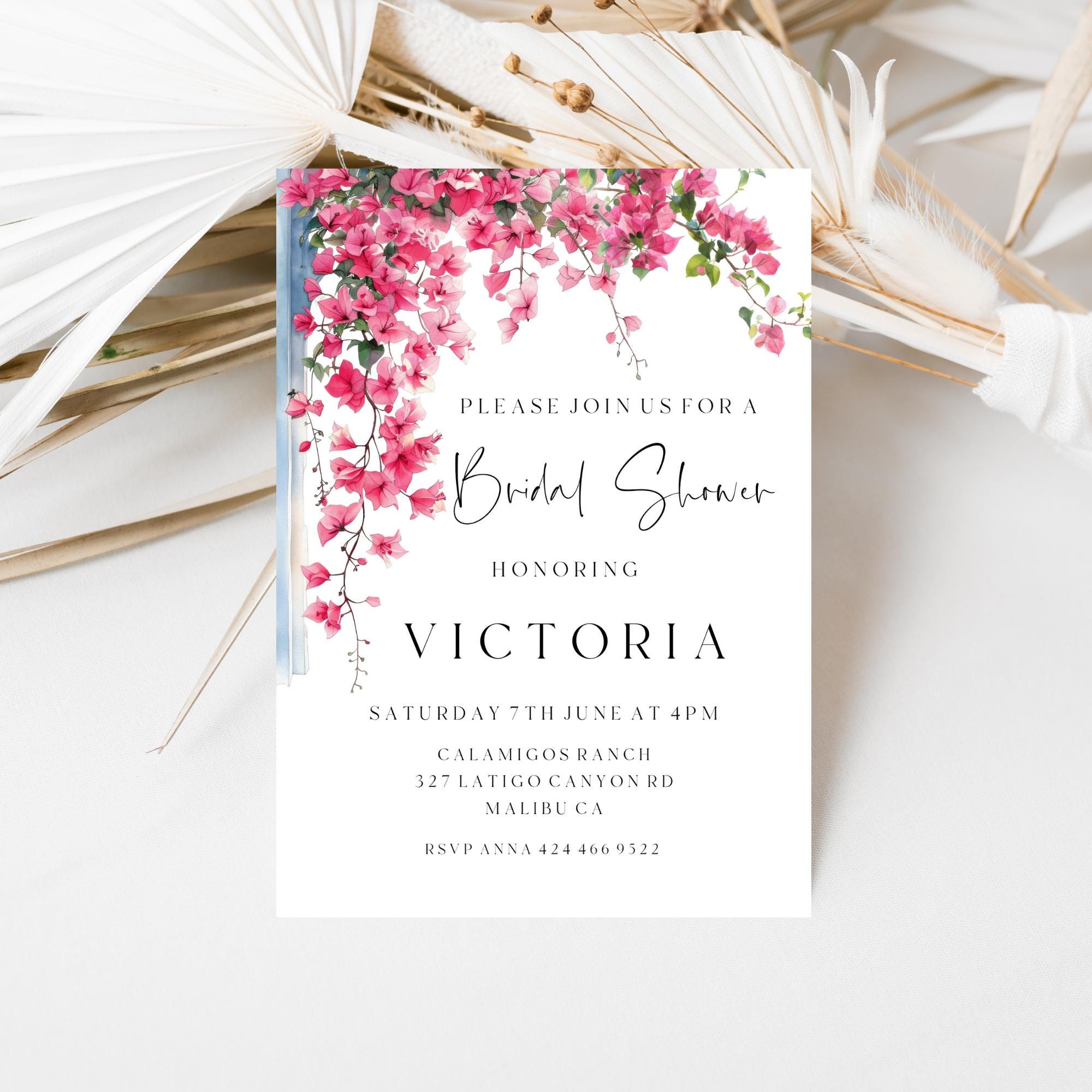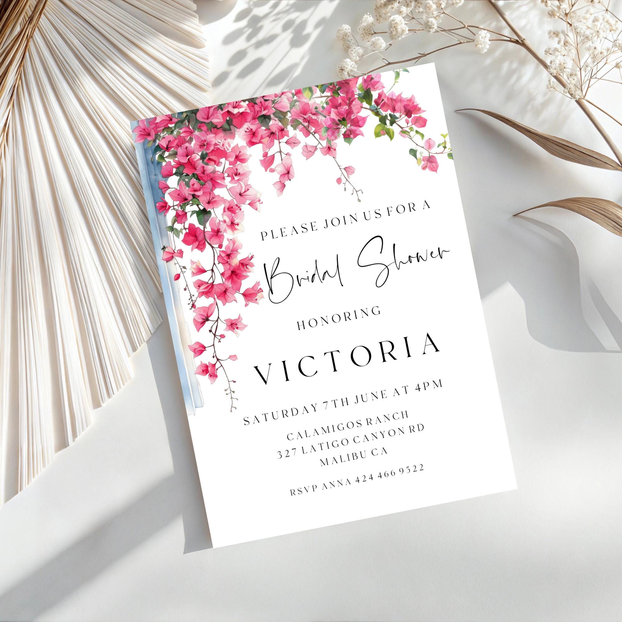 Bougainvillea Bridal Shower Invitation Template. An Instant download digital file for you to edit in your web browser with Templett straight after your purchase. Once personalized you are ready to print.