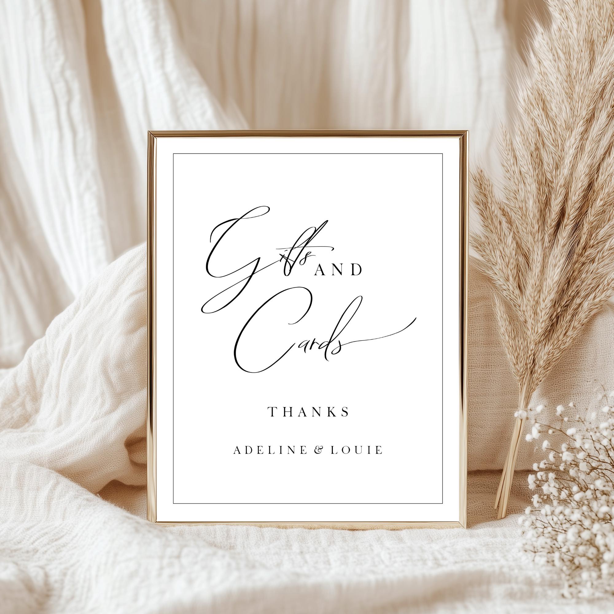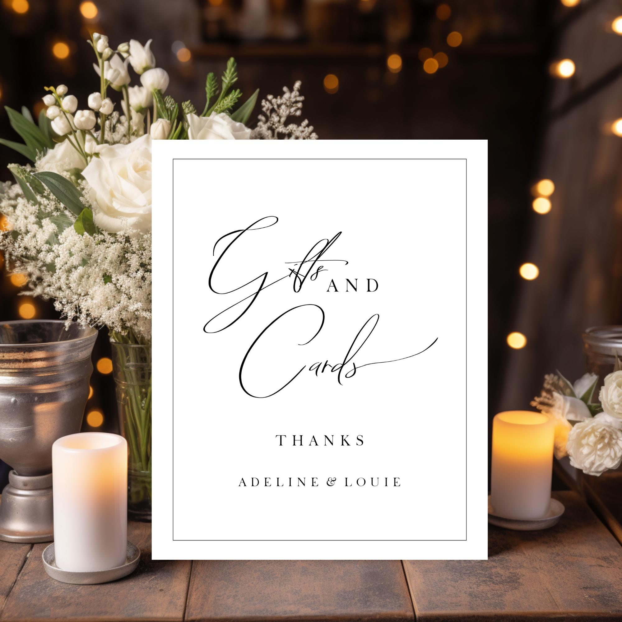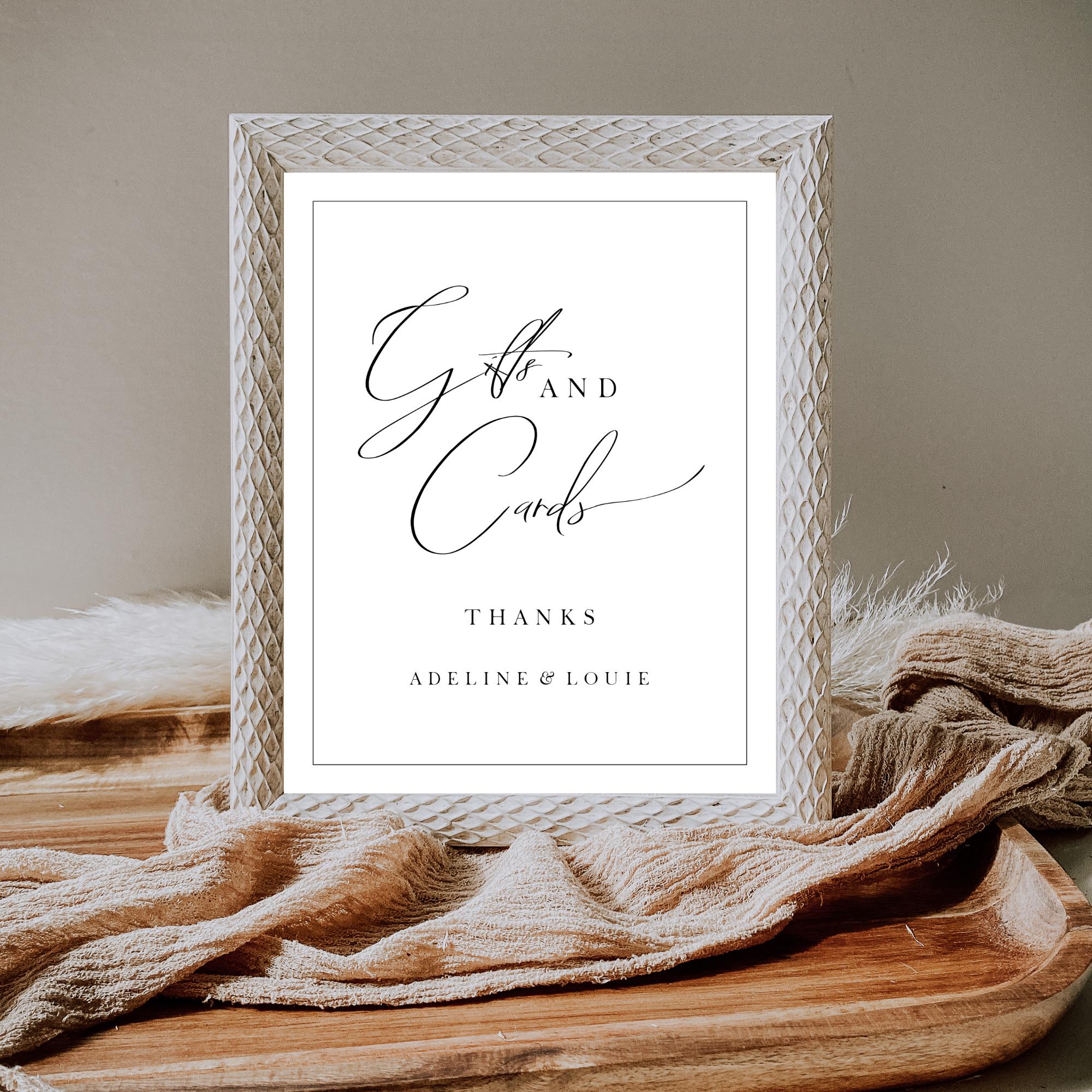 Modern Gifts and Cards Wedding Sign Template. An Instant download digital file for you to edit in your web browser with Templett straight after your purchase. Once personalized you are ready to print.