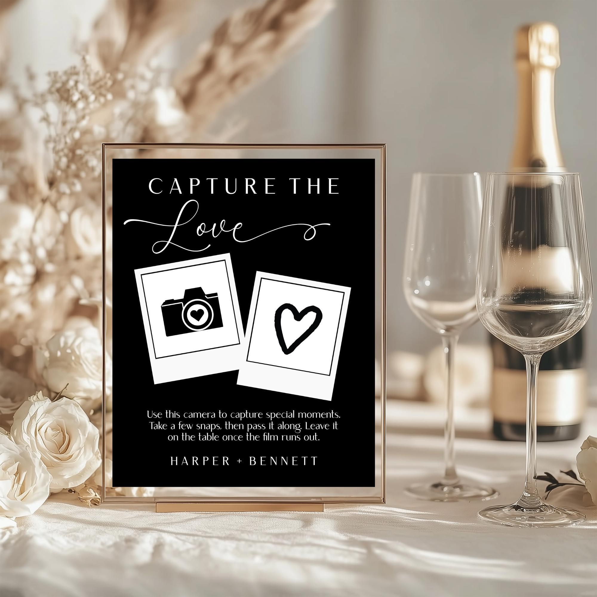 Modern Black Wedding Photo Sign Template. An Instant download digital file for you to edit in your web browser with Templett straight after your purchase. Once personalized you are ready to print.