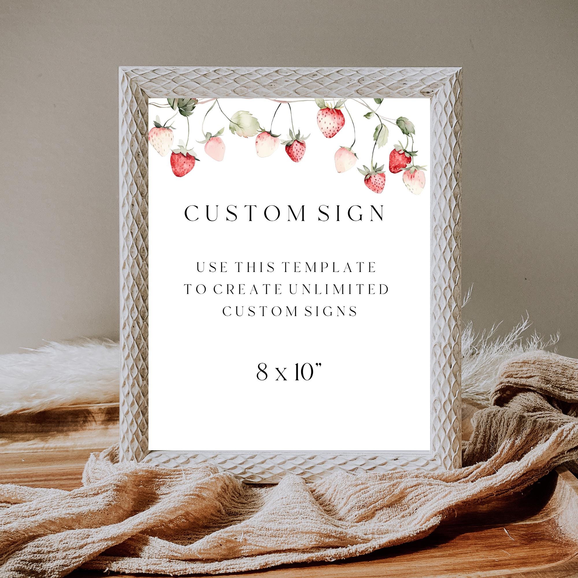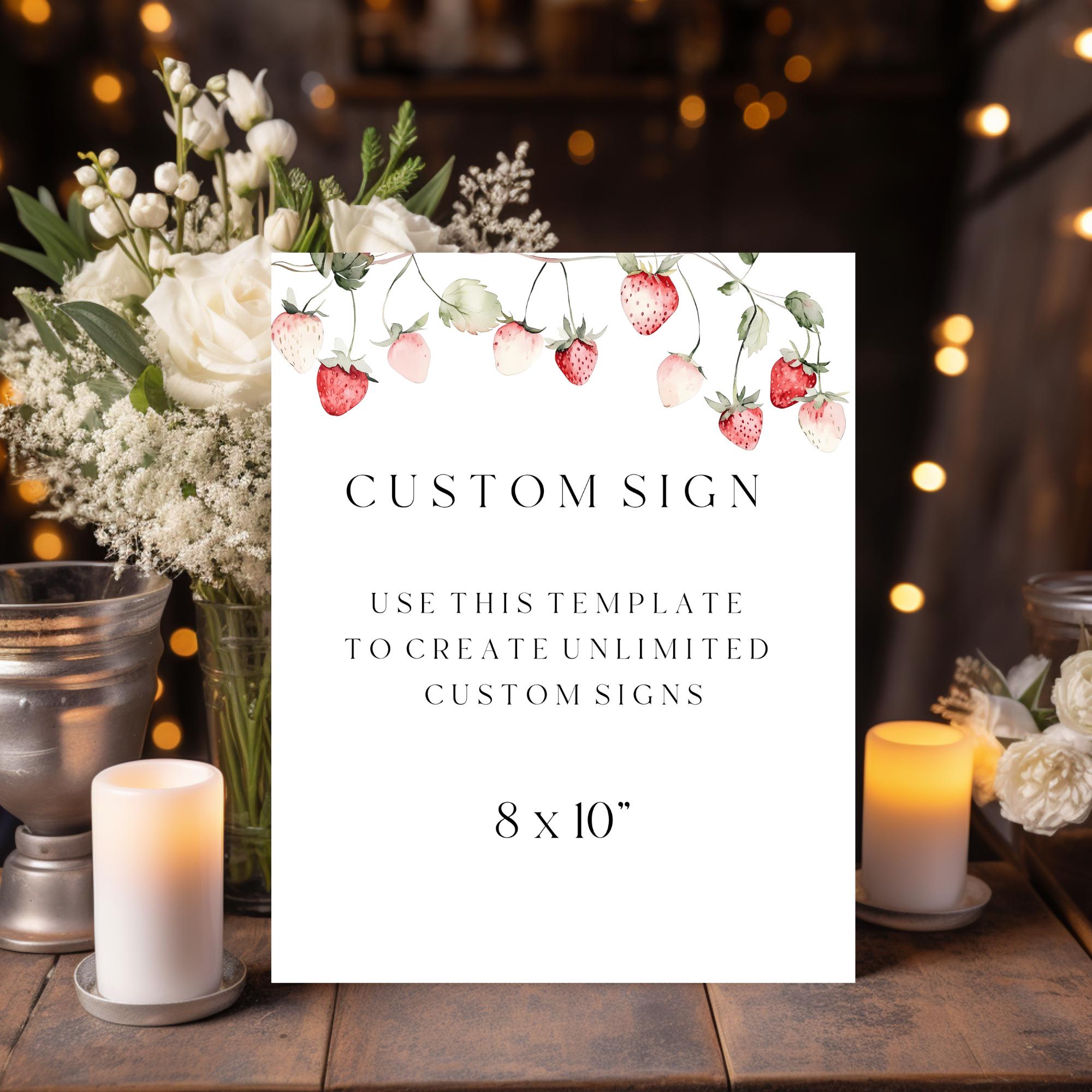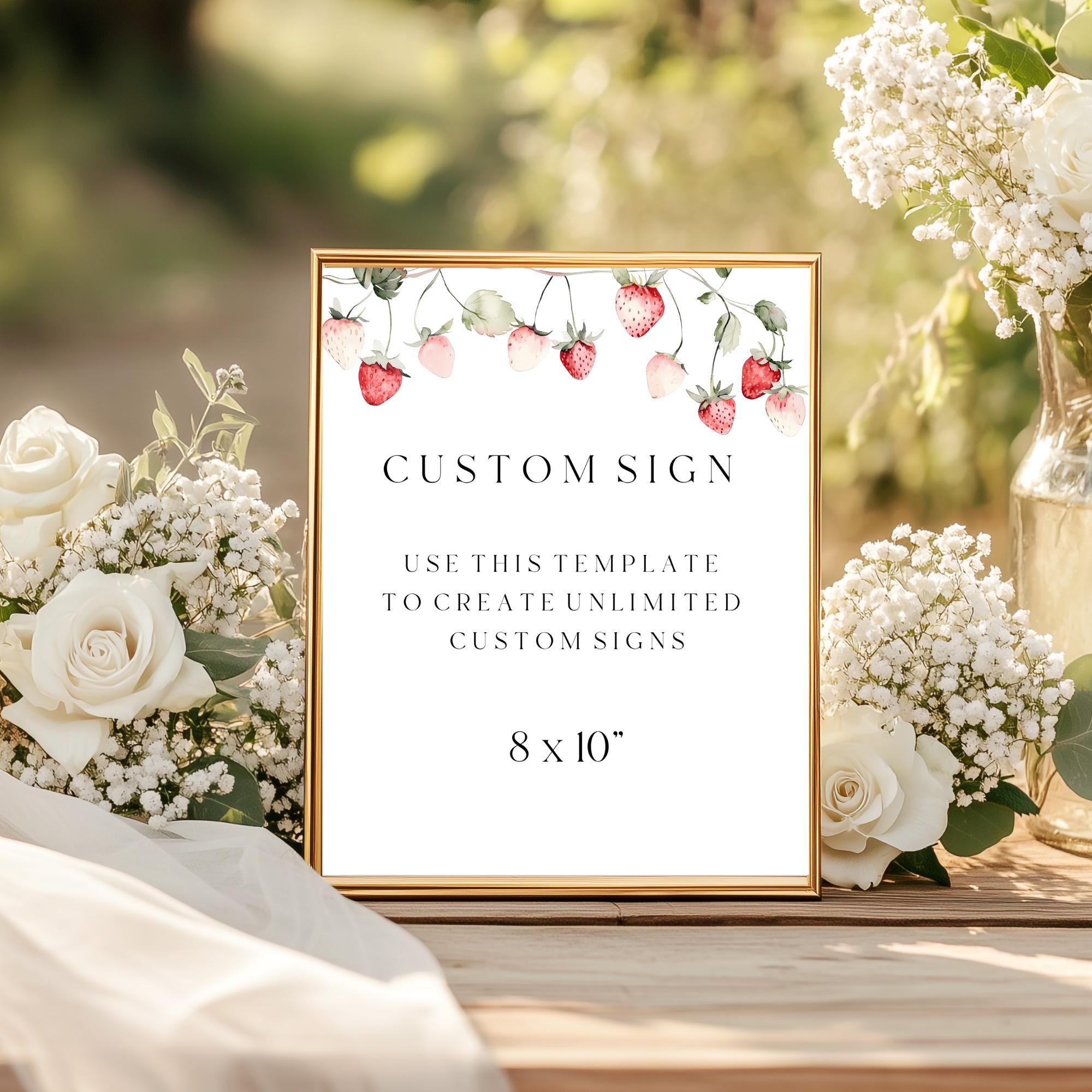 Wild Strawberry Custom Sign Template. An Instant download digital file for you to edit in your web browser with Templett straight after your purchase. Once personalized you are ready to print.