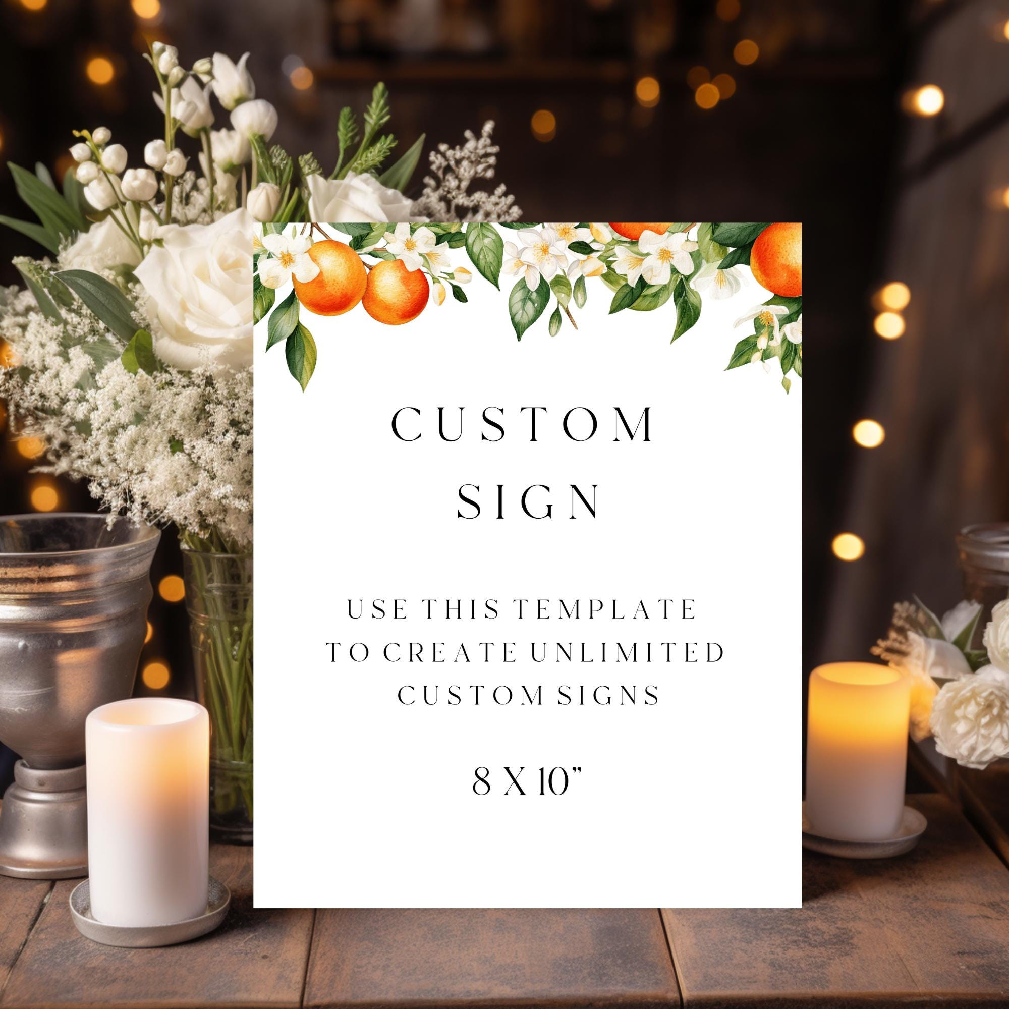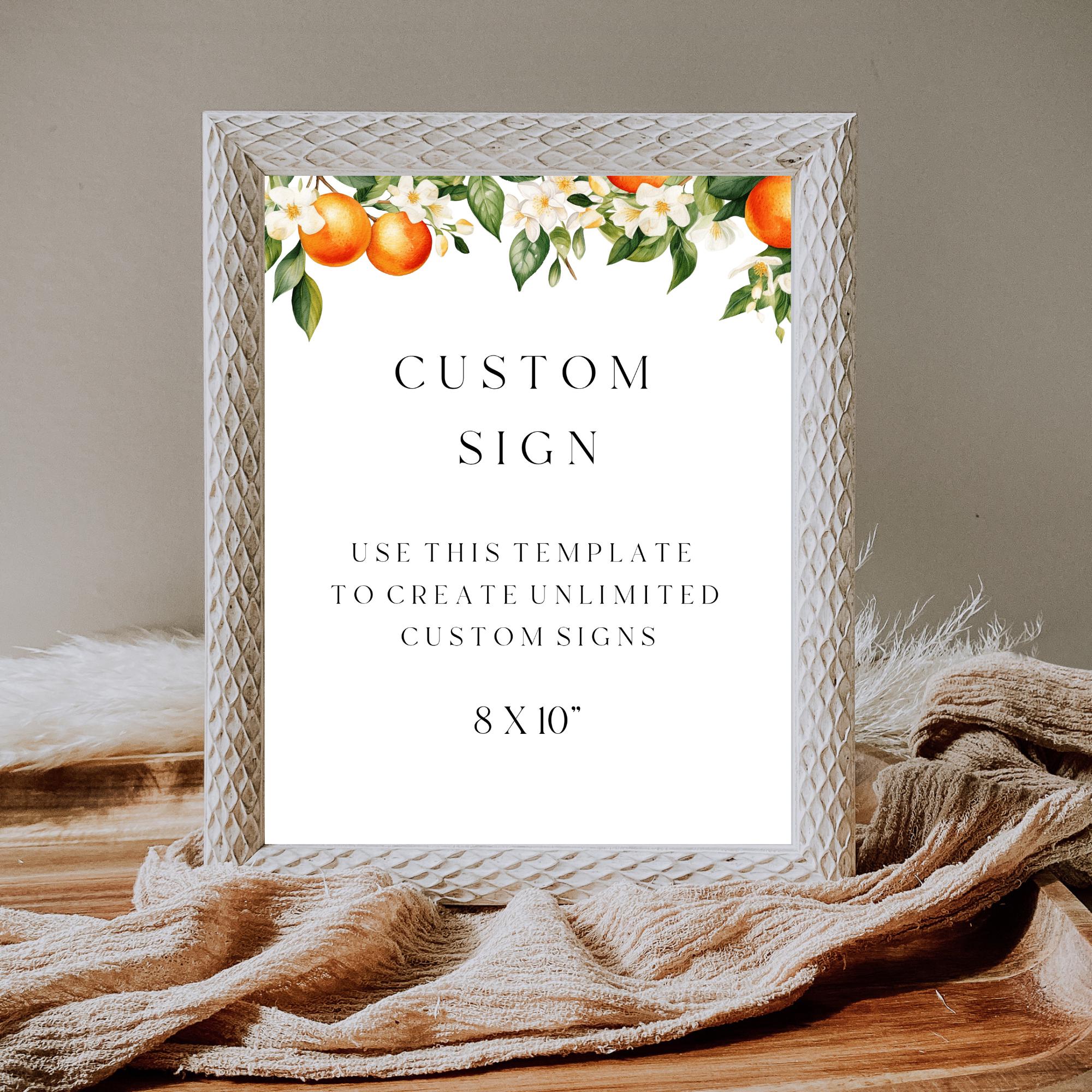 Sweet Oranges custom Sign Template. An Instant download digital file for you to edit in your web browser with Templett straight after your purchase. Once personalized you are ready to print.