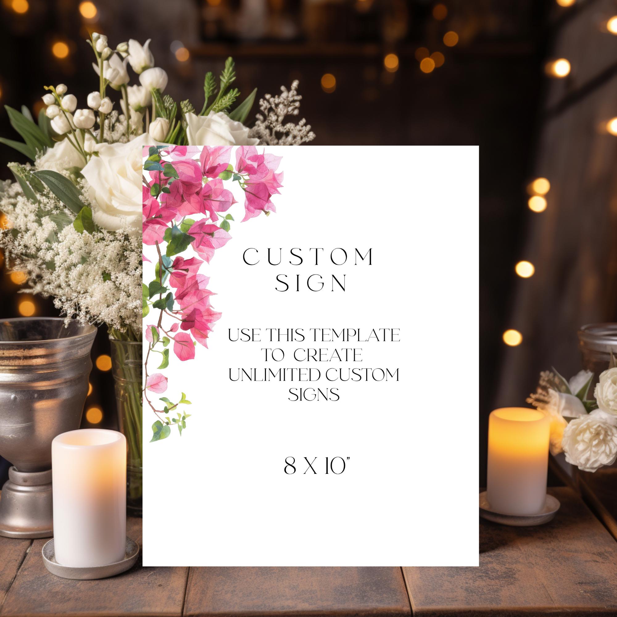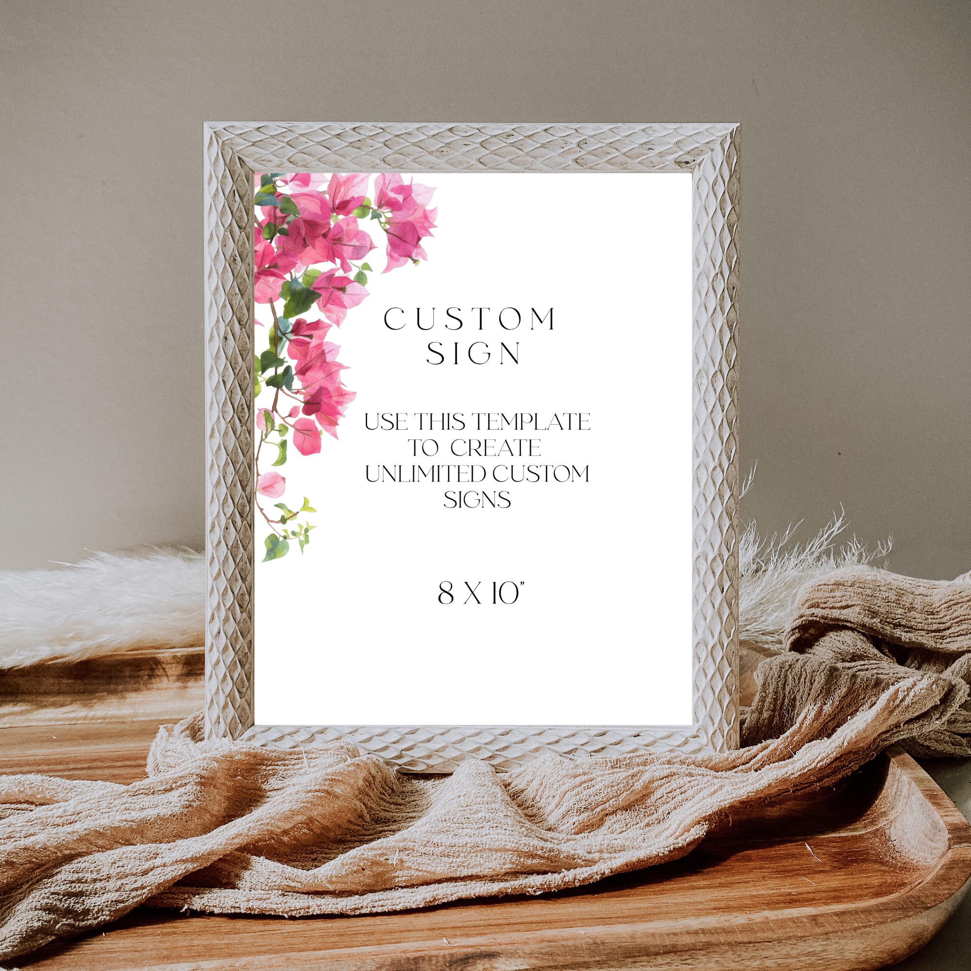 Bougainvillea Custom Sign Template. An Instant download digital file for you to edit in your web browser with Templett straight after your purchase. Once personalized you are ready to print.