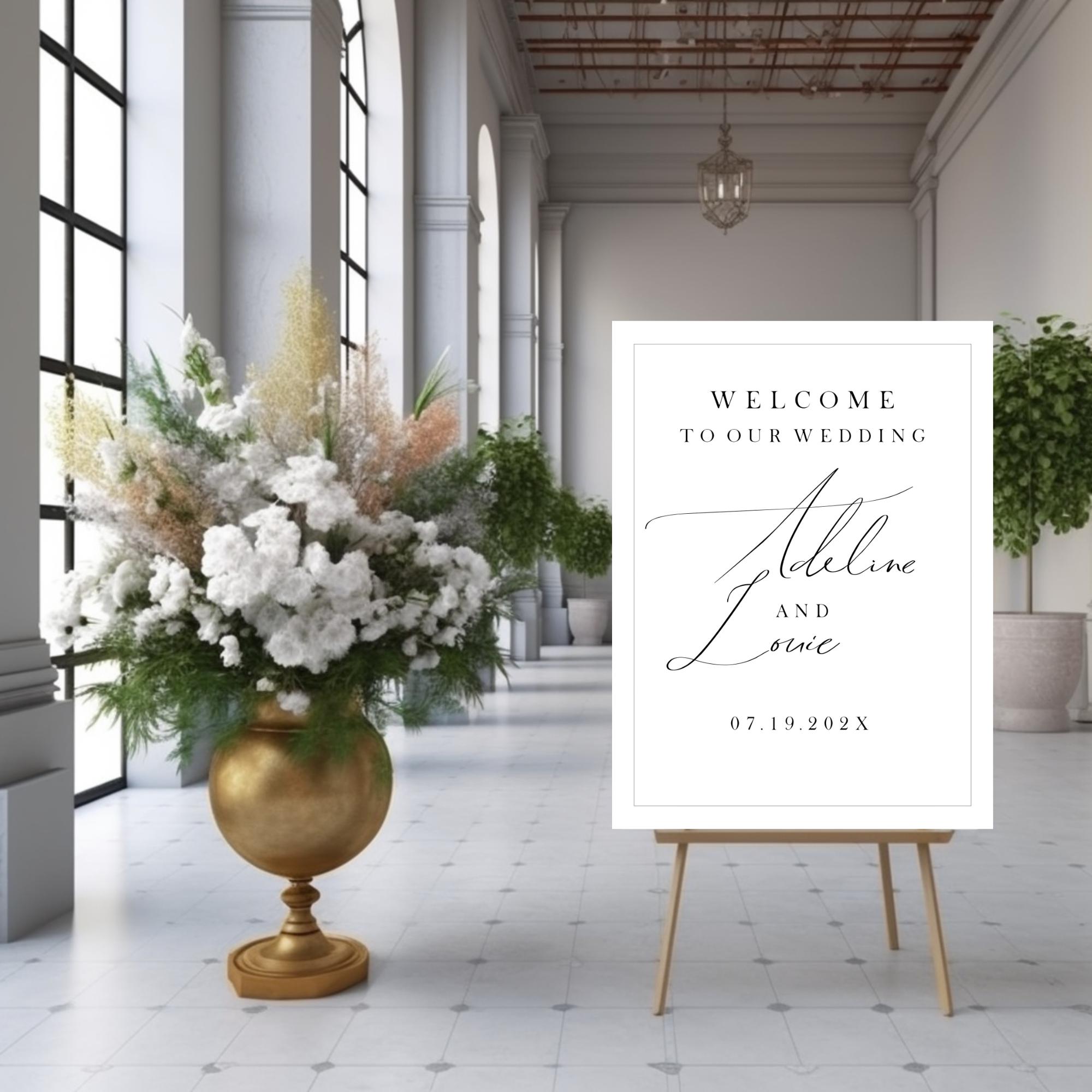Wedding Welcome Sign Template. An Instant download digital file for you to edit in your web browser with Templett straight after your purchase. Once personalized you are ready to print.