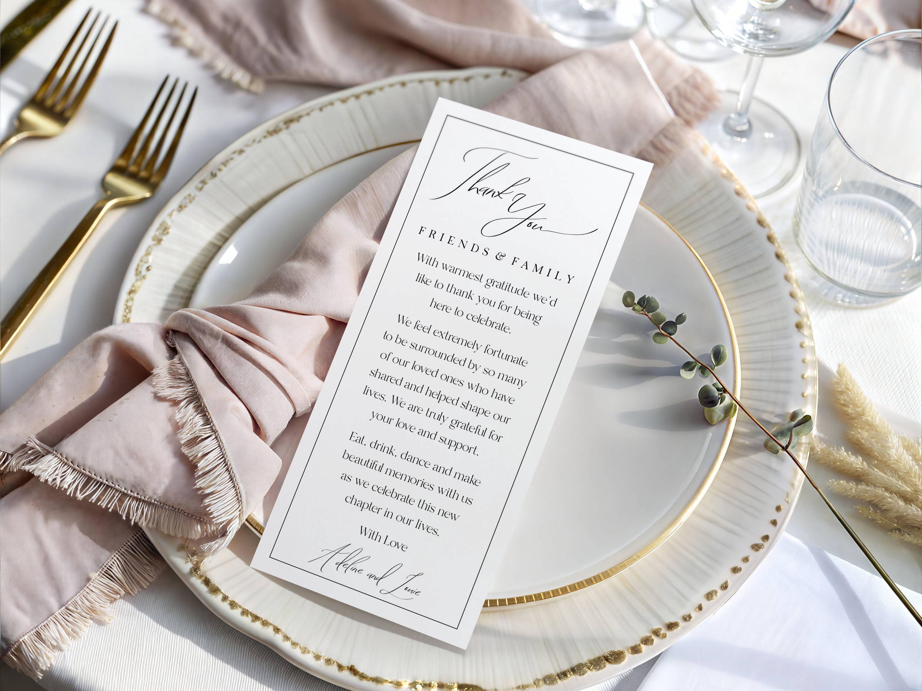 Modern Thank You Place Card Template. An Instant download digital file for you to edit in your web browser with Templett straight after your purchase. Once personalized you are ready to print.