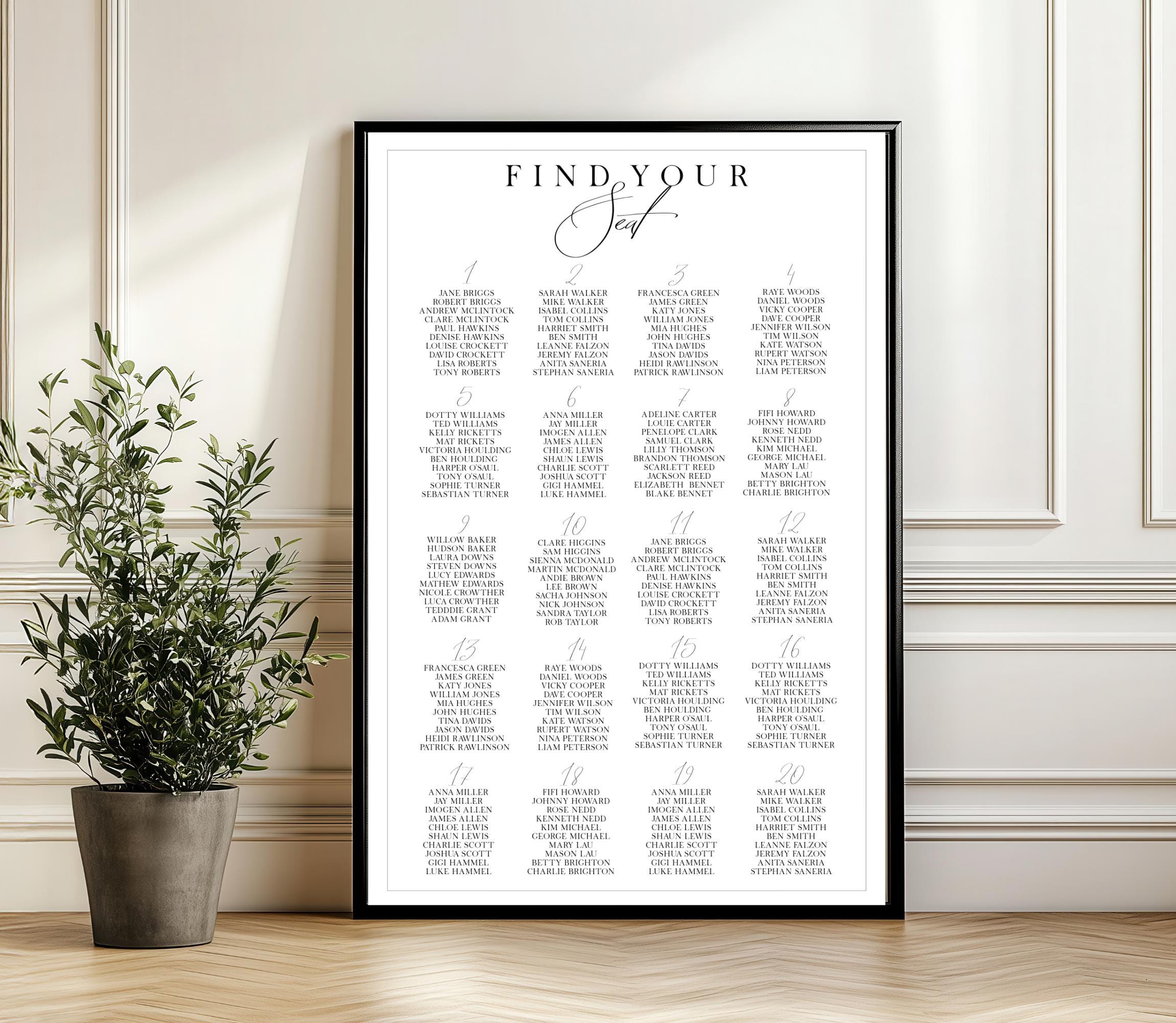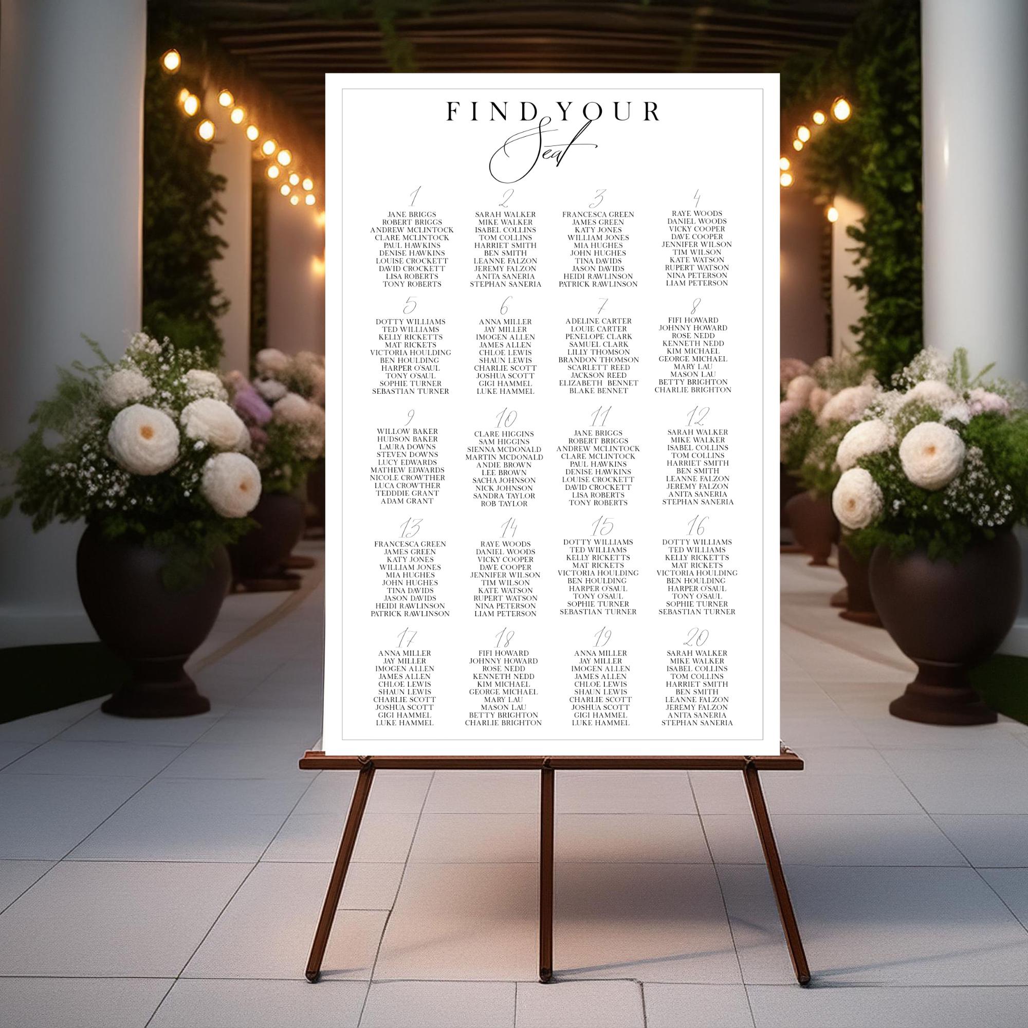 Modern Wedding Seating Chart Sign Template. An Instant download digital file for you to edit in your web browser with Templett straight after your purchase. Once personalized you are ready to print.