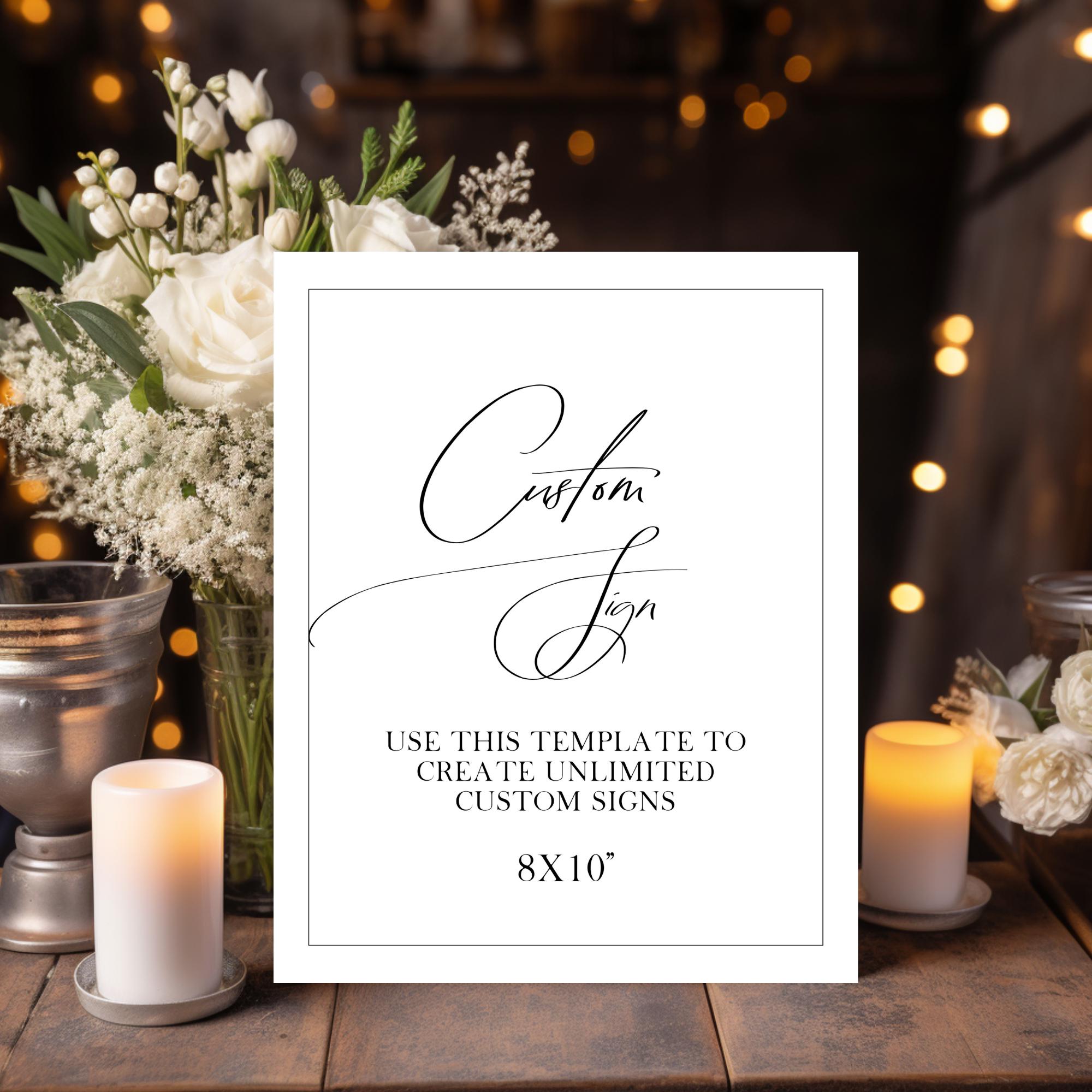 Modern Wedding custom Sign Template. An Instant download digital file for you to edit in your web browser with Templett straight after your purchase. Once personalized you are ready to print.