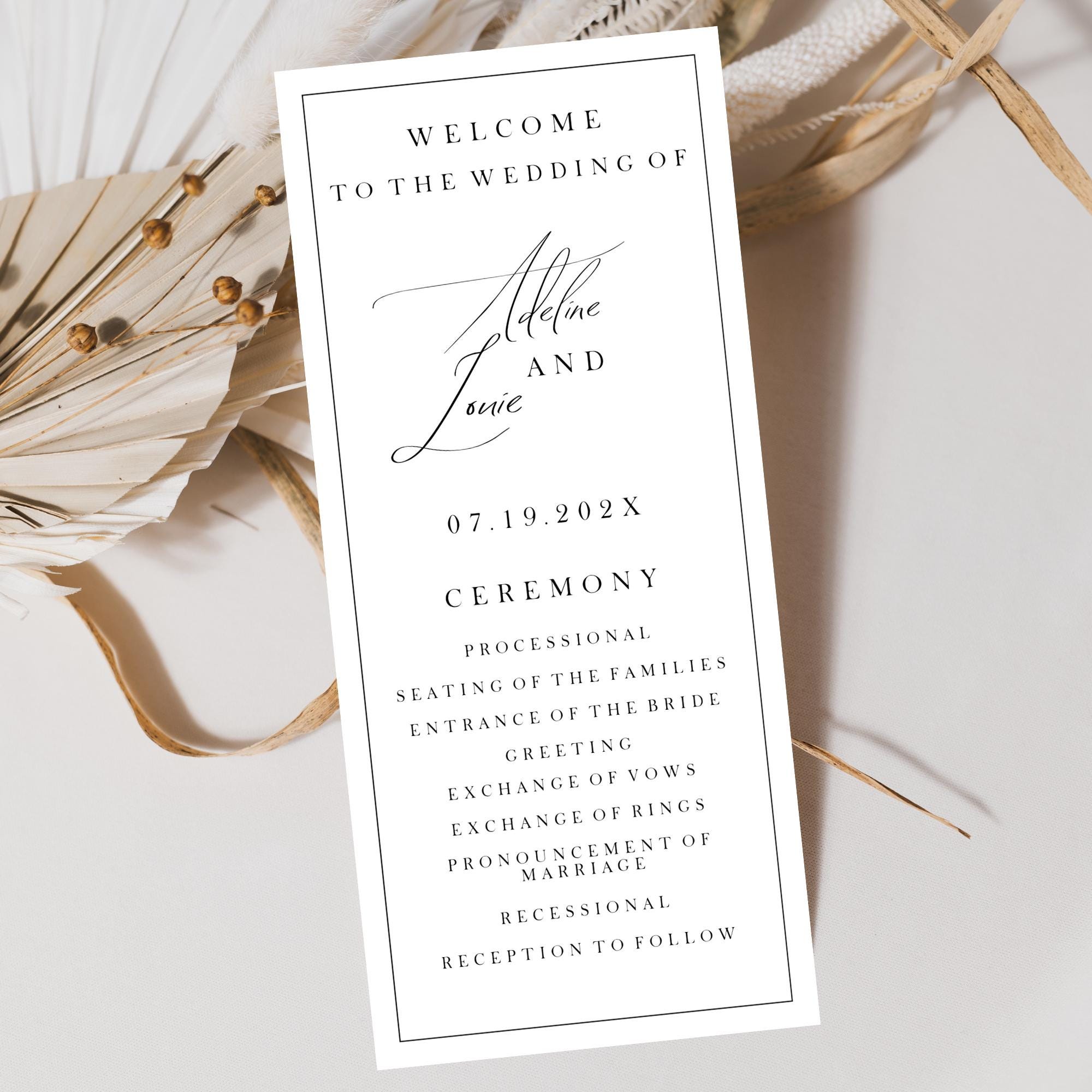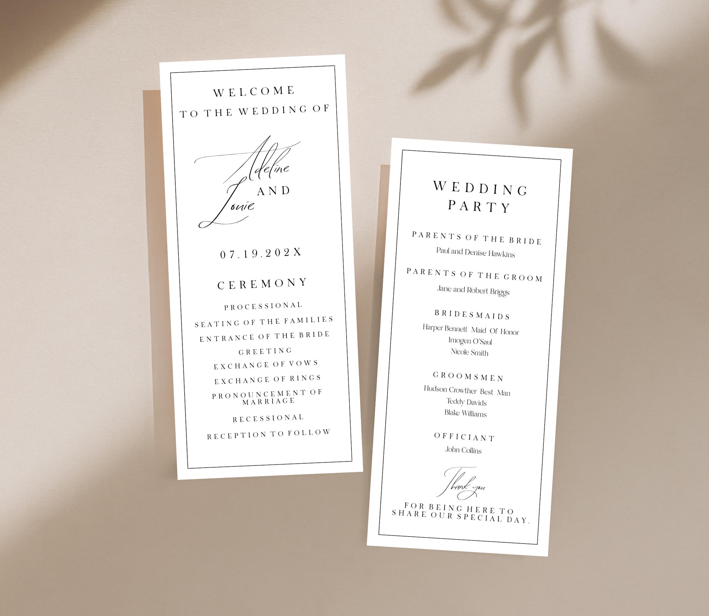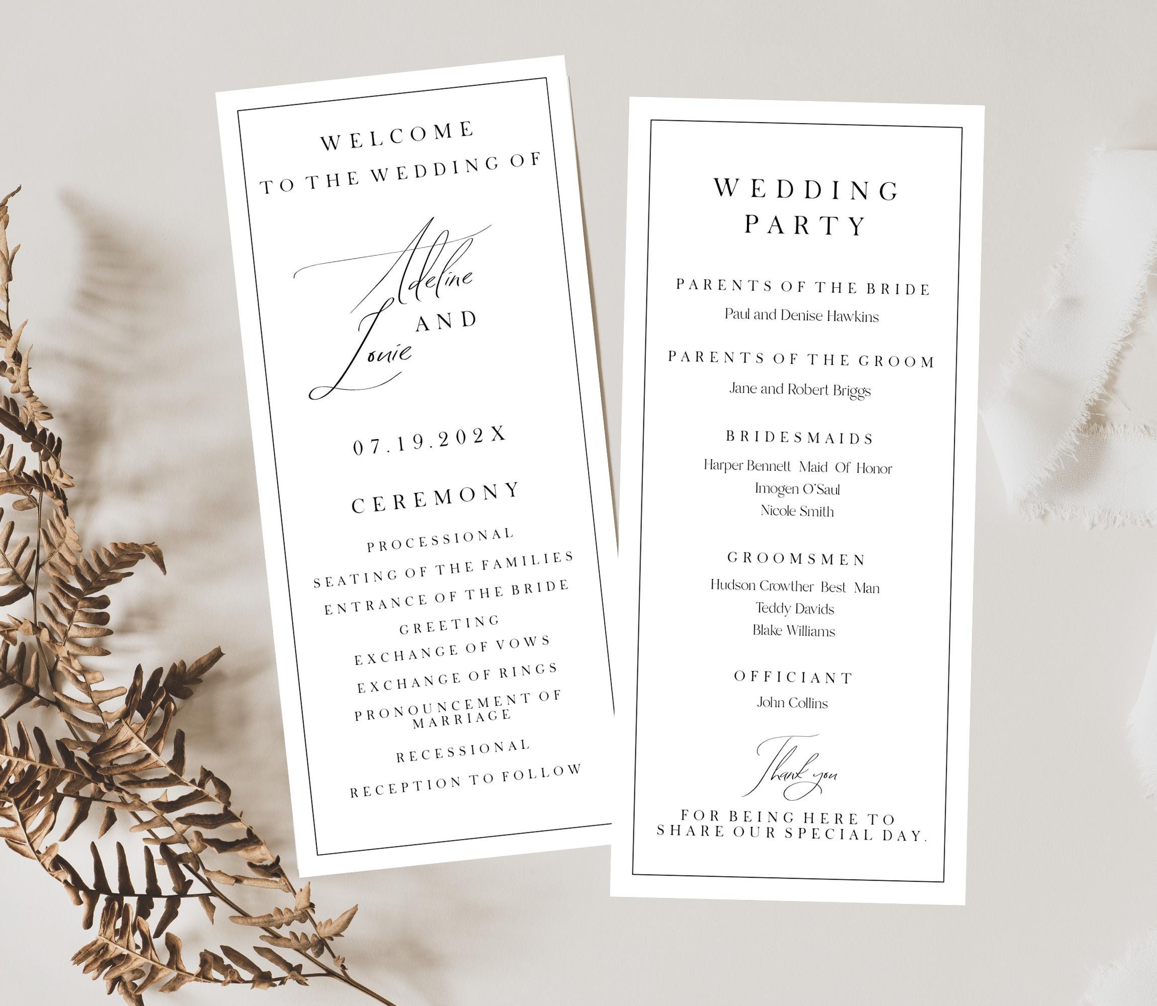 Modern Wedding Program Template. An Instant download digital file for you to edit in your web browser with Templett straight after your purchase. Once personalized you are ready to print.