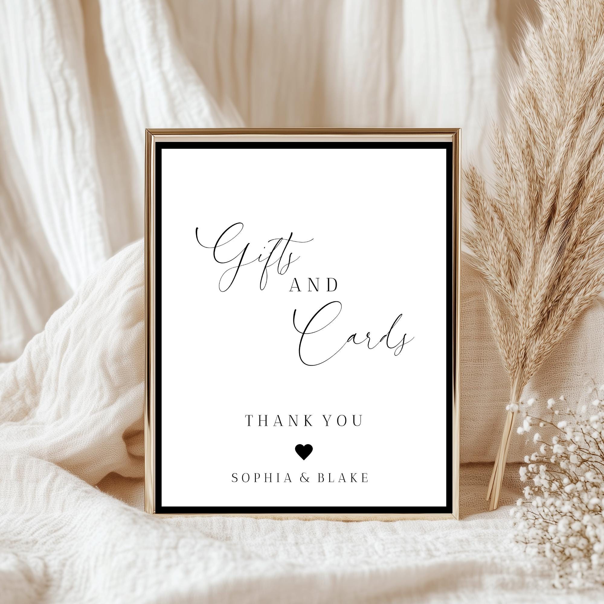 Modern Gifts and Cards Wedding Sign Template. An Instant download digital file for you to edit in your web browser with Templett straight after your purchase. Once personalized you are ready to print.