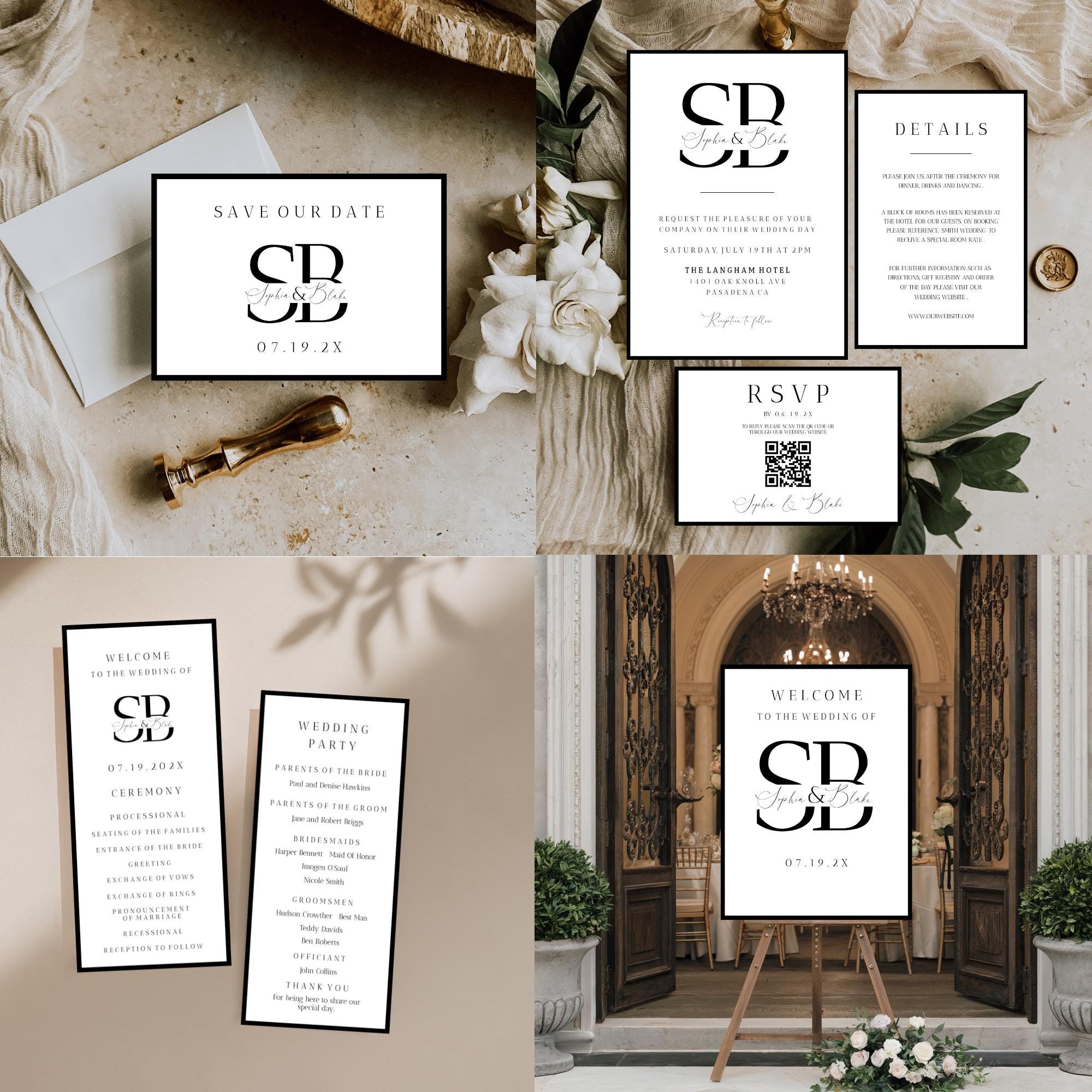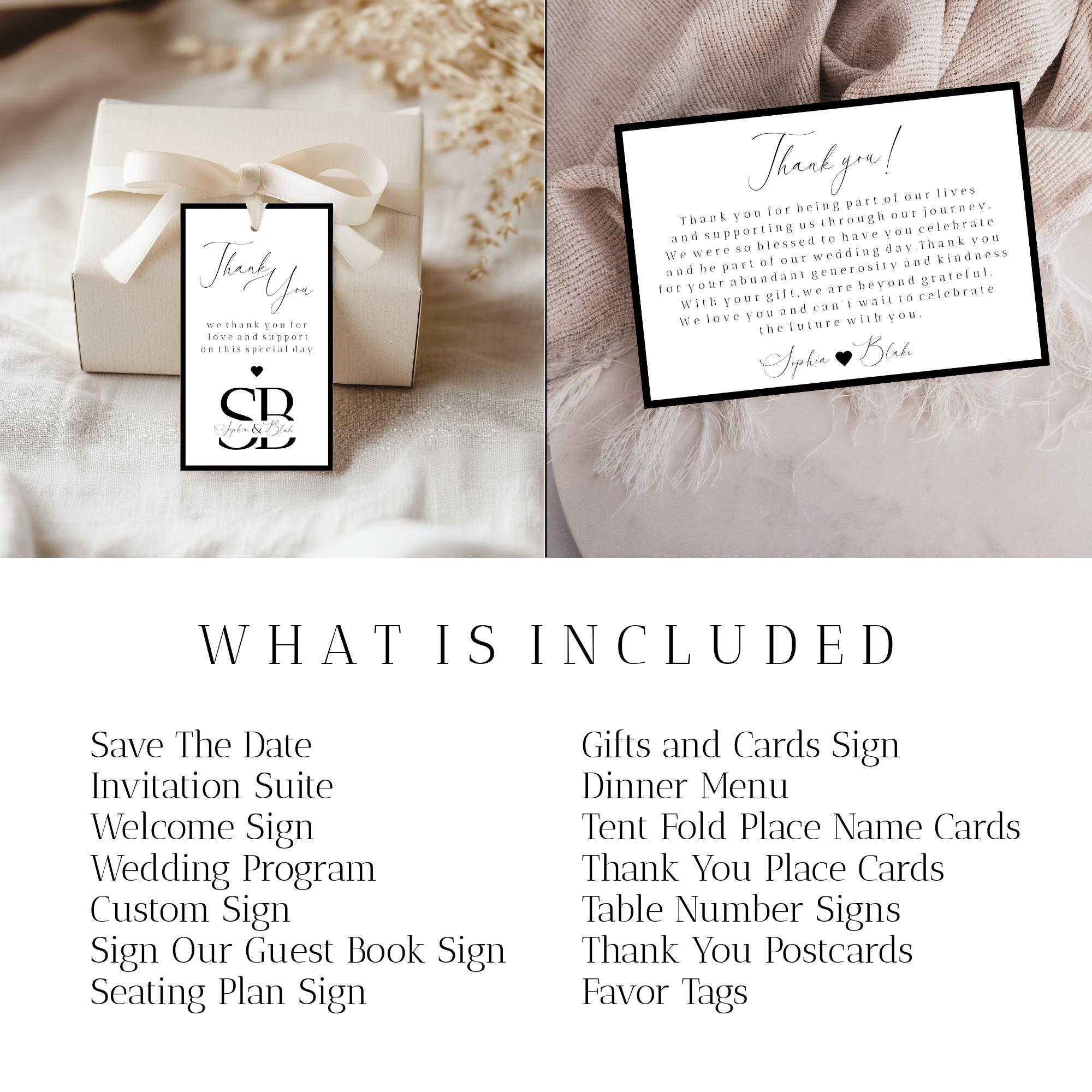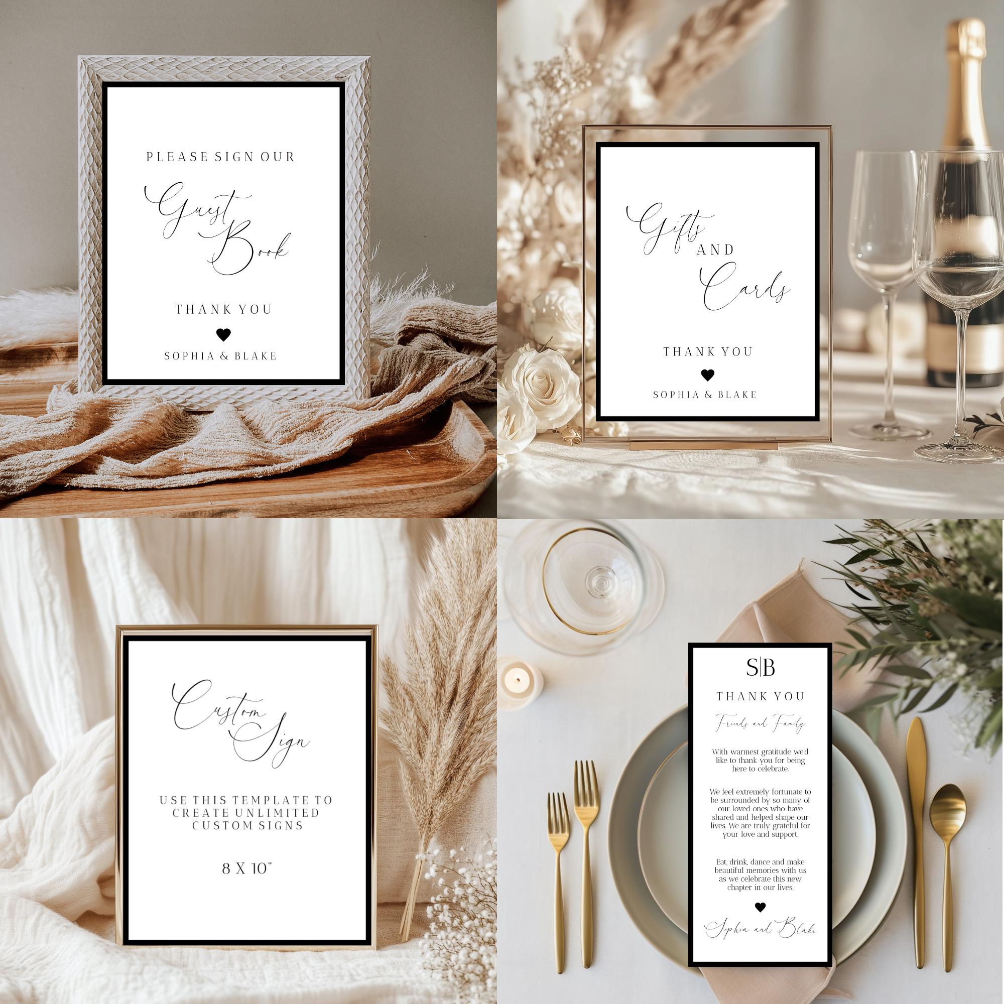 Modern Wedding Bundle Template. An Instant download digital file for you to edit in your web browser with Templett straight after your purchase. Once personalized you are ready to print.