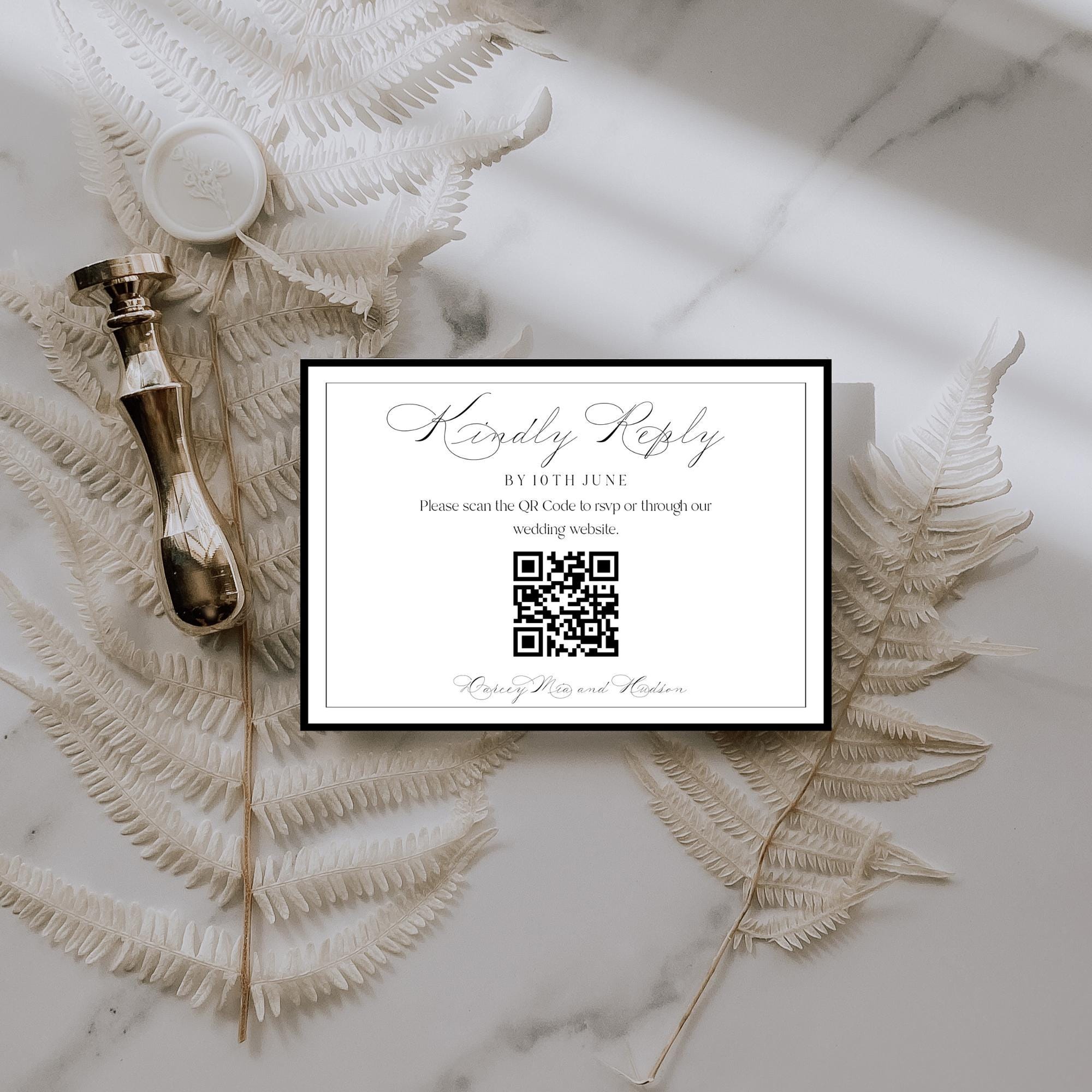 You will need to replace the QR Code by creating your own and uploading the new one that links to your wedding website. There are many websites that you can create a free custom QR code. If you don't want to use a QR Code you can easily delete this from the invitation.