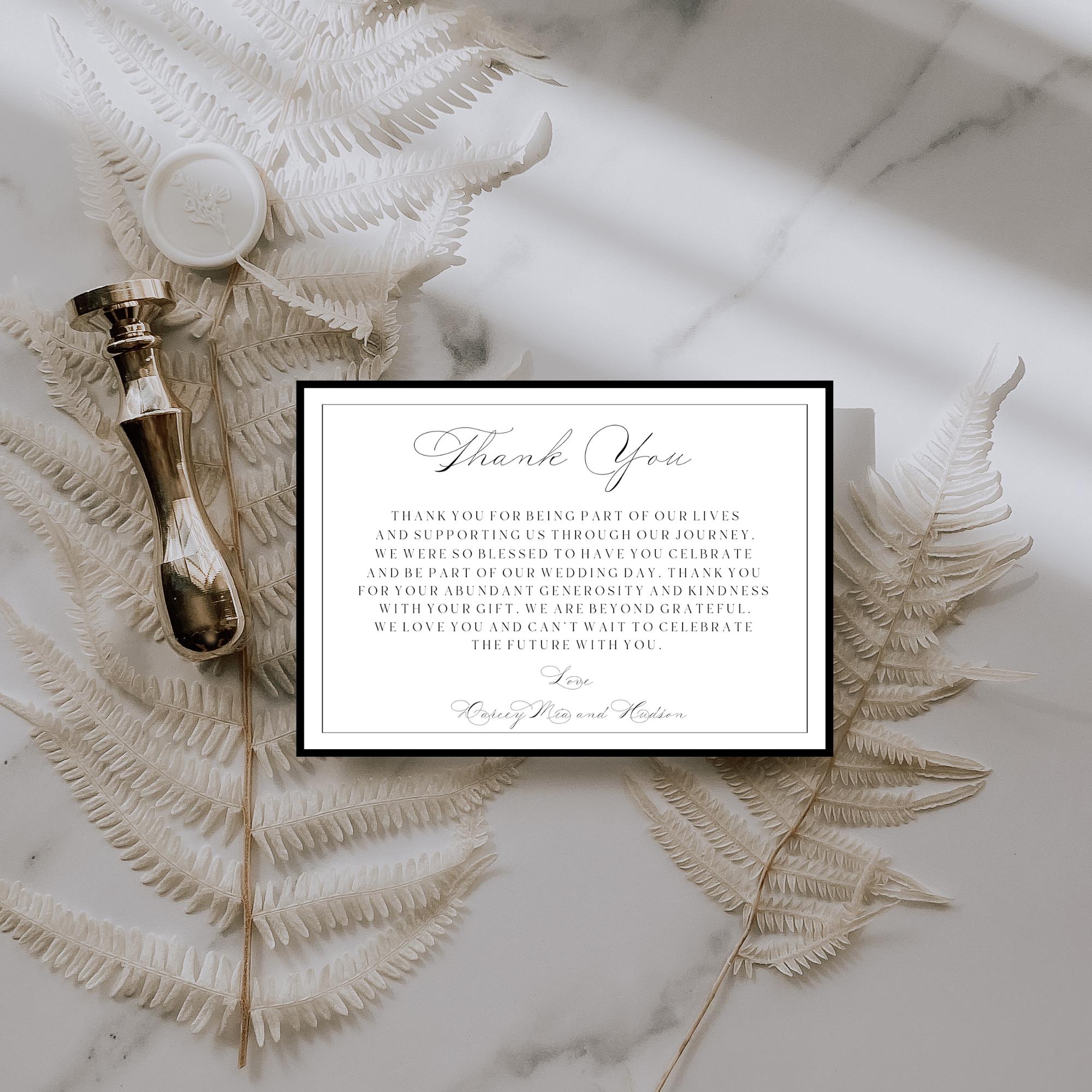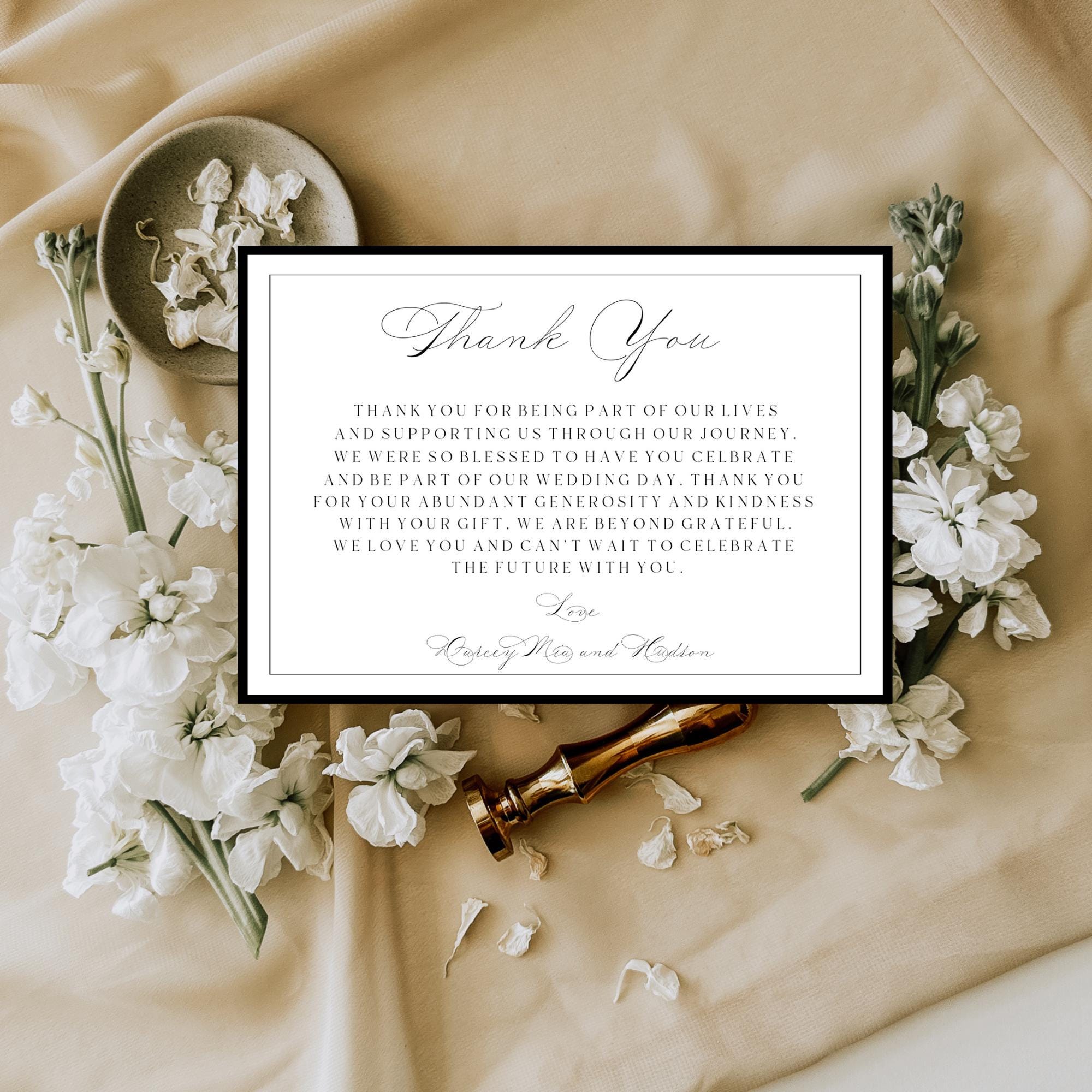 Elegant Script Wedding Thank You Card Template. An Instant download digital file for you to edit in your web browser with Templett straight after your purchase. Once personalized you are ready to print.