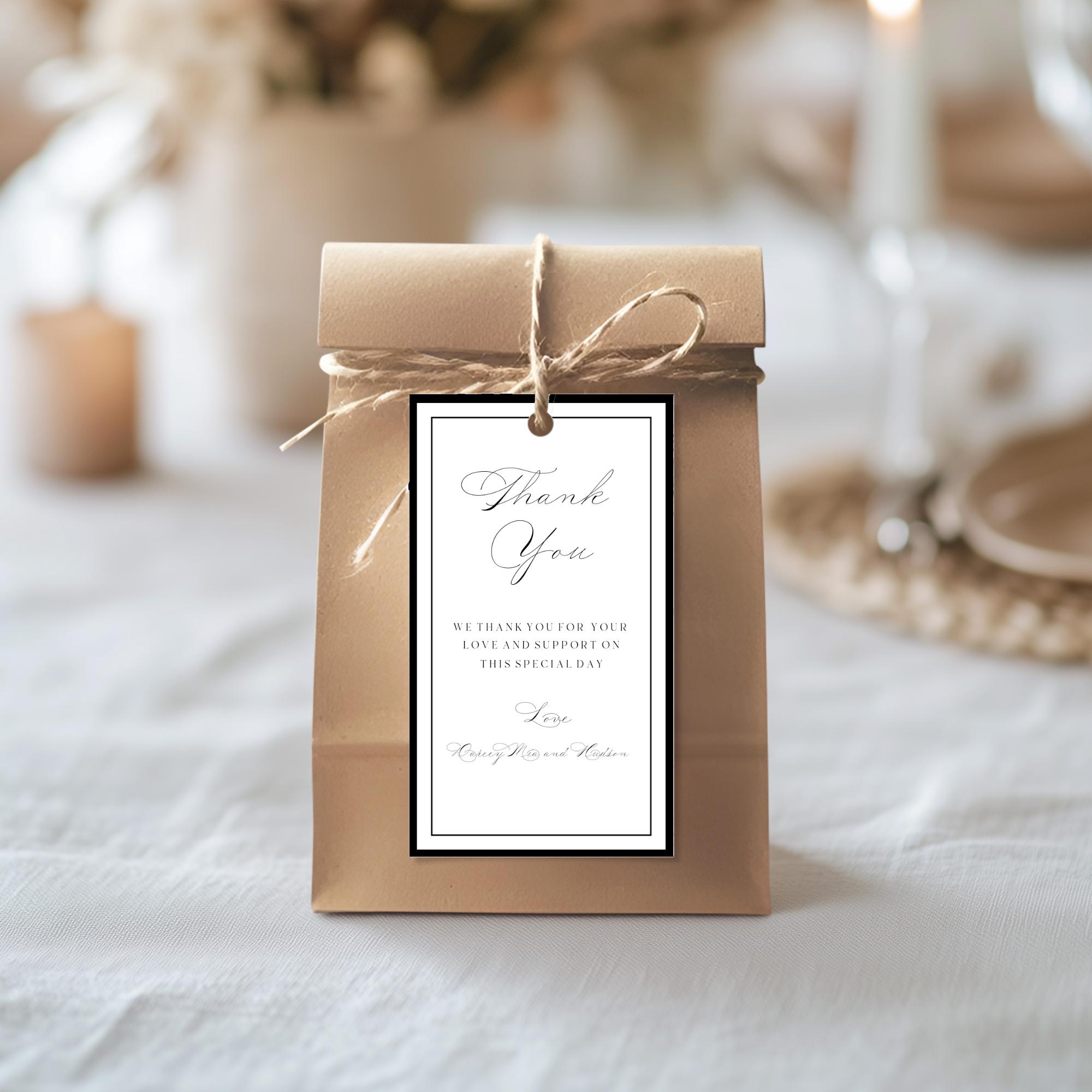 Modern Wedding Favor Tag Template. An Instant download digital file for you to edit in your web browser with Templett straight after your purchase. Once personalized you are ready to print.