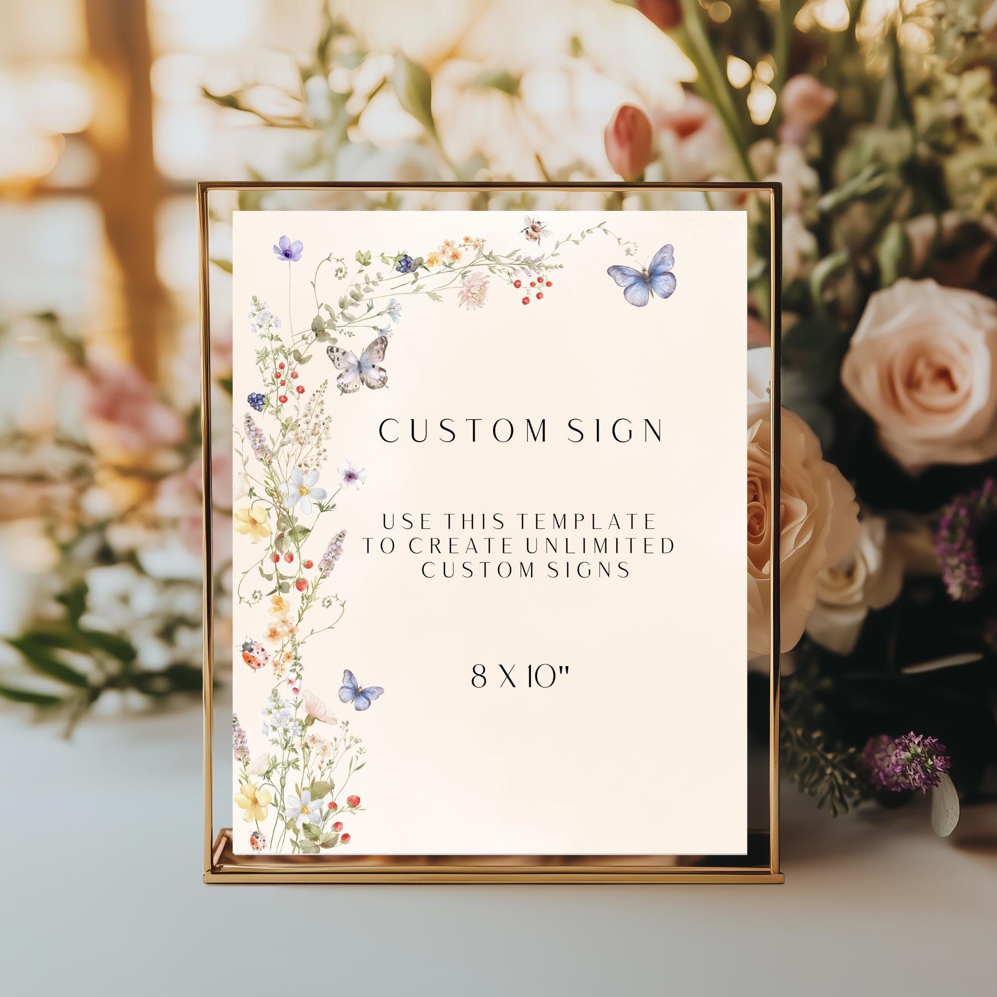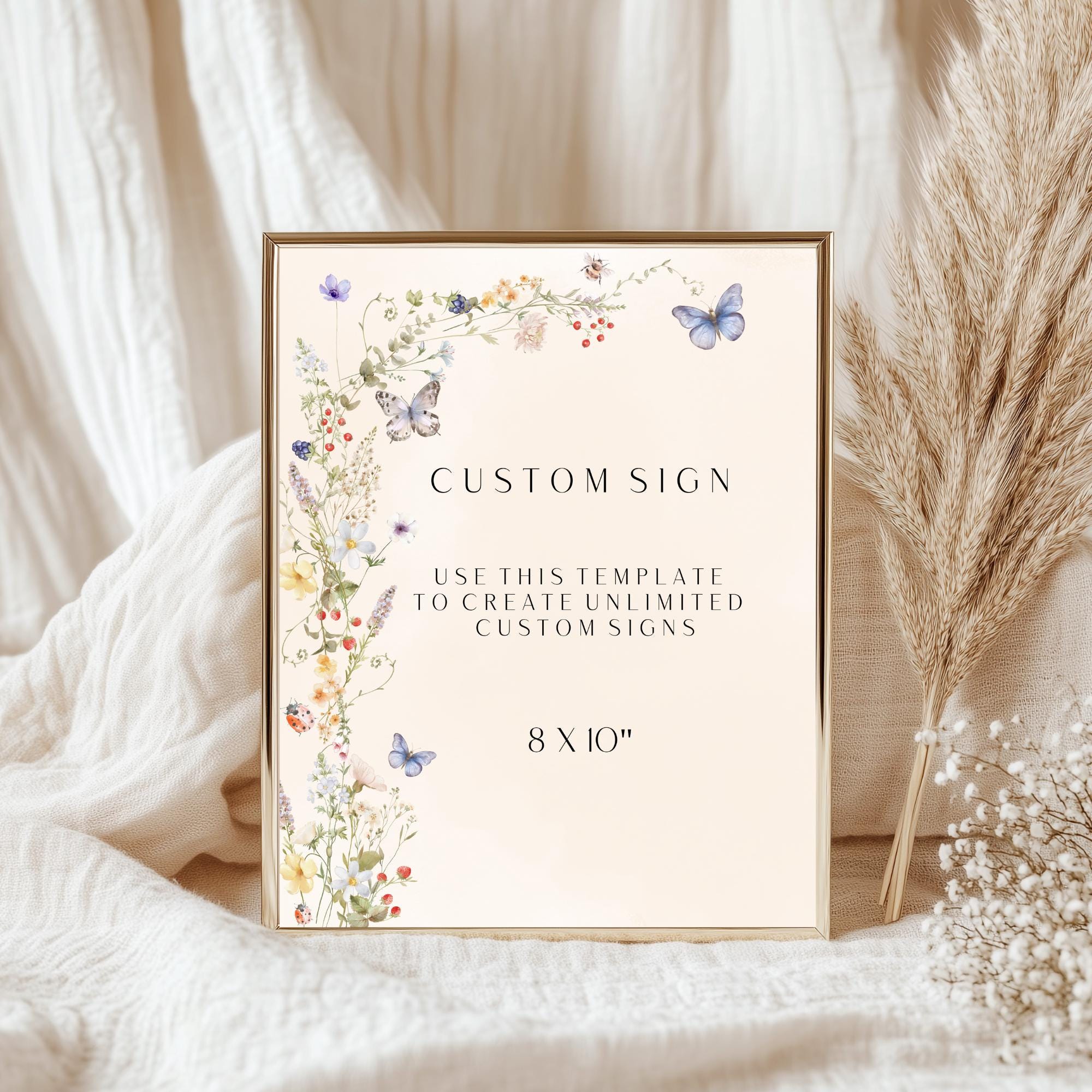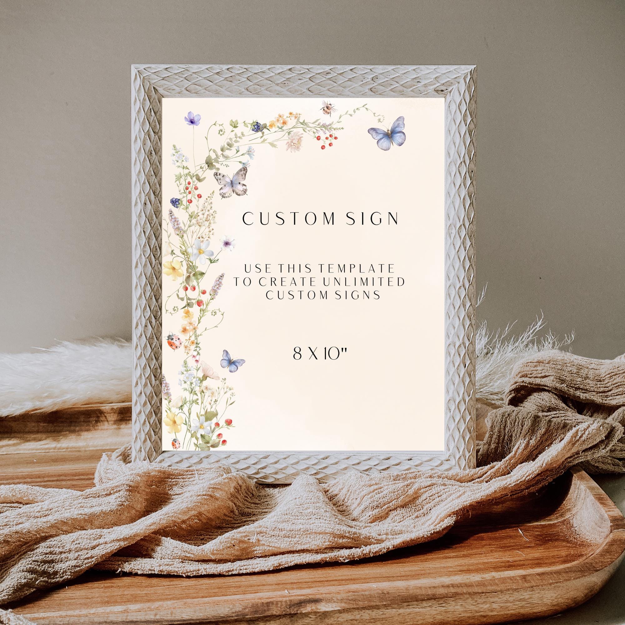 Dainty Wildflower Custom Sign Template. An Instant download digital file for you to edit in your web browser with Templett straight after your purchase. Once personalized you are ready to print.