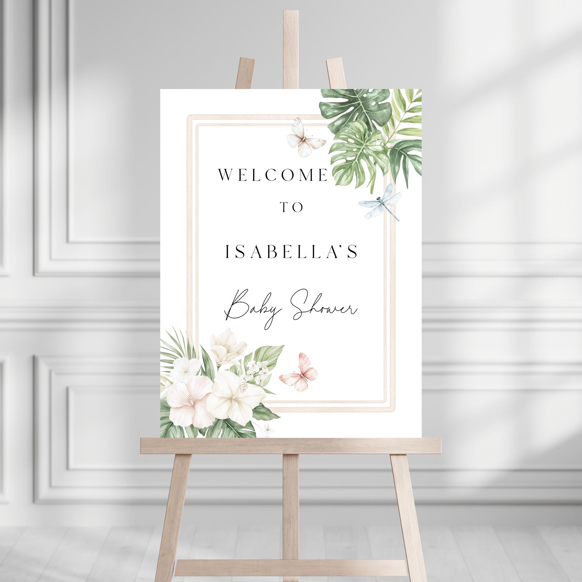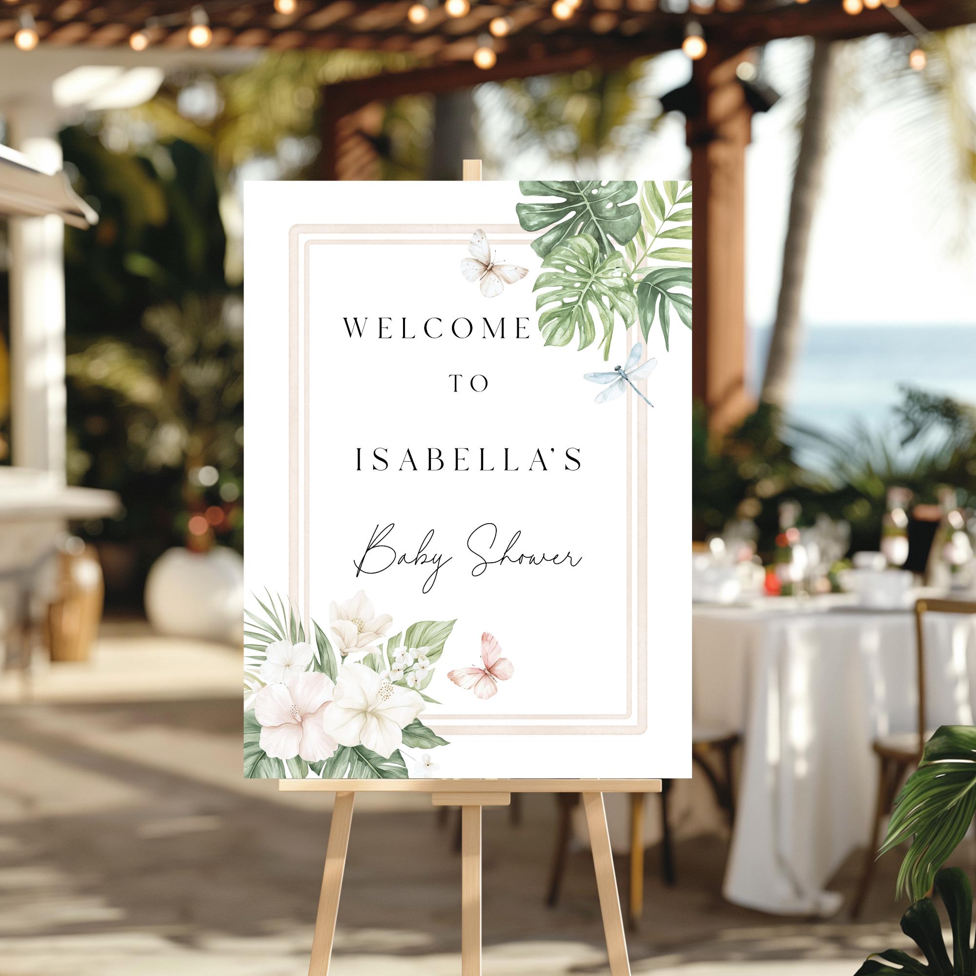 Tropical Baby Shower Welcome Sign Template. An Instant download digital file for you to edit in your web browser with Templett straight after your purchase. Once personalized you are ready to print.