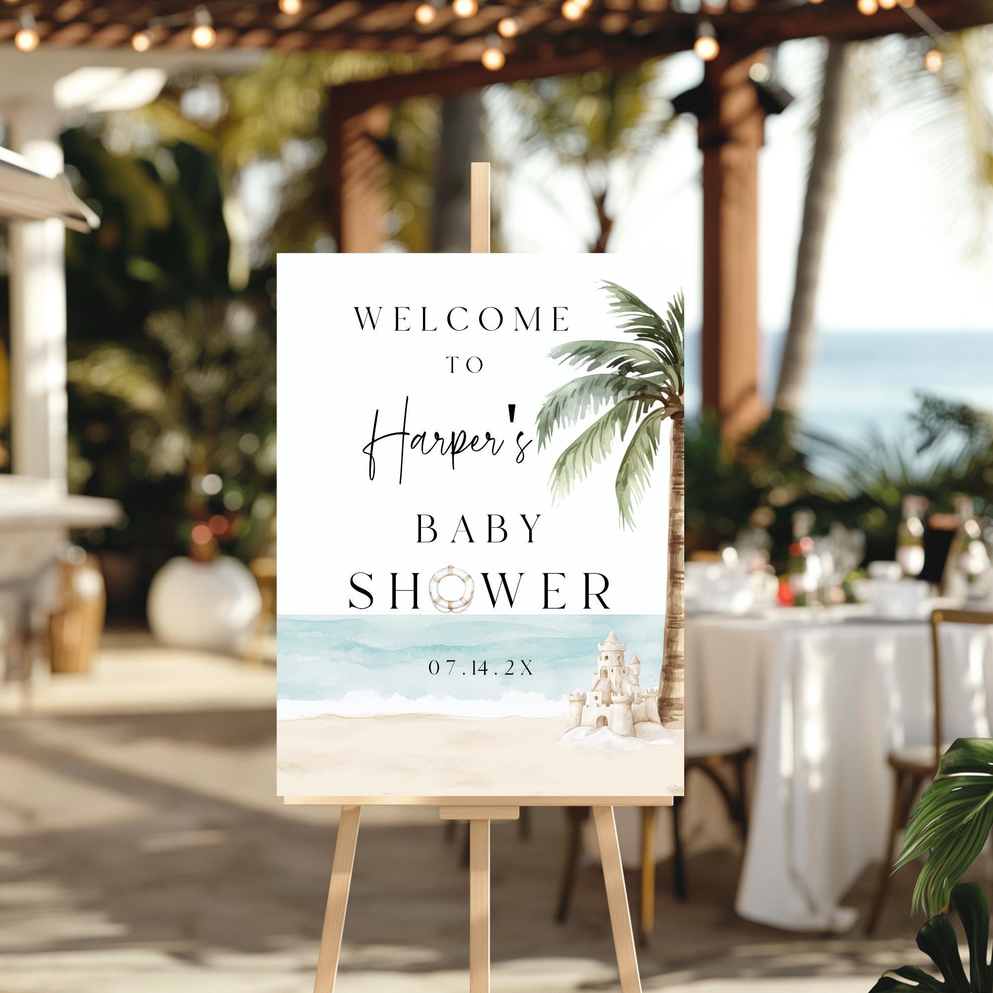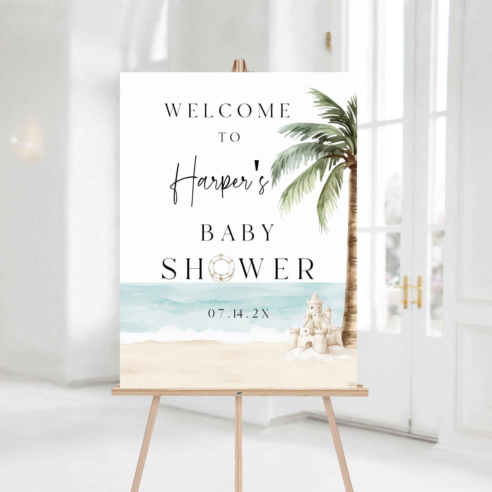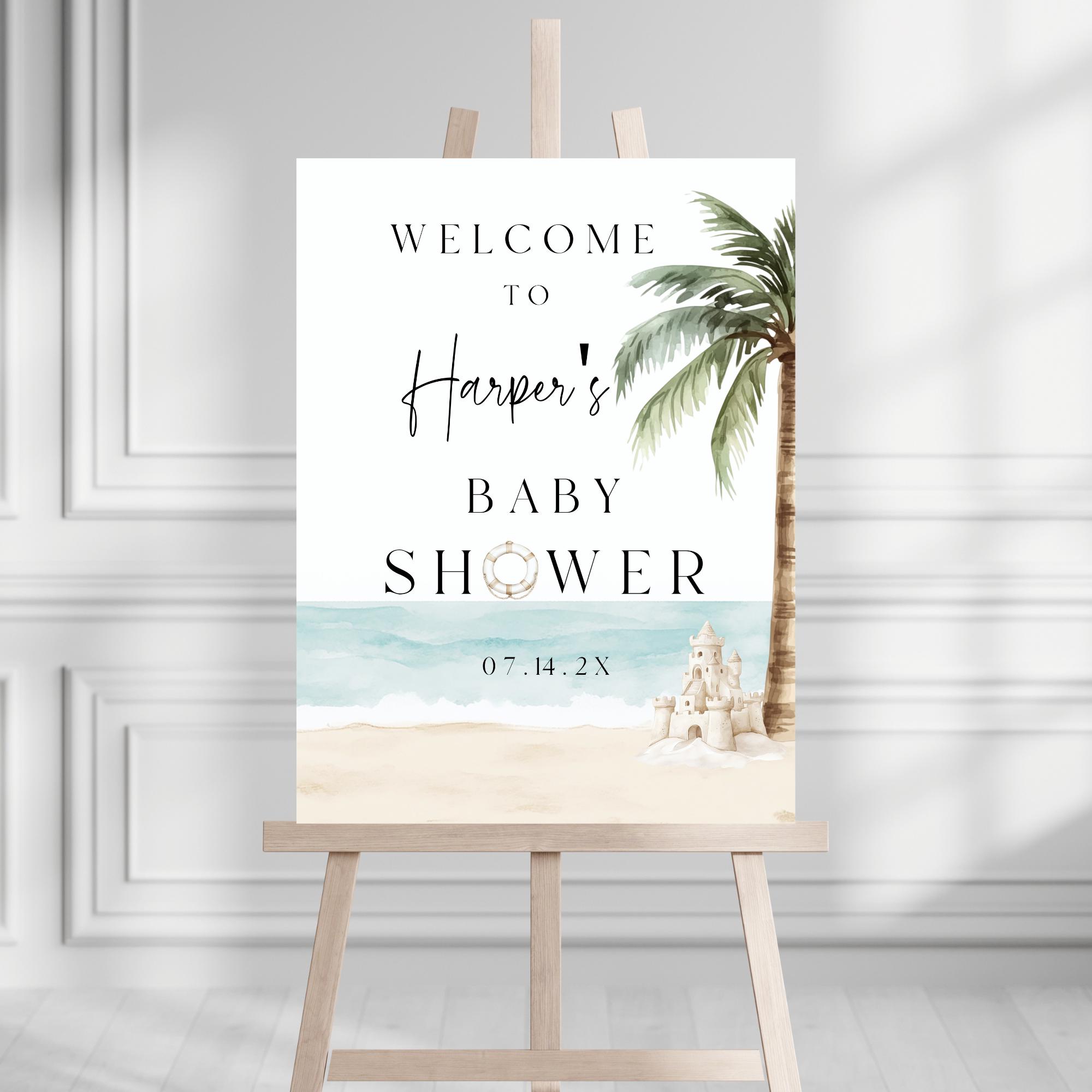 Coastal Baby Shower Welcome Sign Template. An Instant download digital file for you to edit in your web browser with Templett straight after your purchase. Once personalized you are ready to print.