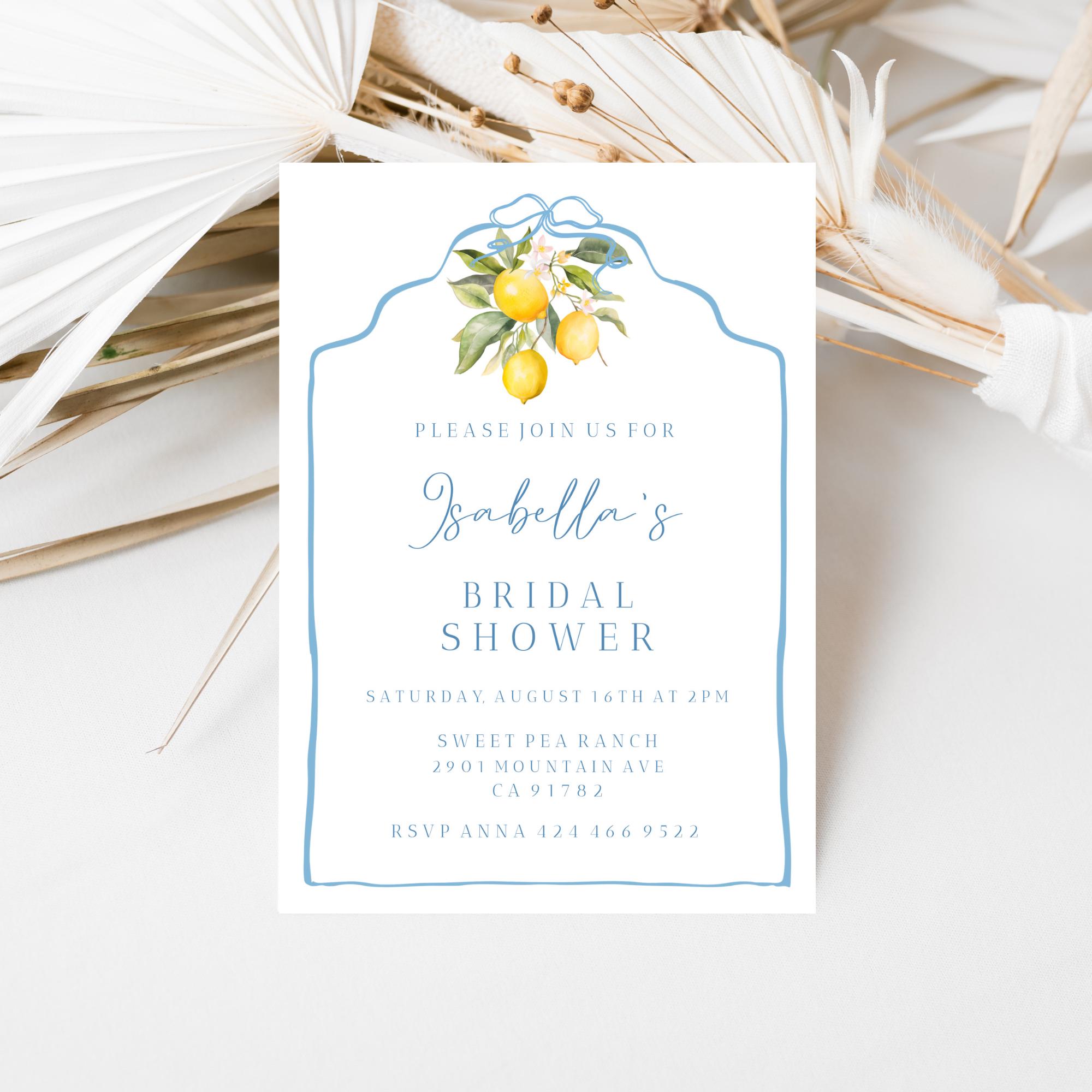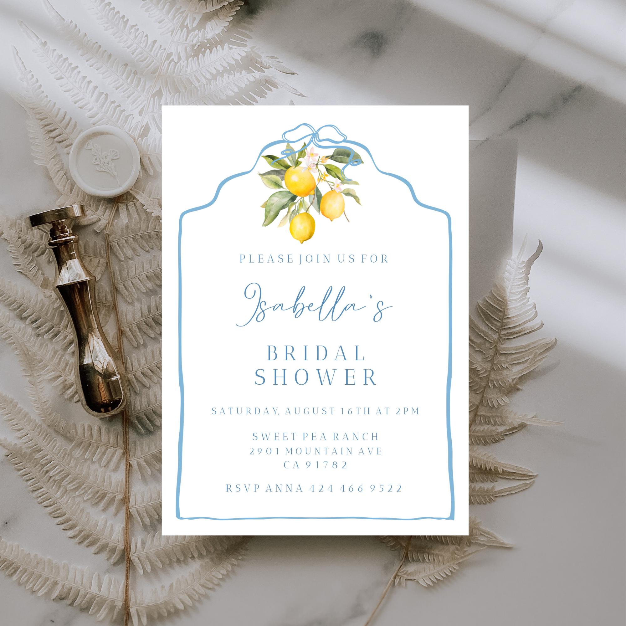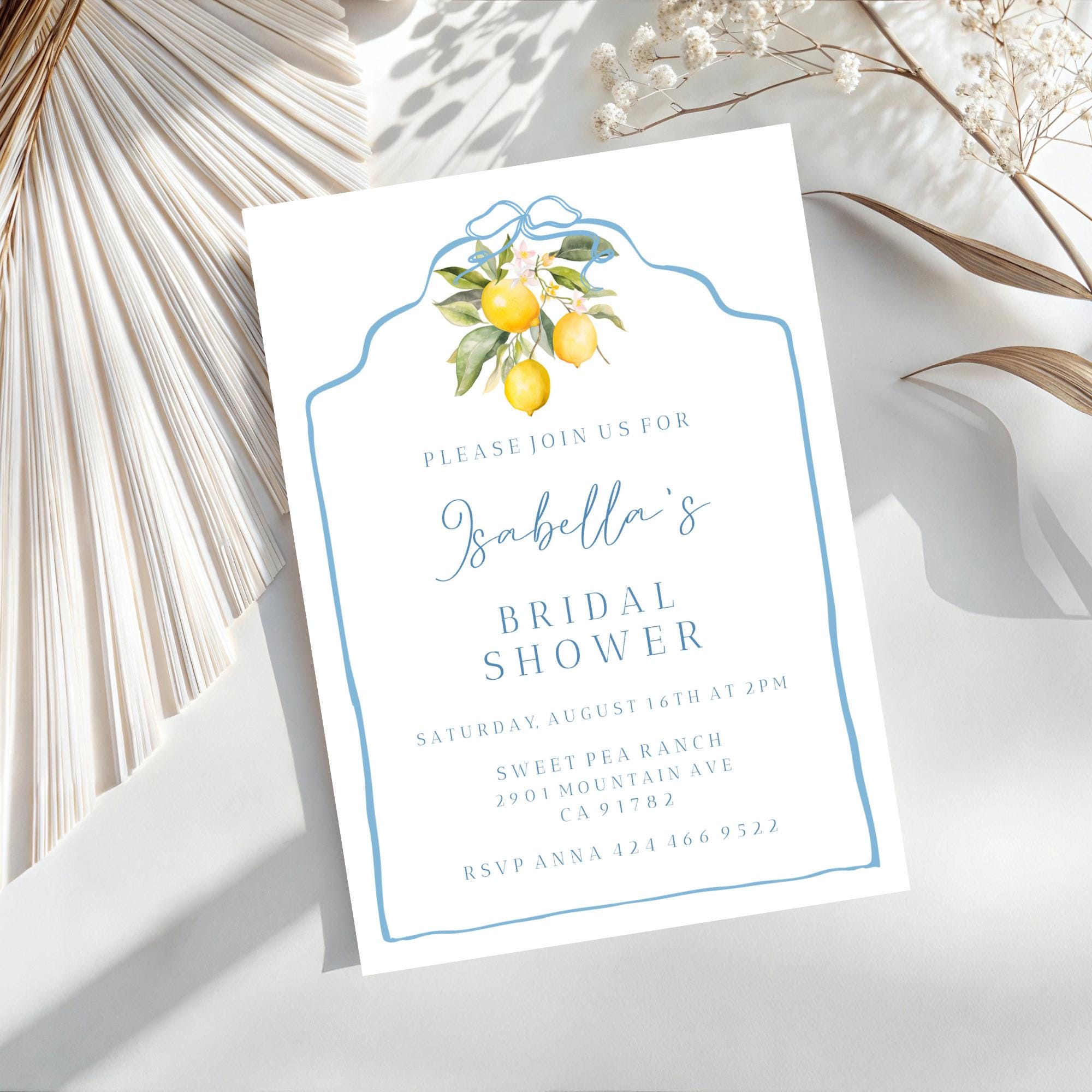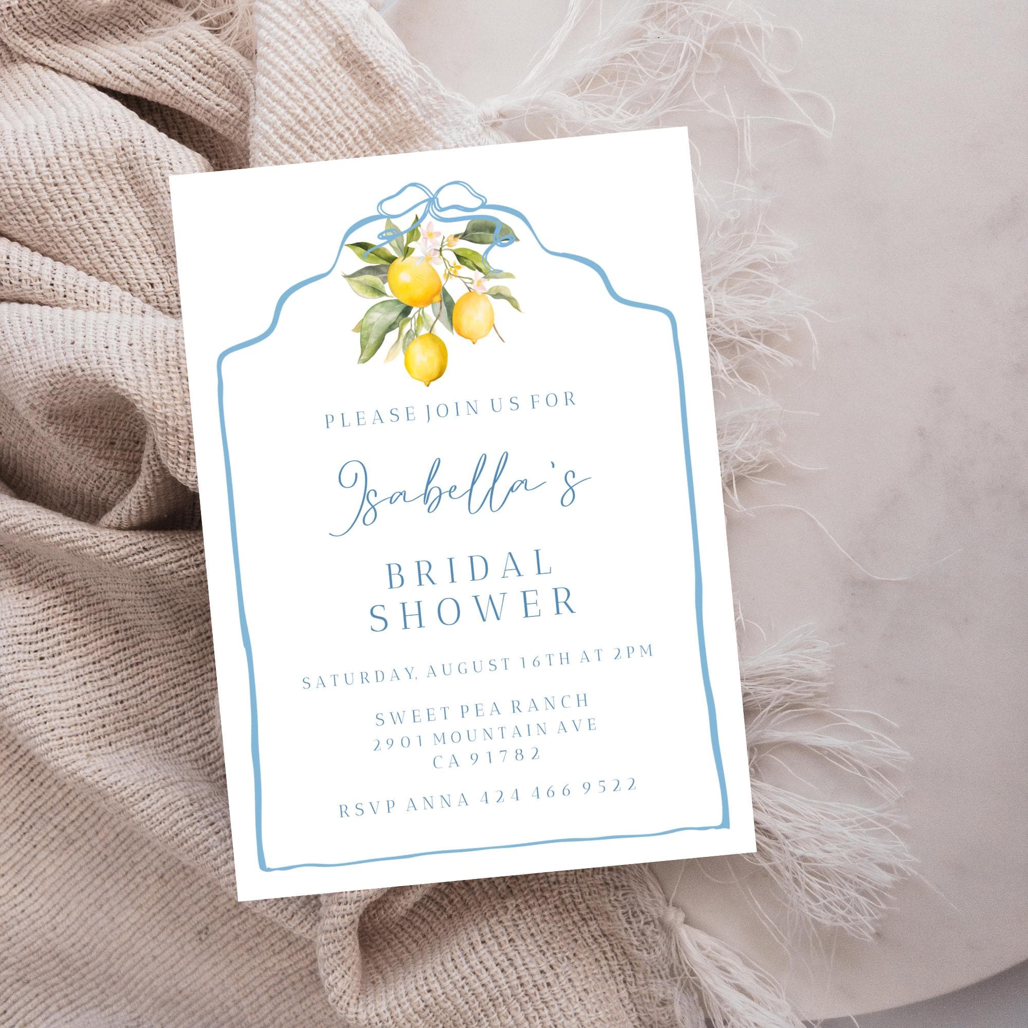 Lemons Bridal Shower Invitation Template. An Instant download digital file for you to edit in your web browser with Templett straight after your purchase. Once personalized you are ready to print.