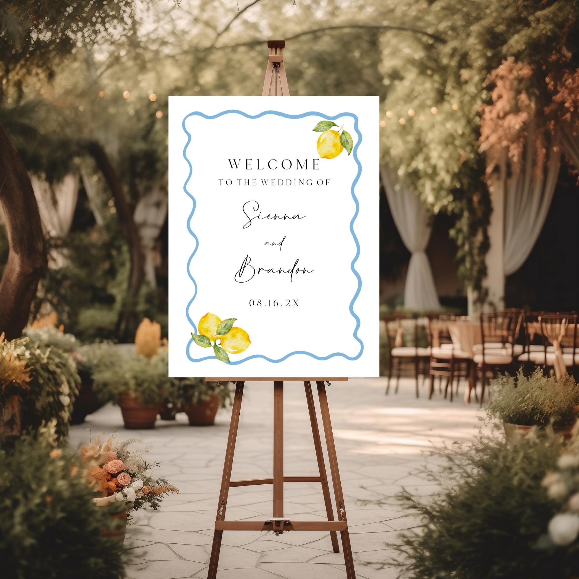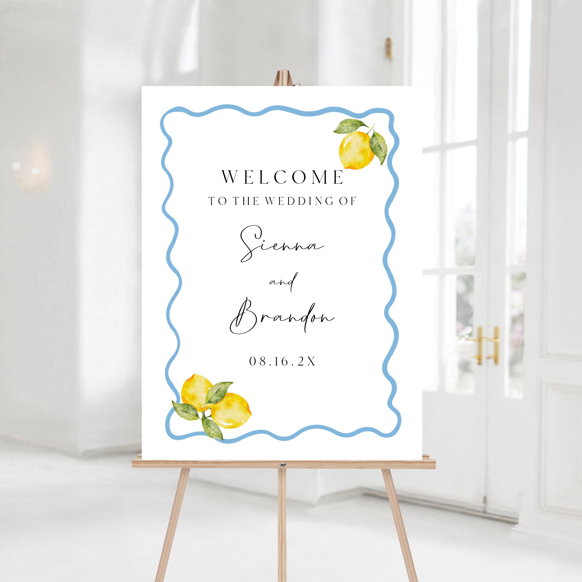 Modern Lemons Wedding Welcome Sign Template. An Instant download digital file for you to edit in your web browser with Templett straight after your purchase. Once personalized you are ready to print.