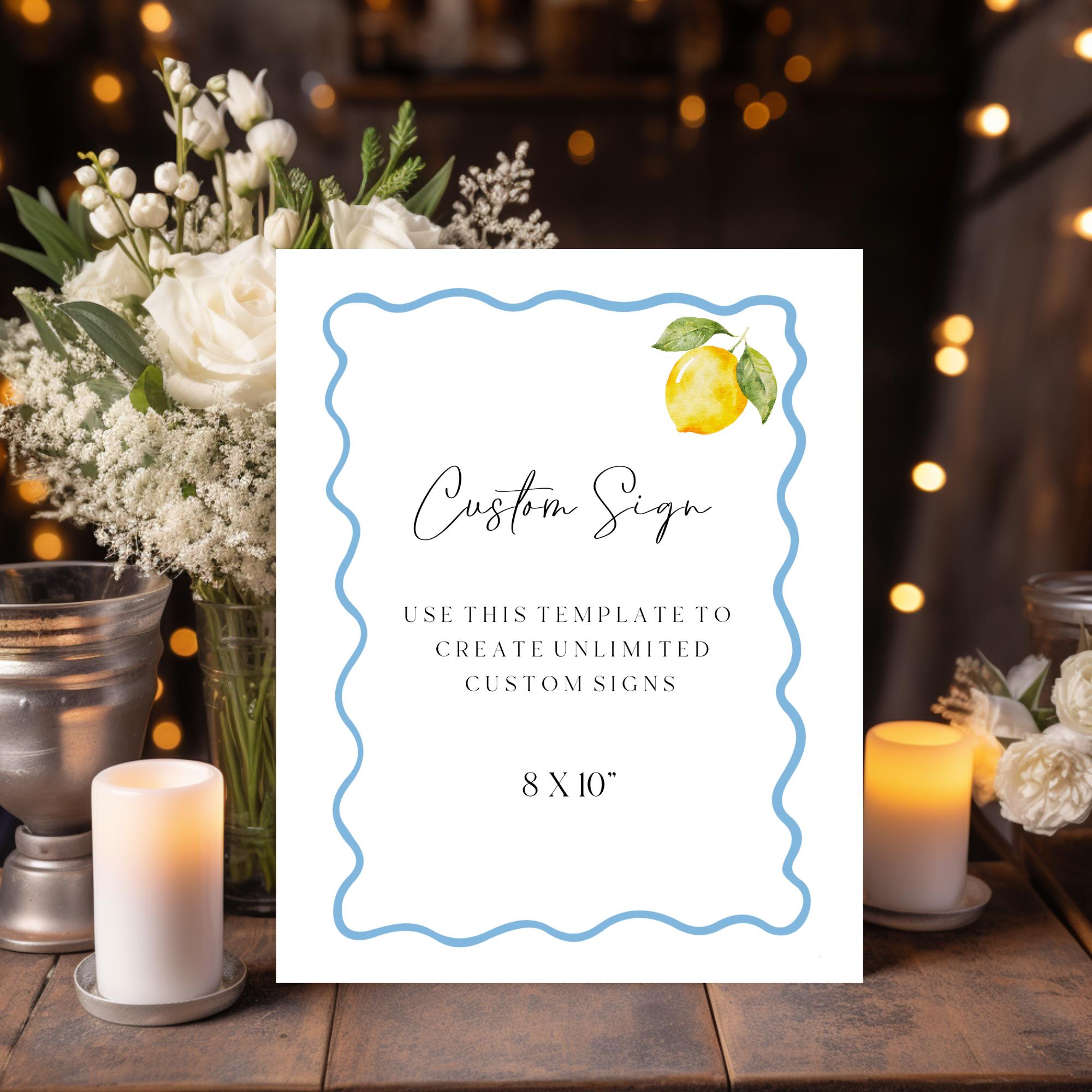 Modern Lemons Custom Sign Template. An Instant download digital file for you to edit in your web browser with Templett straight after your purchase. Once personalized you are ready to print.