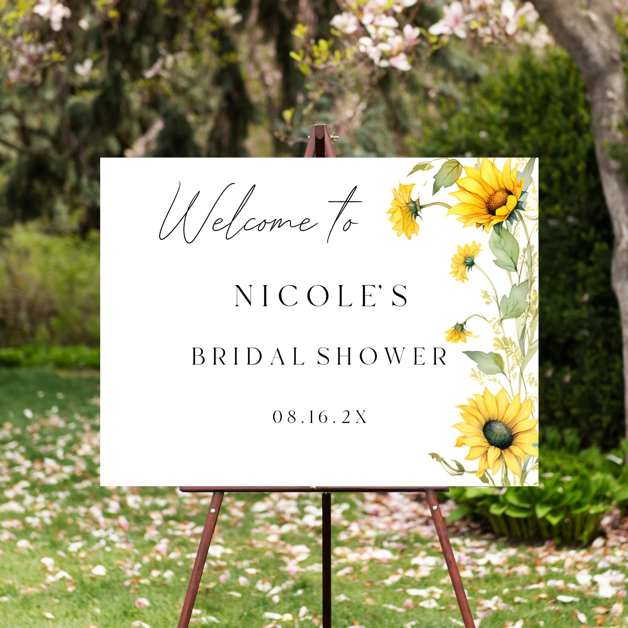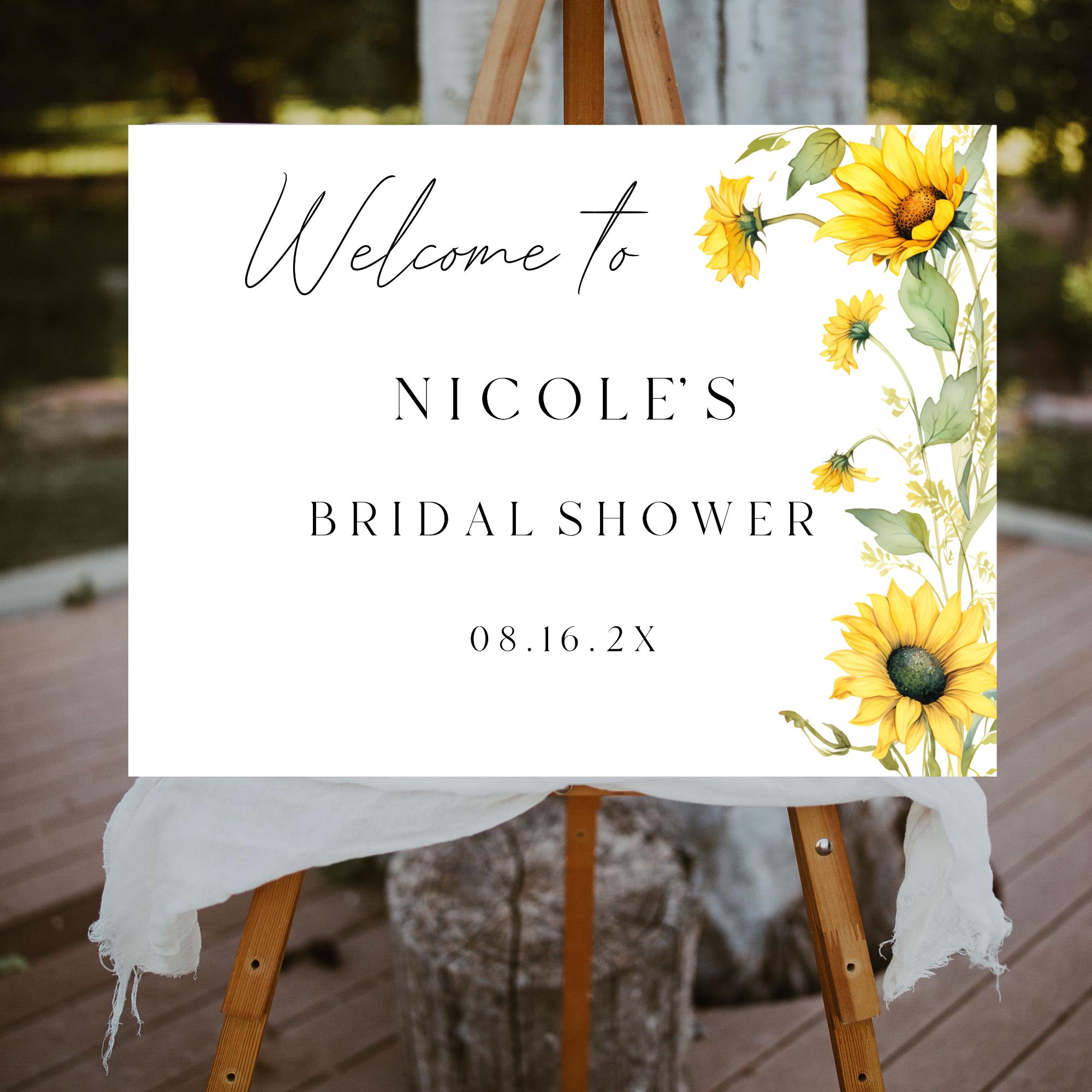 Sunflower Bridal Shower Welcome Sign Template. An Instant download digital file for you to edit in your web browser with Templett straight after your purchase. Once personalized you are ready to print.