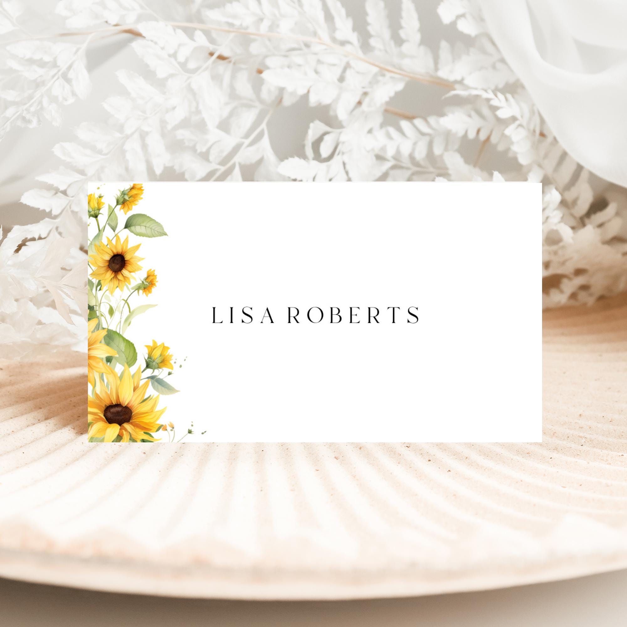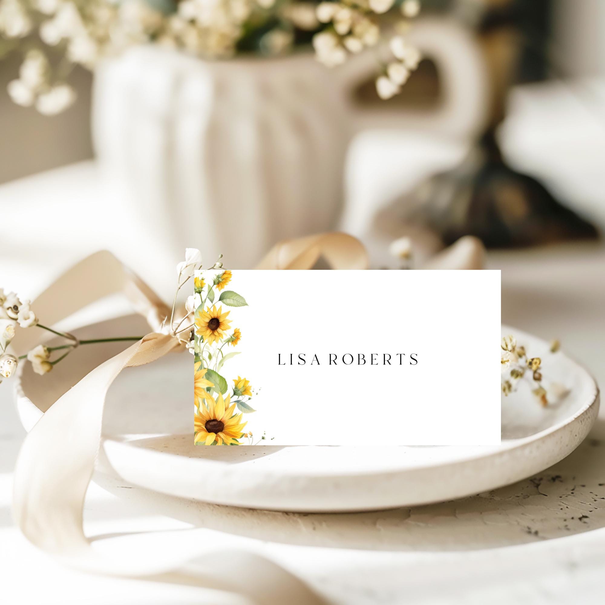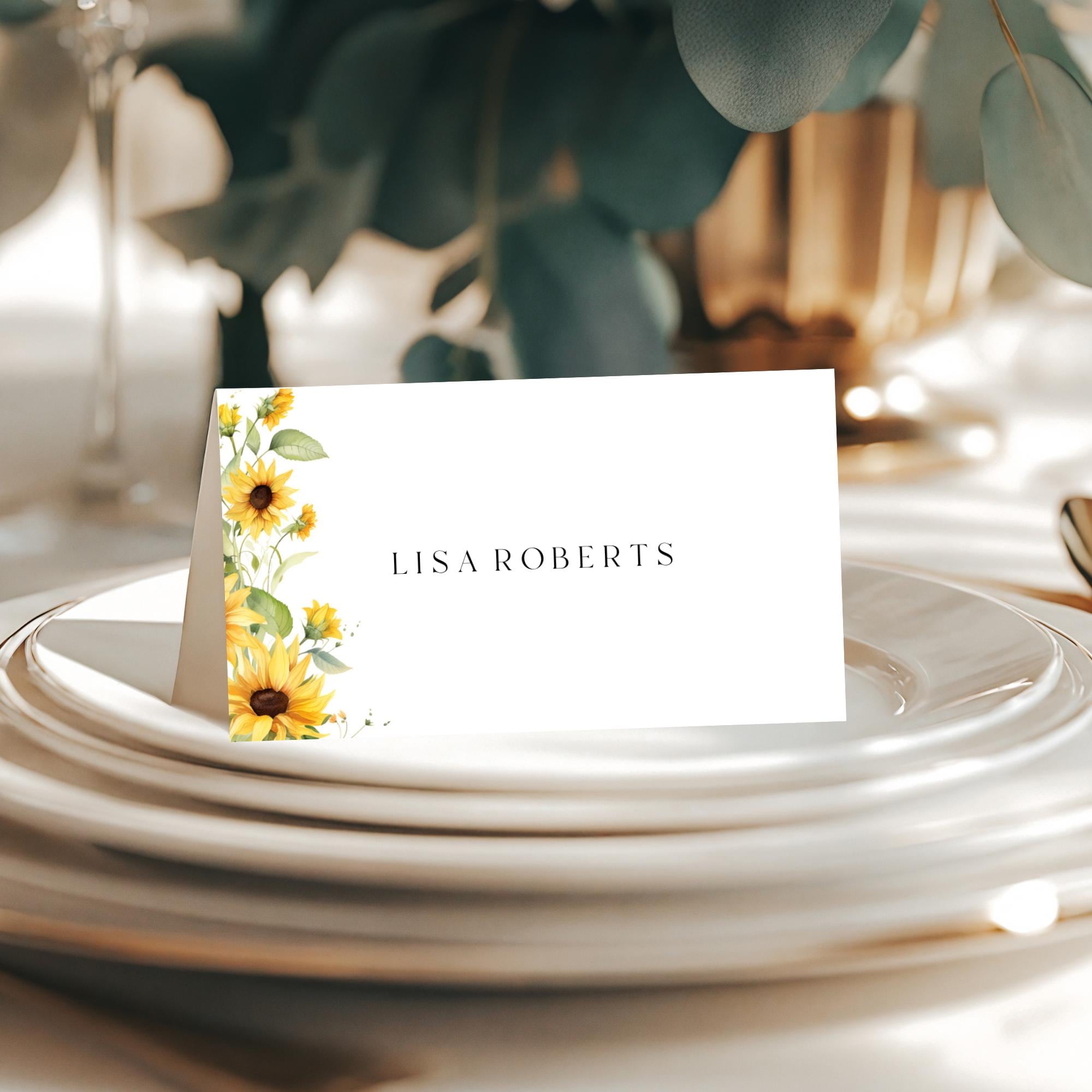Sunflower Place Card Template. An Instant download digital file for you to edit in your web browser with Templett straight after your purchase. Once personalized you are ready to print.