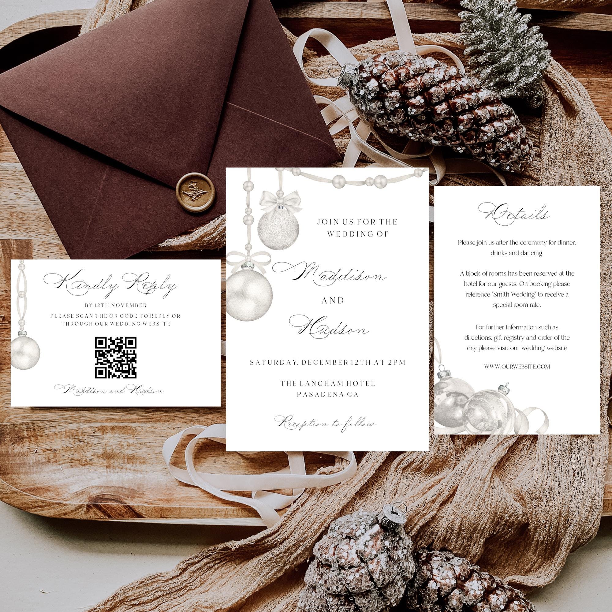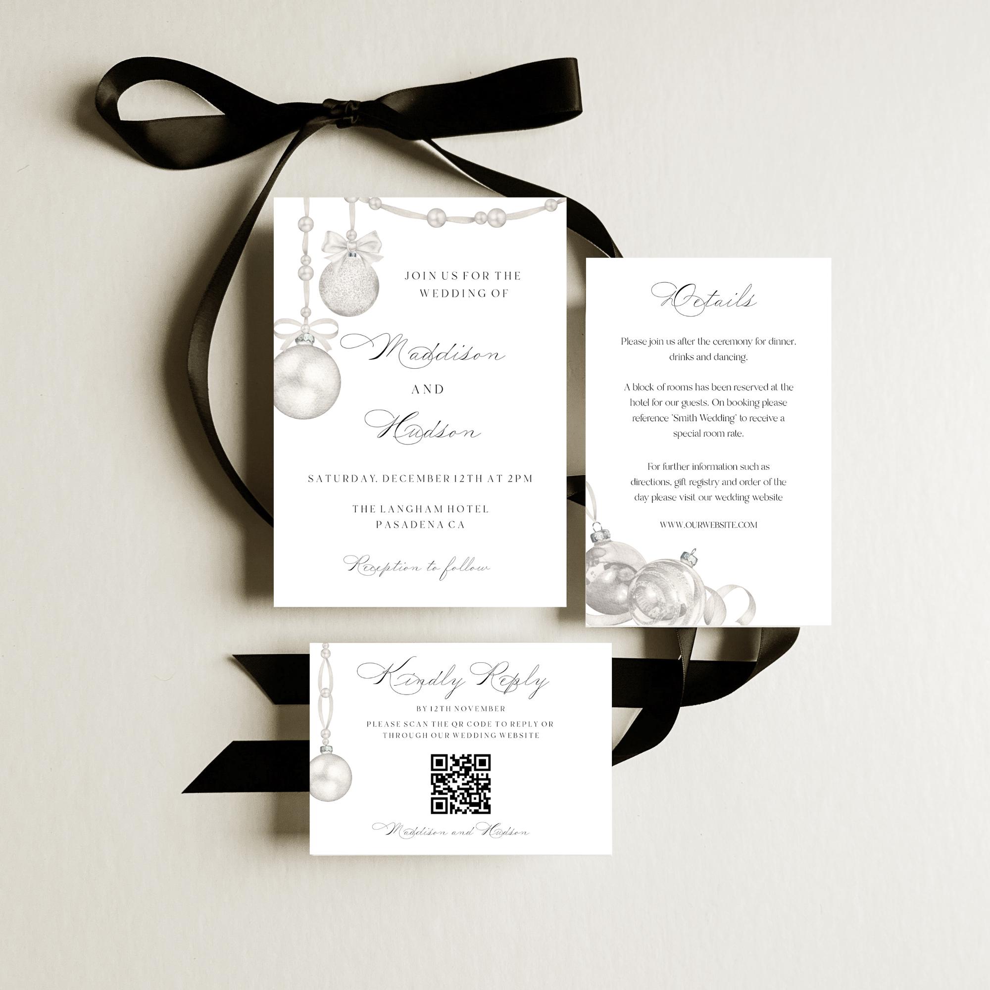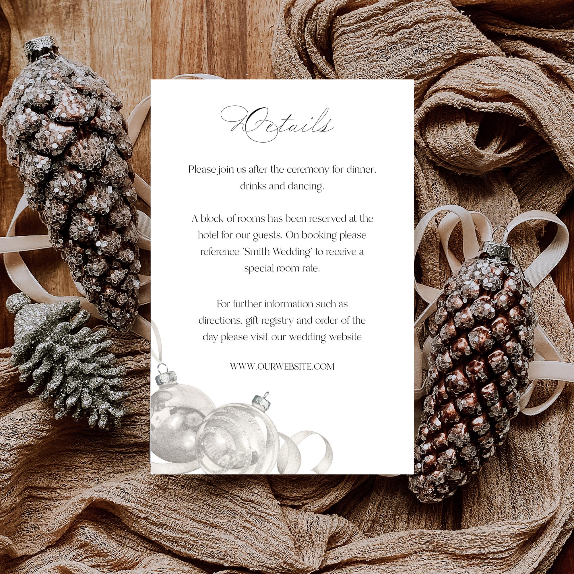 Neutral Christmas Wedding Invitation Template. An Instant download digital file for you to edit in your web browser with Templett straight after your purchase. Once personalized you are ready to print.