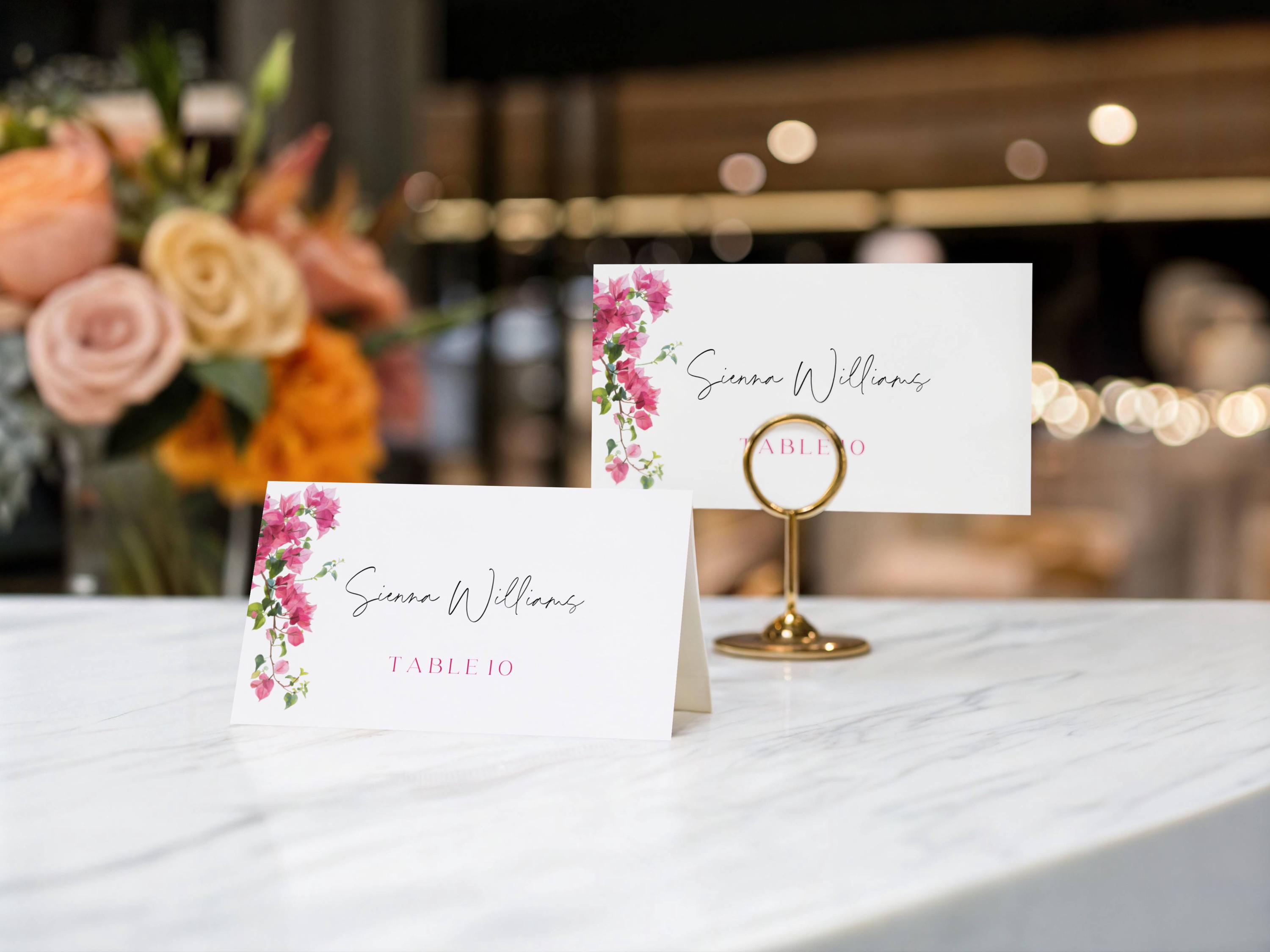 Bougainvillea Place Card Template. An Instant download digital file for you to edit in your web browser with Templett straight after your purchase. Once personalized you are ready to print.