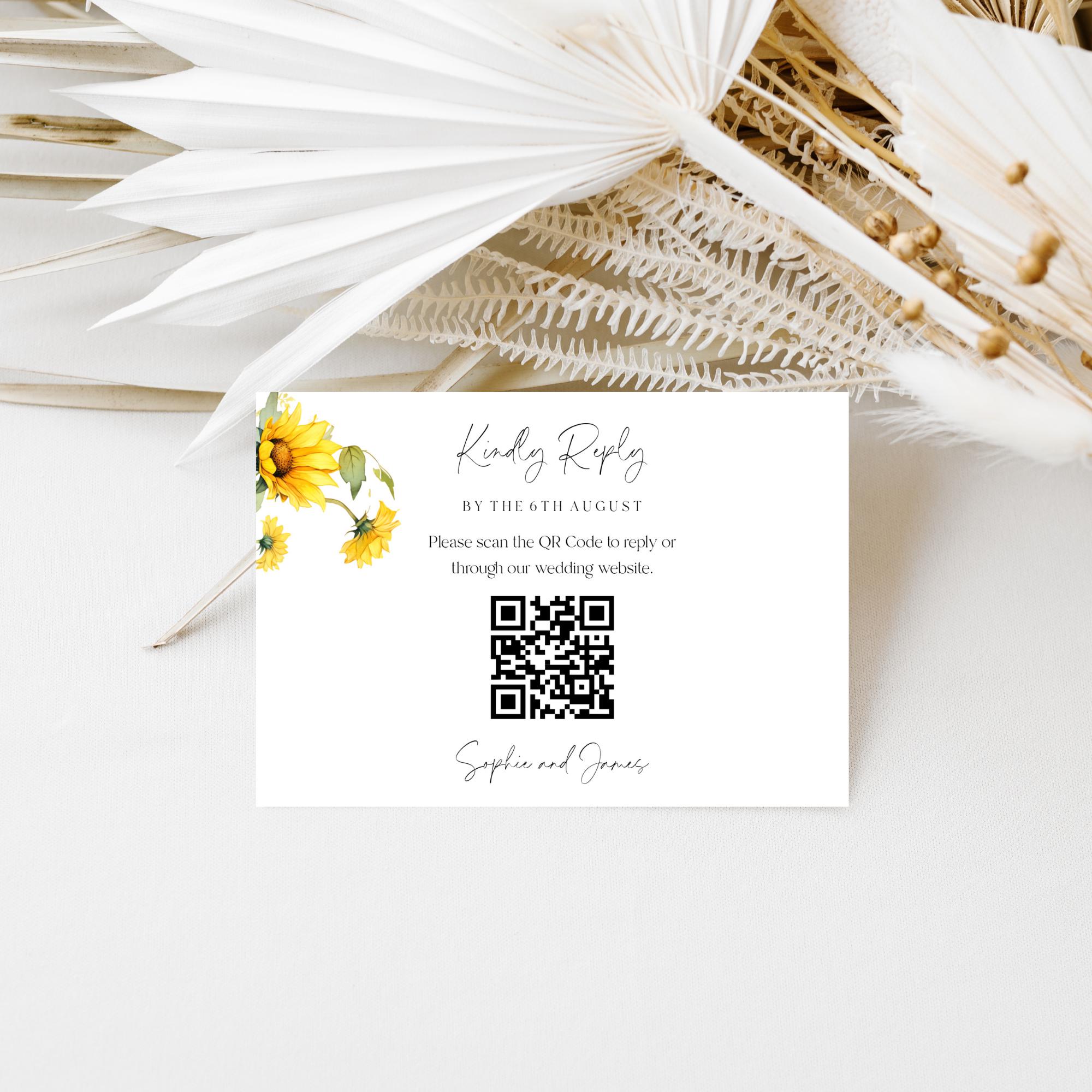 You will need to replace the QR Code by creating your own and uploading the new one that links to your wedding website. There are many websites that you can create a free custom QR code. If you don't want to use a QR Code you can easily delete this from the invitation.