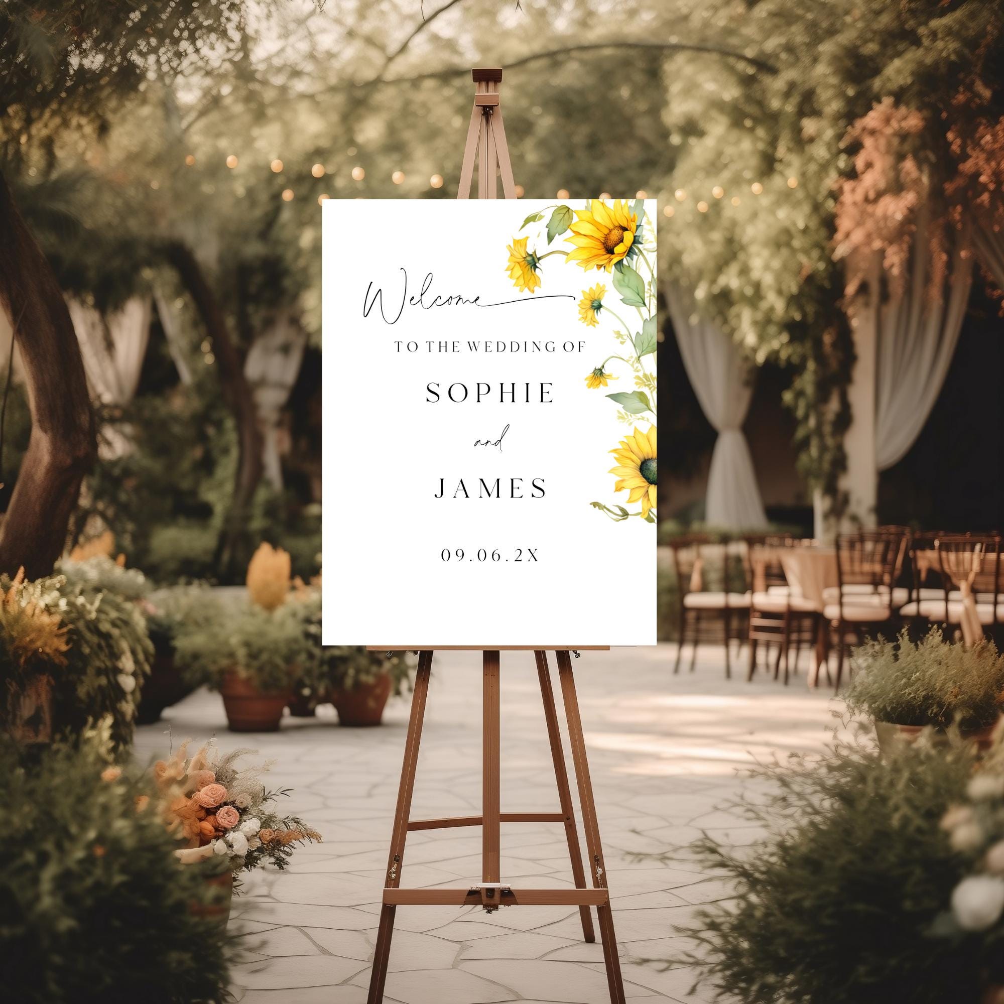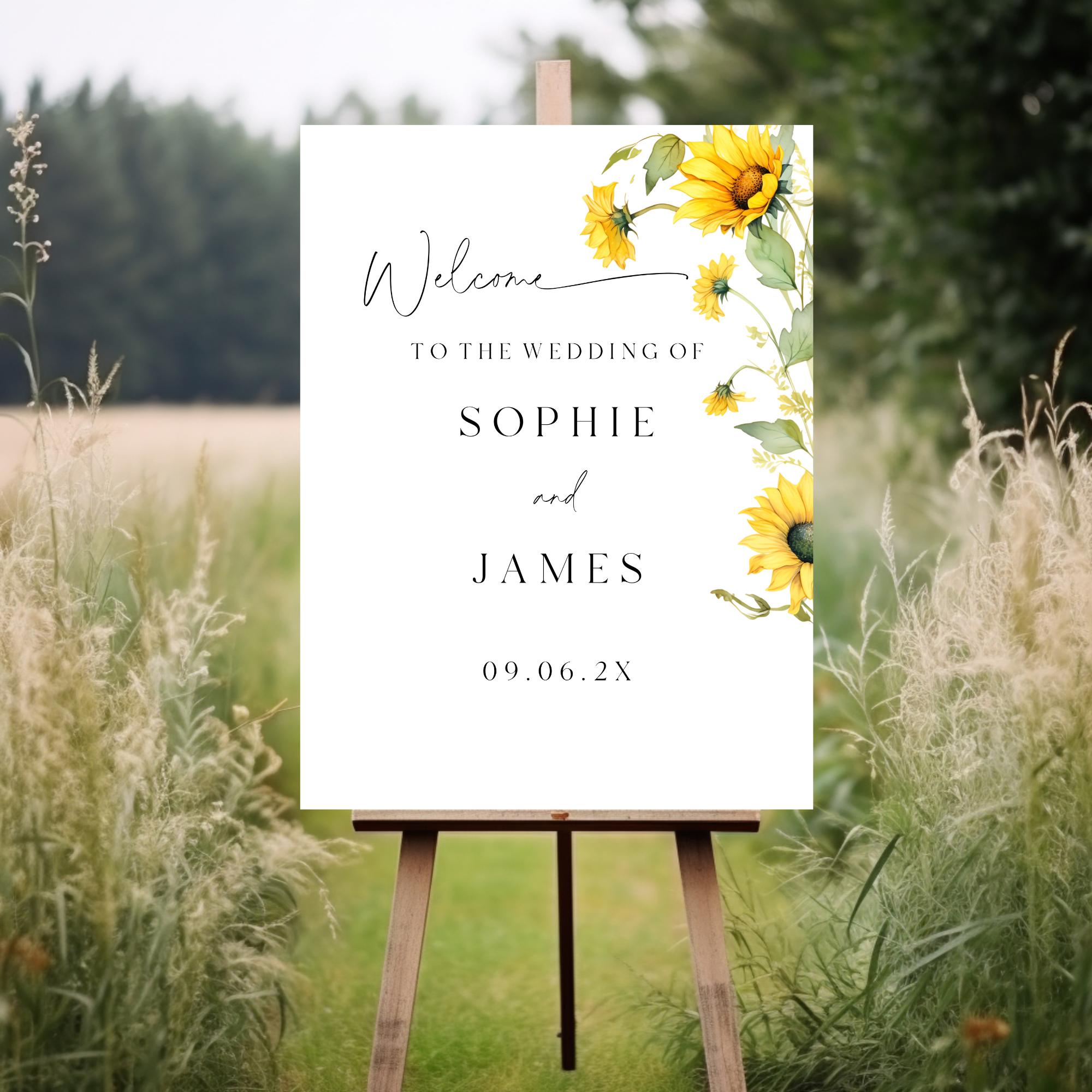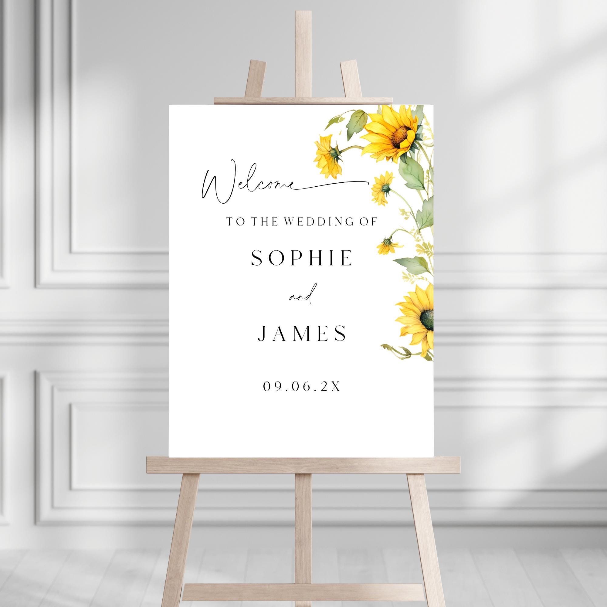 Sunflower Wedding Welcome Sign Template. An Instant download digital file for you to edit in your web browser with Templett straight after your purchase. Once personalized you are ready to print.