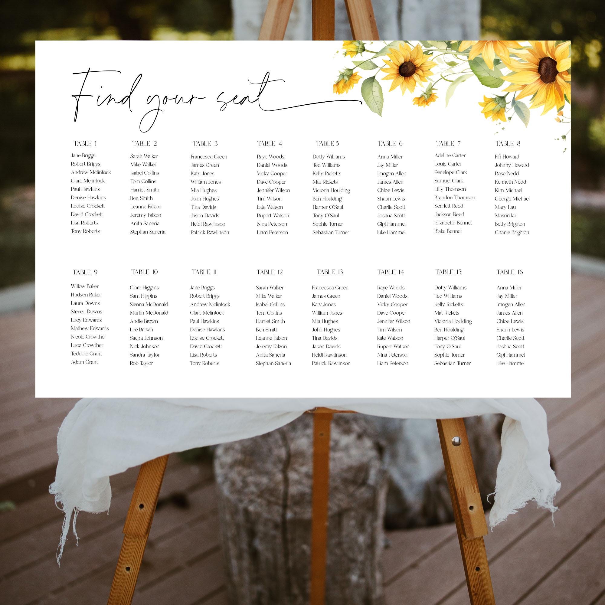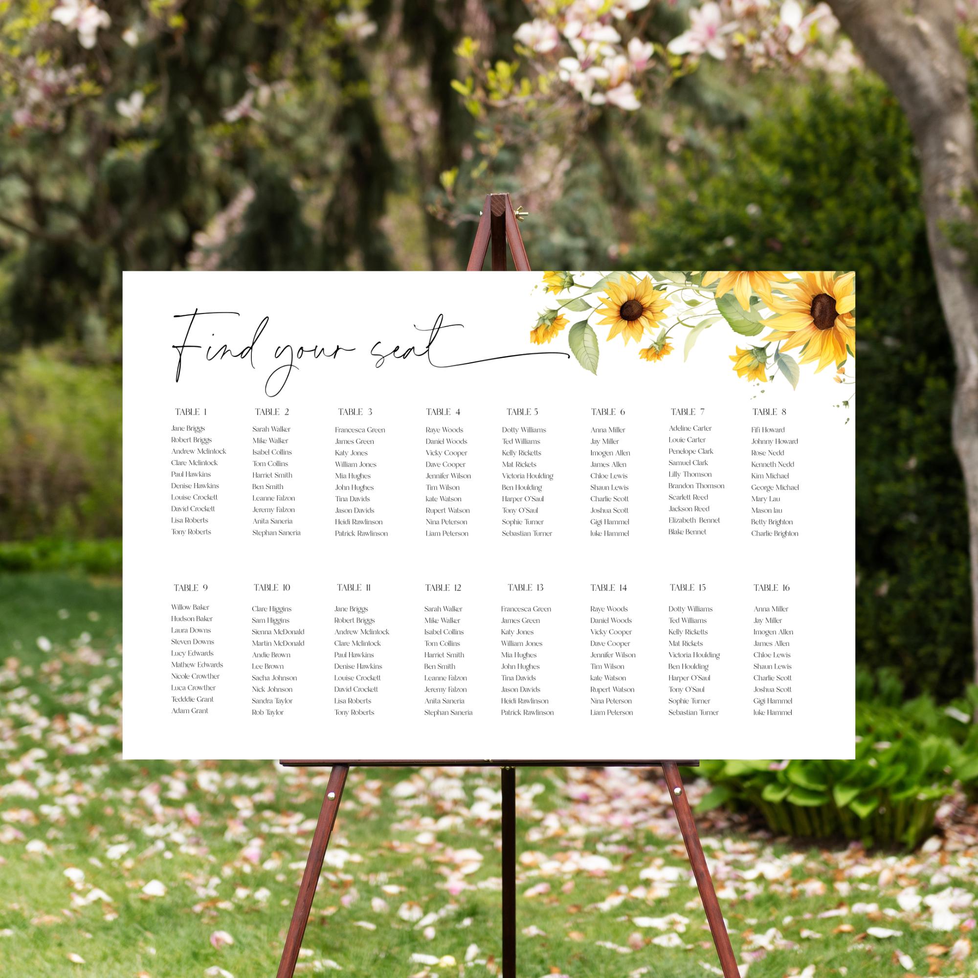 Sunflower Wedding Seating Plan Sign Template. An Instant download digital file for you to edit in your web browser with Templett straight after your purchase. Once personalized you are ready to print.